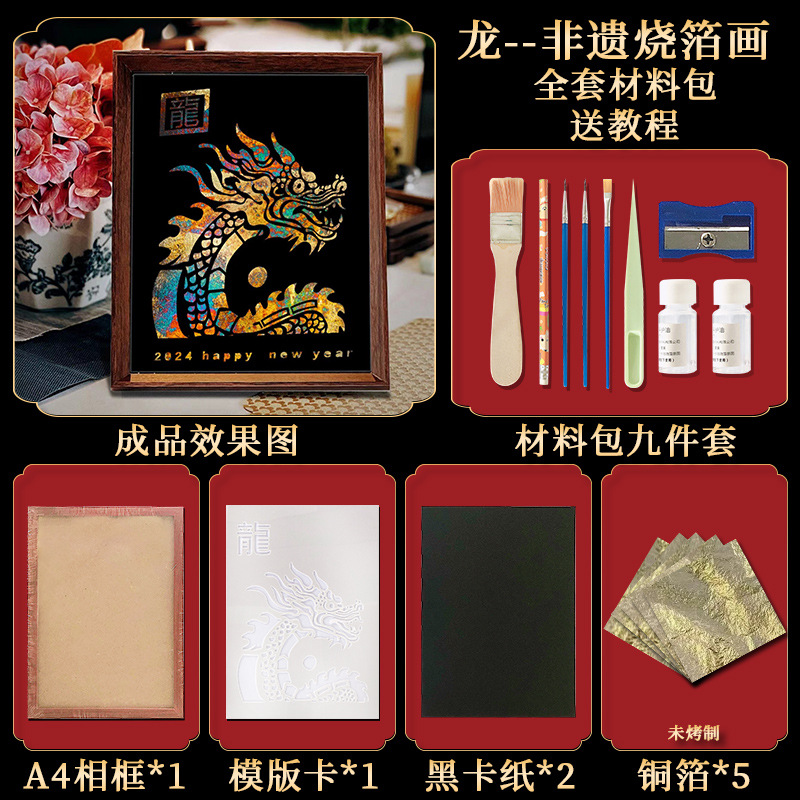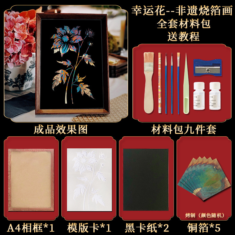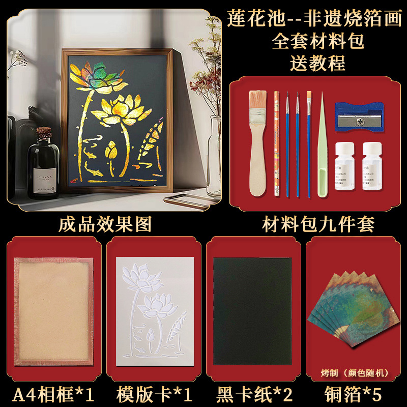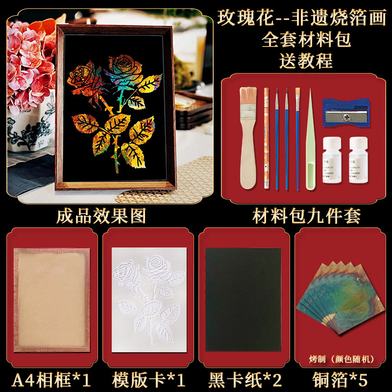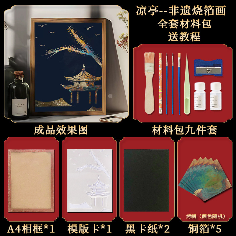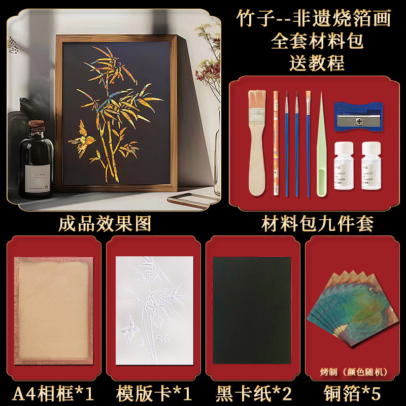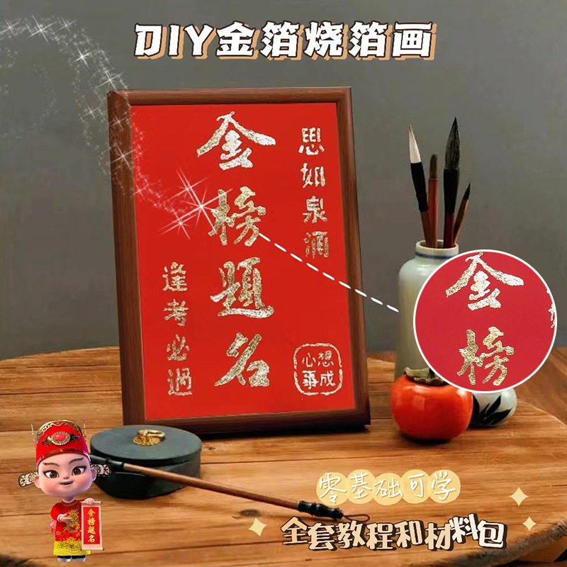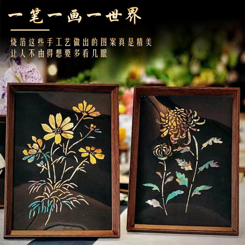 国粹DIY手工非遗烧箔画 团建活动暖场拓印绘画金箔铜箔烤箔装饰画