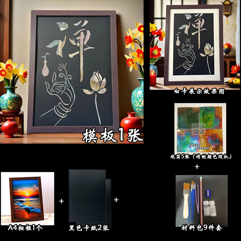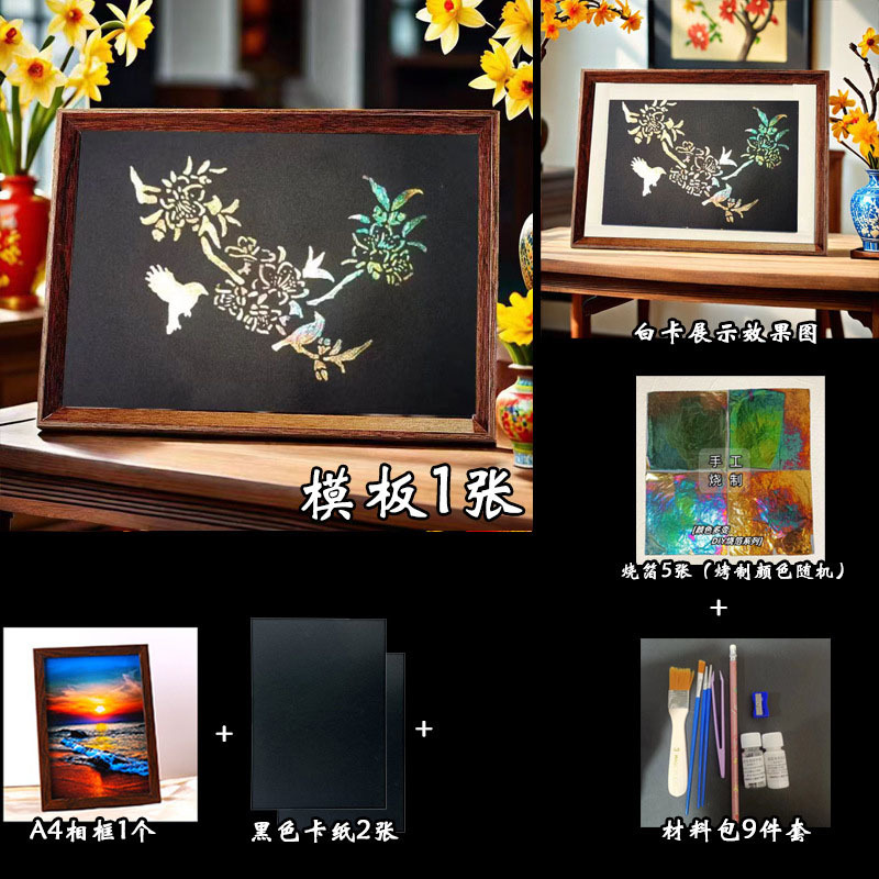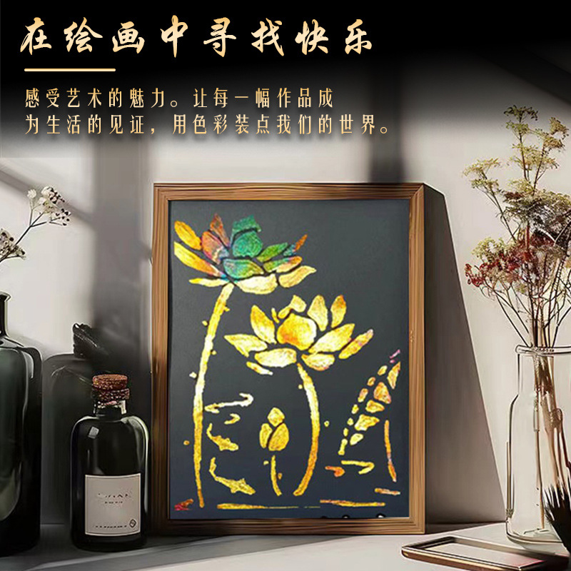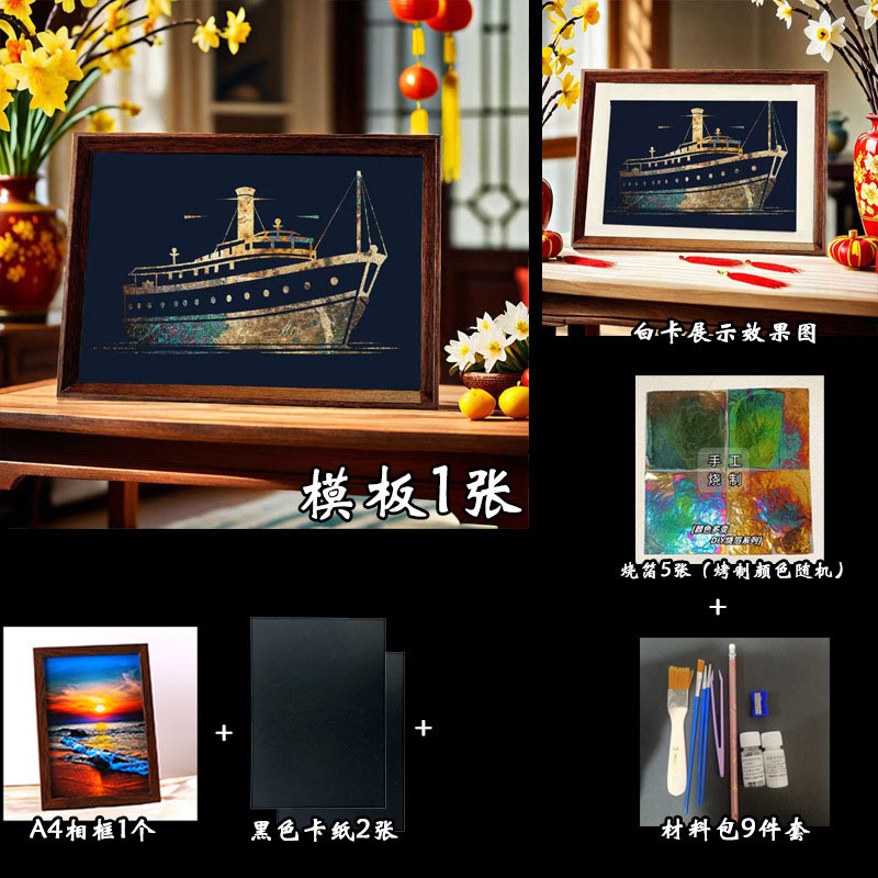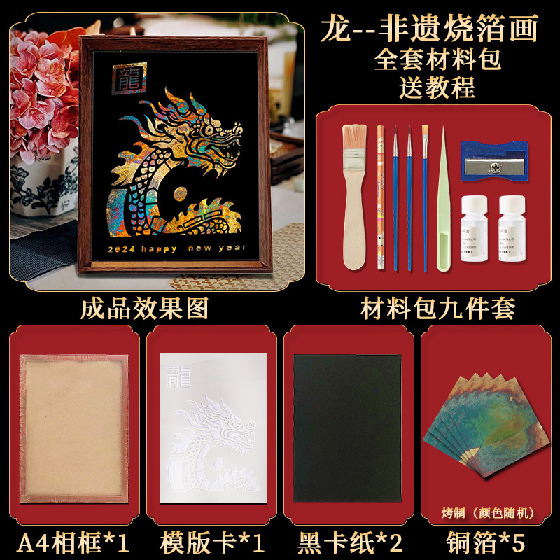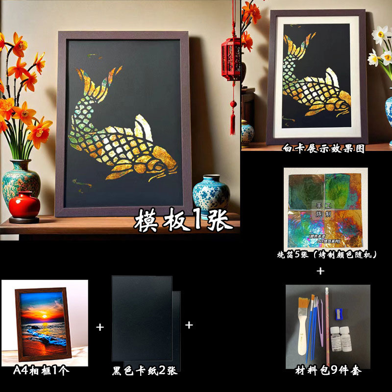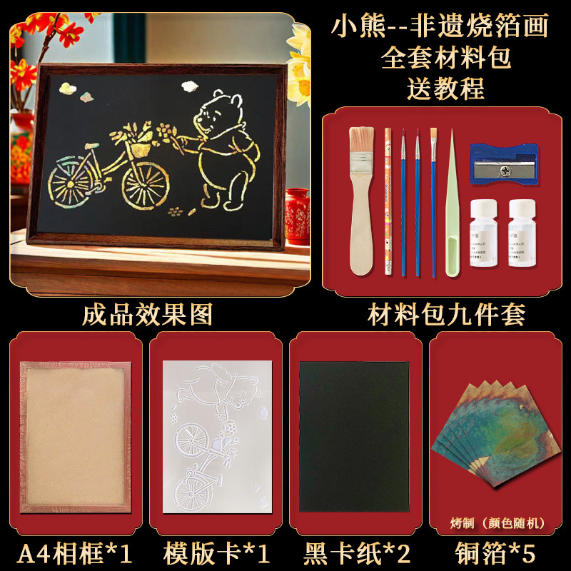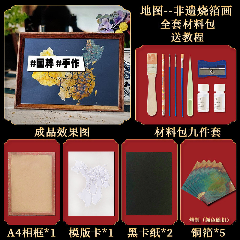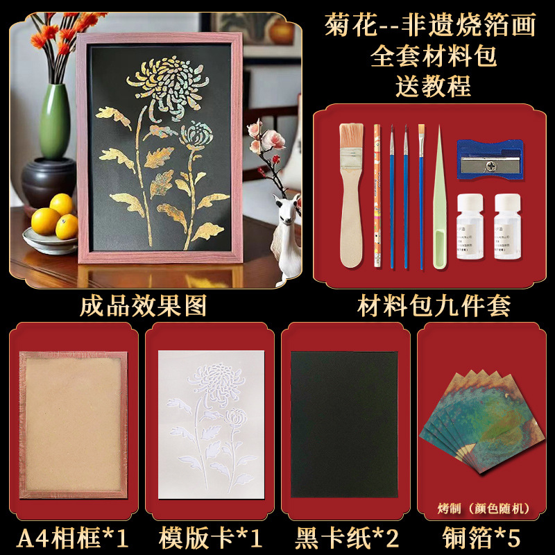 国粹DIY手工非遗烧箔画 团建活动暖场拓印绘画金箔铜箔烤箔装饰画