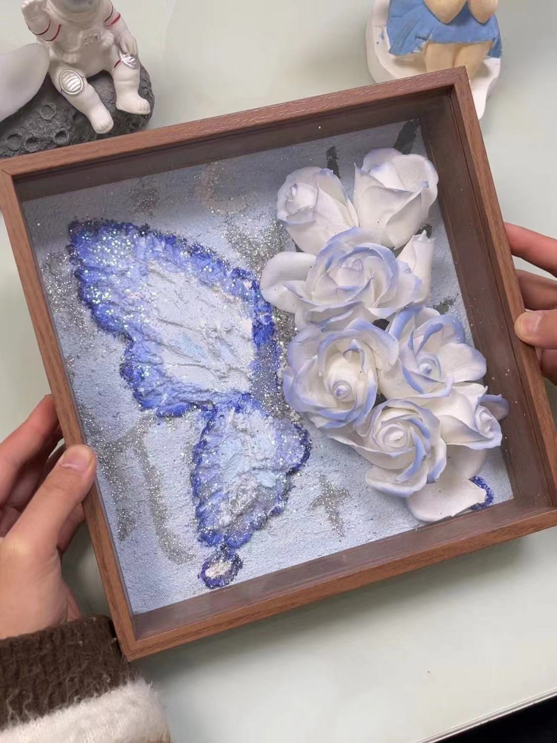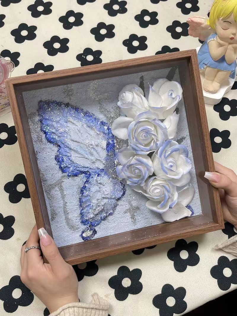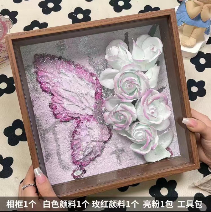 蝴蝶玫瑰相框DIY蝴蝶玫瑰花肌理画相框520创意礼品玫瑰蝴蝶相框