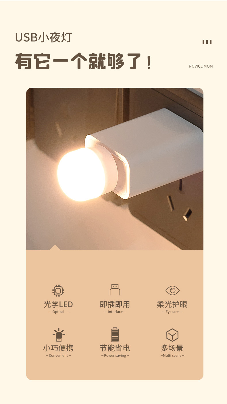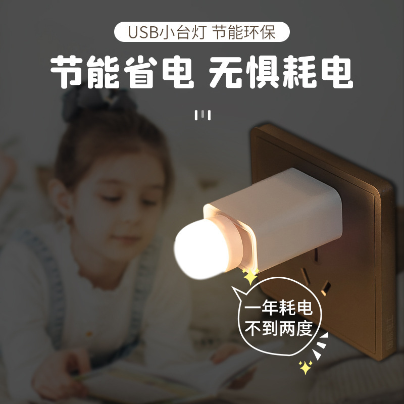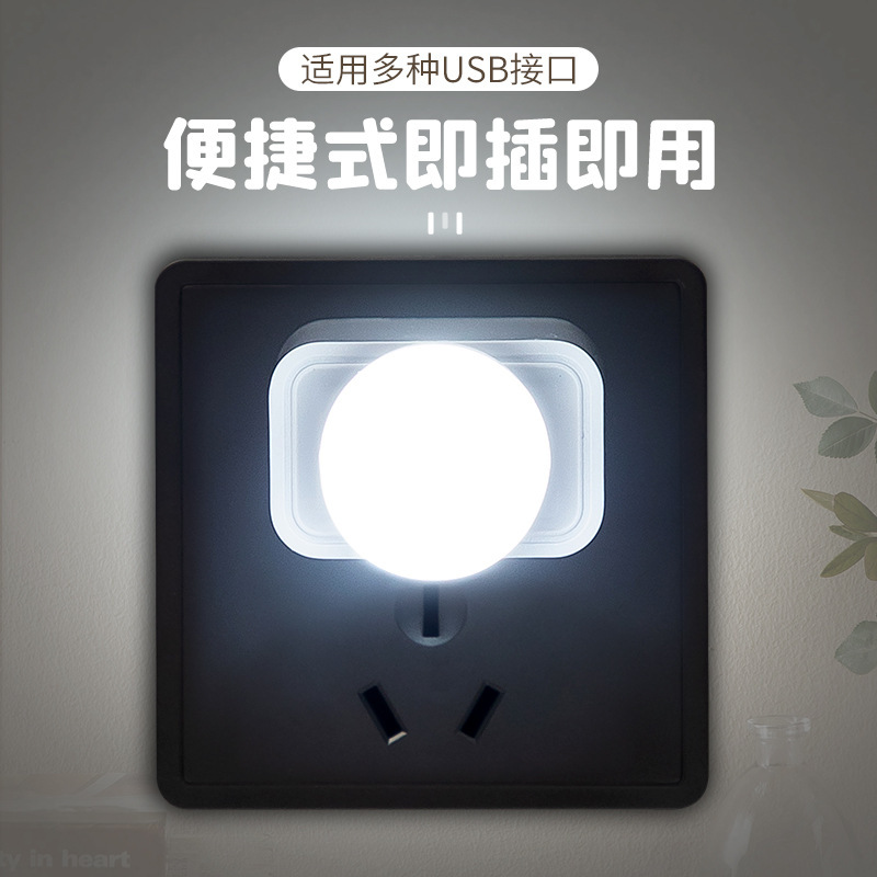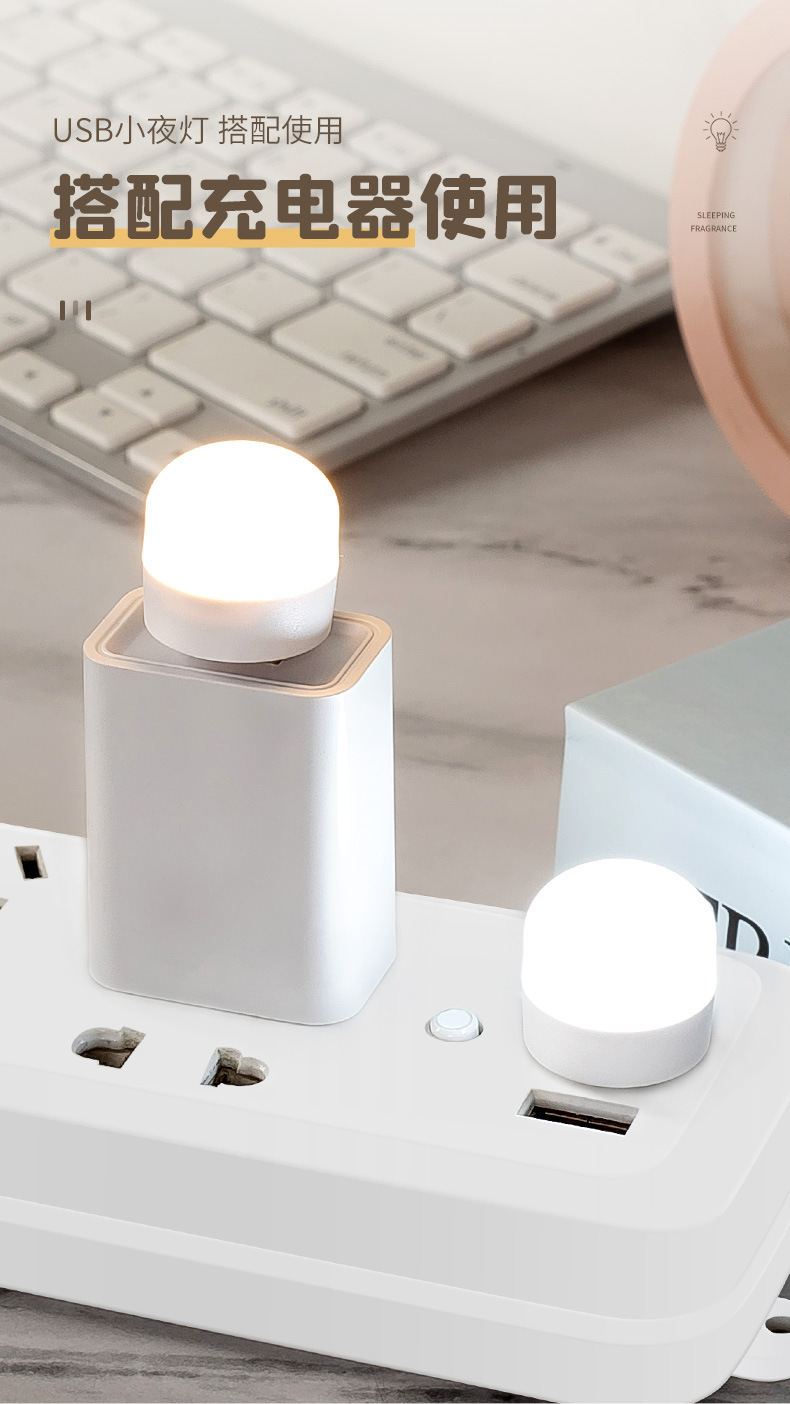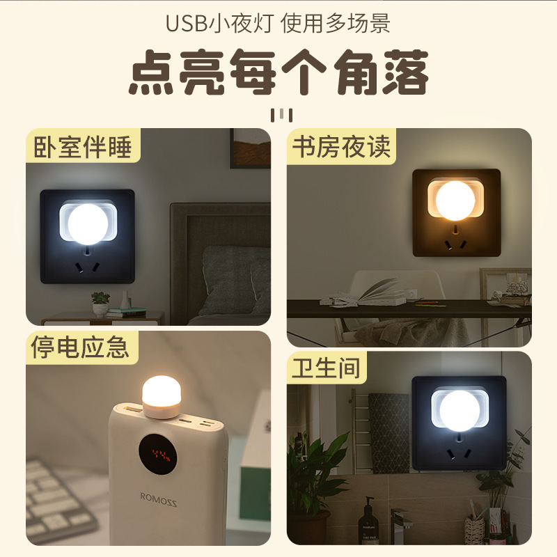 USB节能小夜灯卧室床头宿舍氛围灯充电宝停电应急灯护眼LED小圆灯