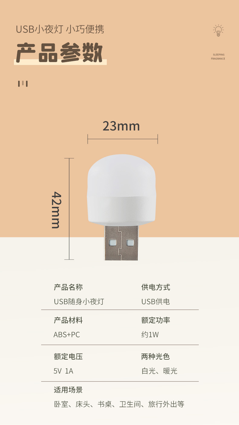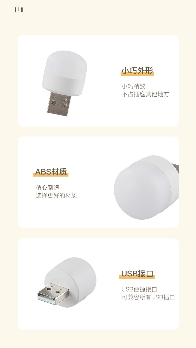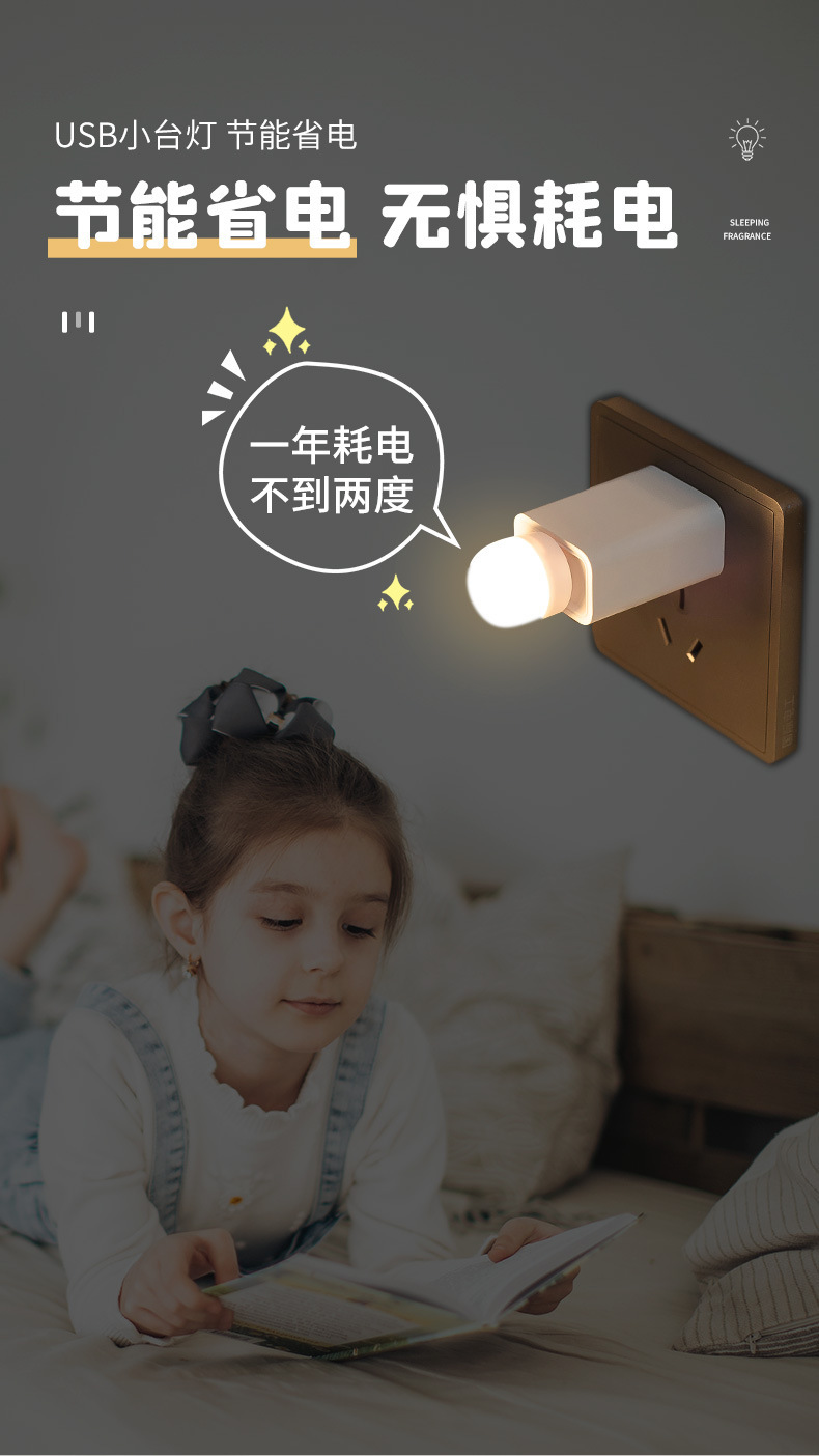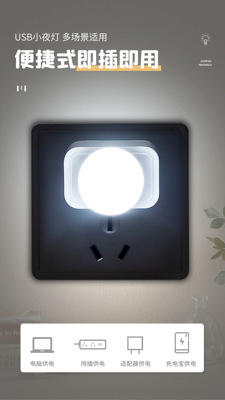 USB节能小夜灯卧室床头宿舍氛围灯充电宝停电应急灯护眼LED小圆灯