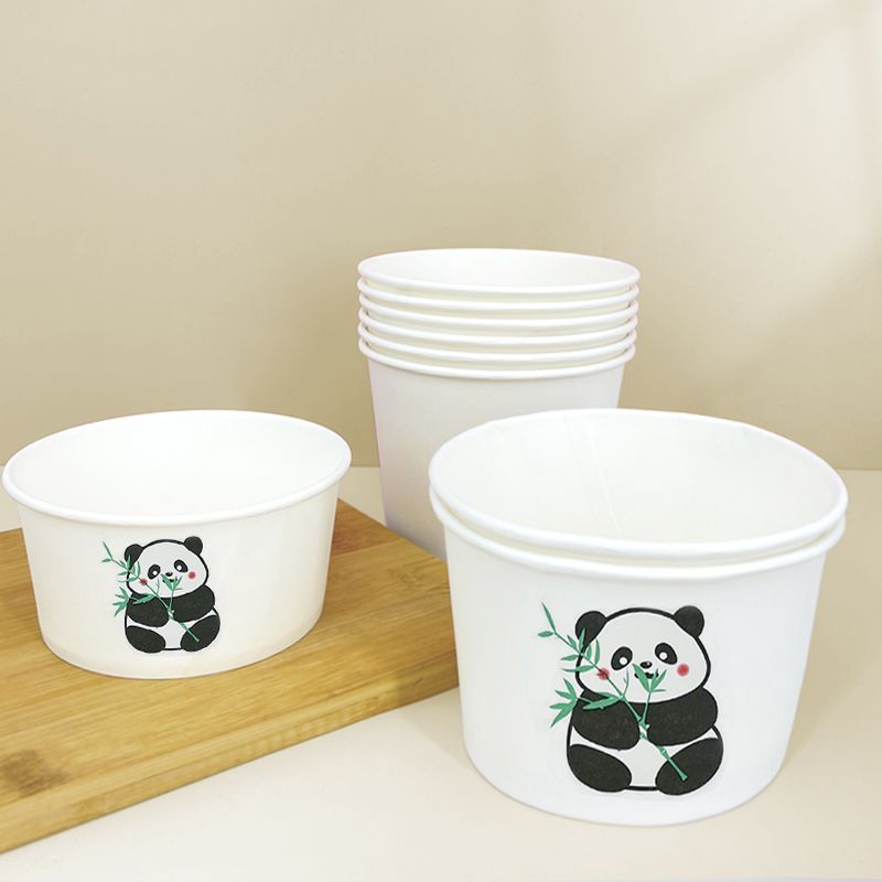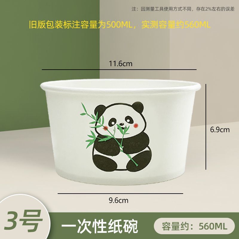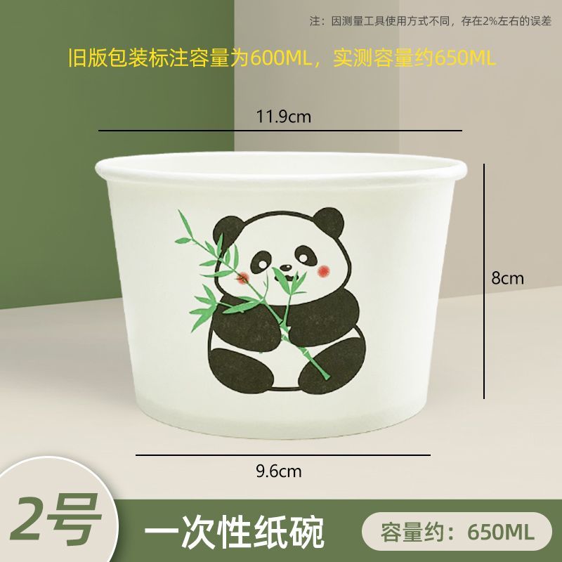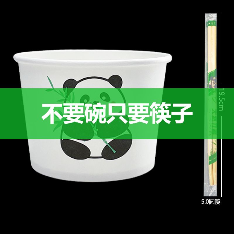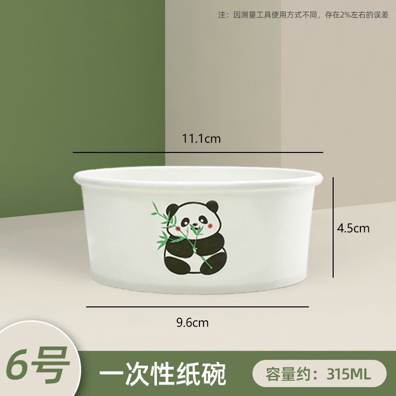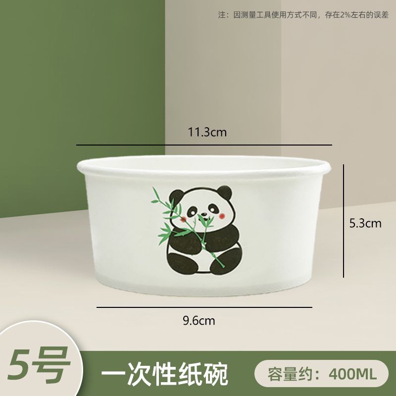 一次性纸碗熊猫印花圆形加厚餐盒炒菜沙拉汤碗外卖快餐打包盒碗筷