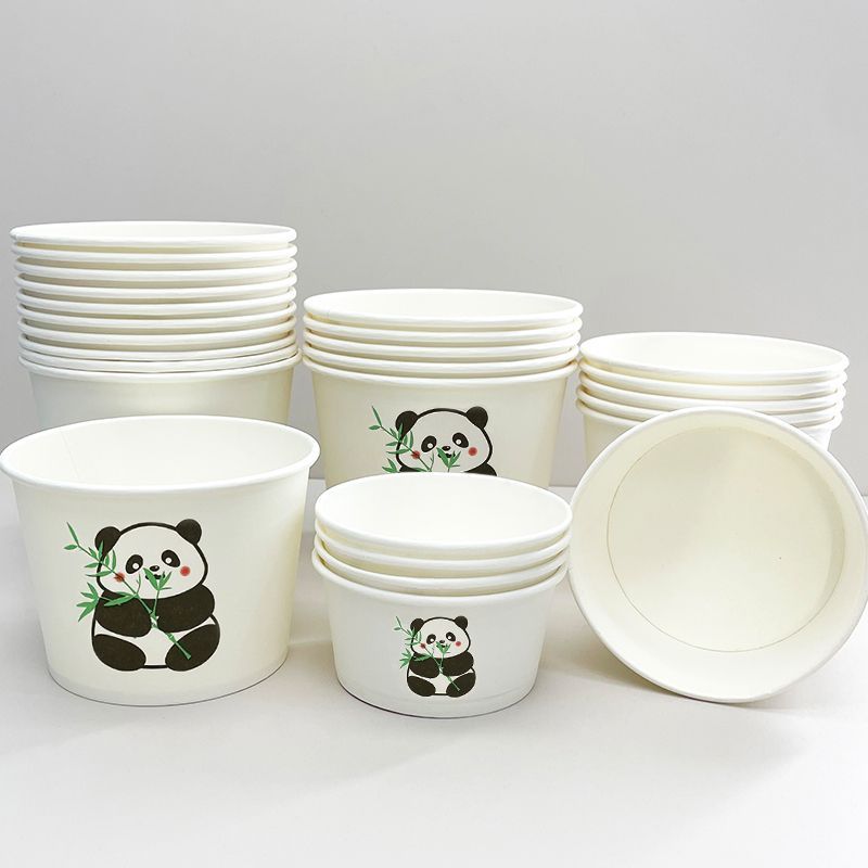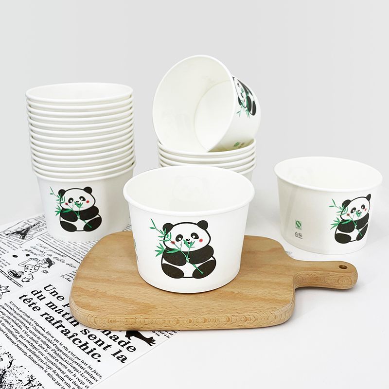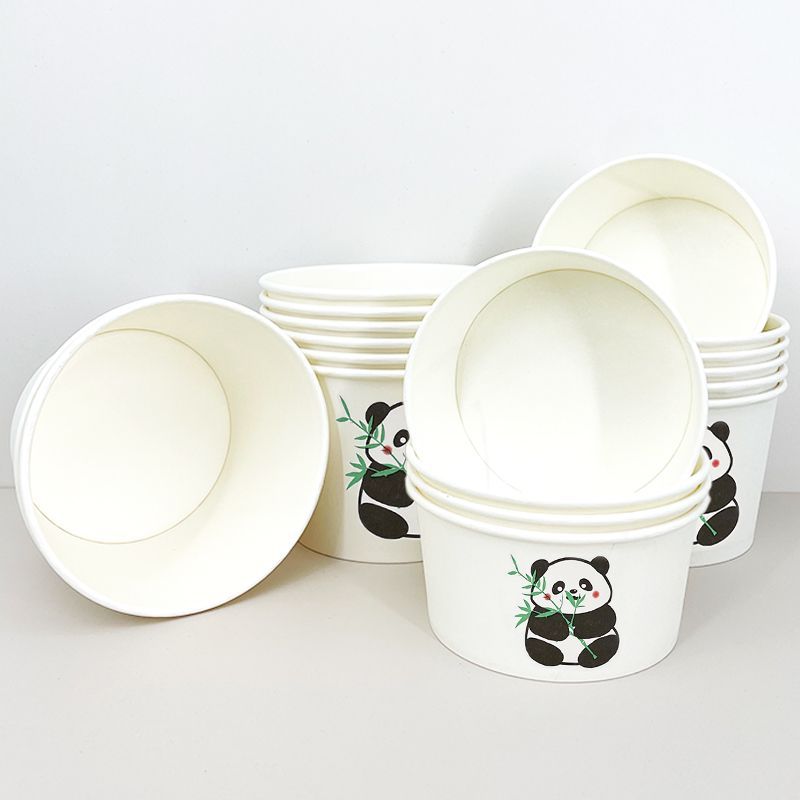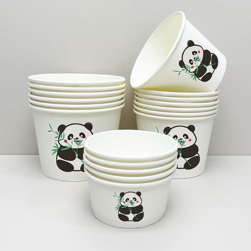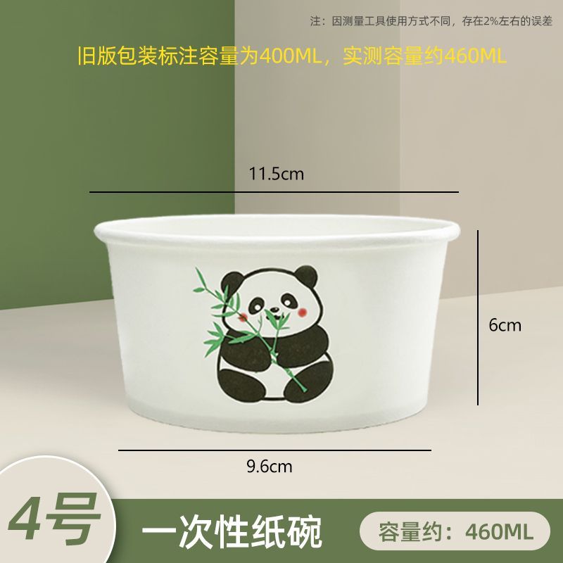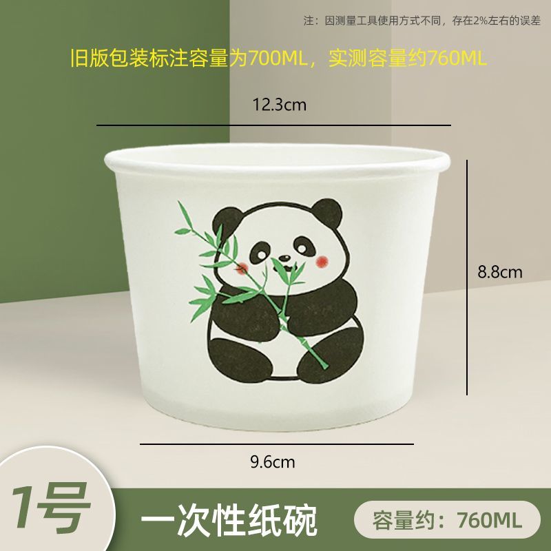 一次性纸碗熊猫印花圆形加厚餐盒炒菜沙拉汤碗外卖快餐打包盒碗筷