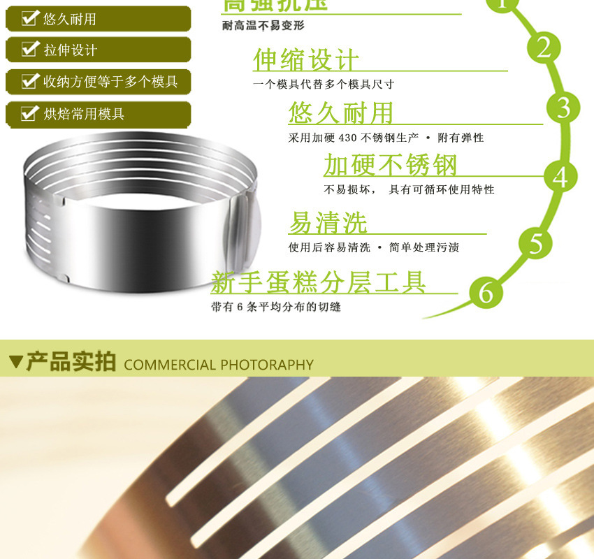 不锈钢慕斯圈 6-8寸伸缩可调节 分层蛋糕切片蛋糕模 厨具烘焙工具