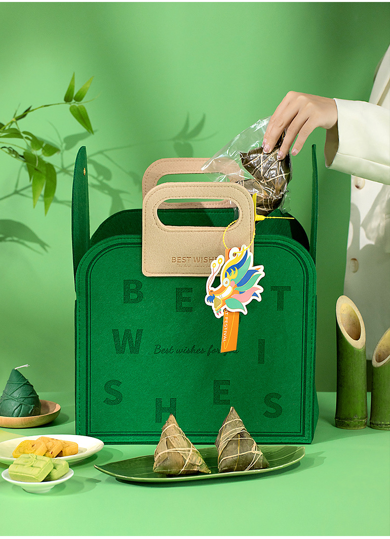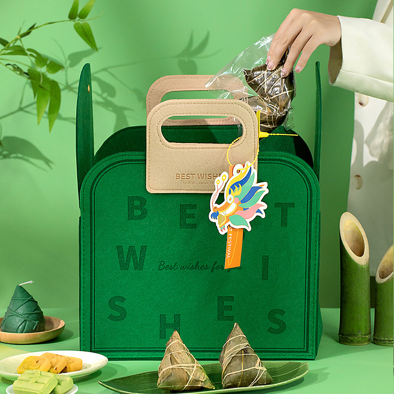 端午节礼品盒 粽子包装盒伴手礼盒毛毡礼品盒新款手提 粽子包装盒