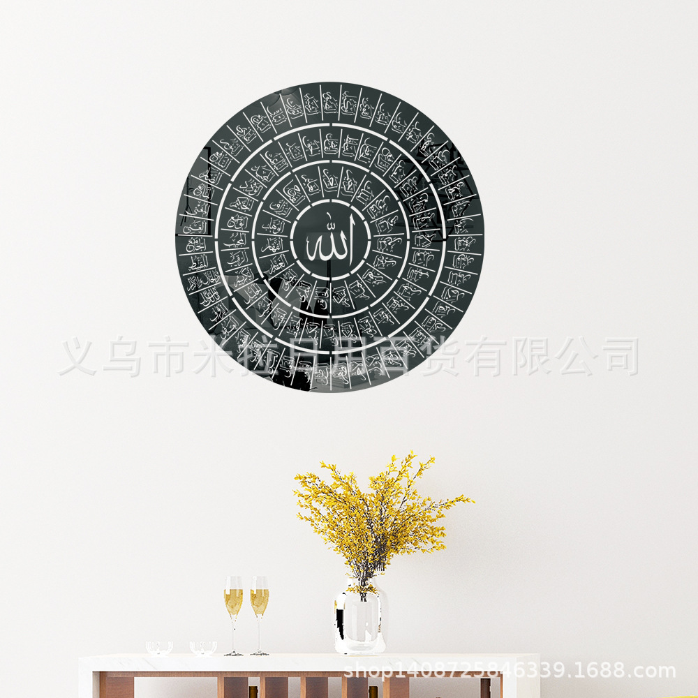 跨境独立站亚马逊亚克力镜面装饰钟表书法艺术字室内墙贴挂钟壁画