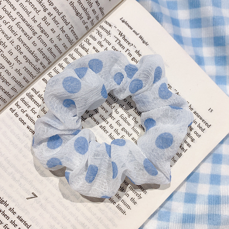 清爽蓝白色系发绳气质波点格子花朵大肠圈少女布艺发圈发饰女2842