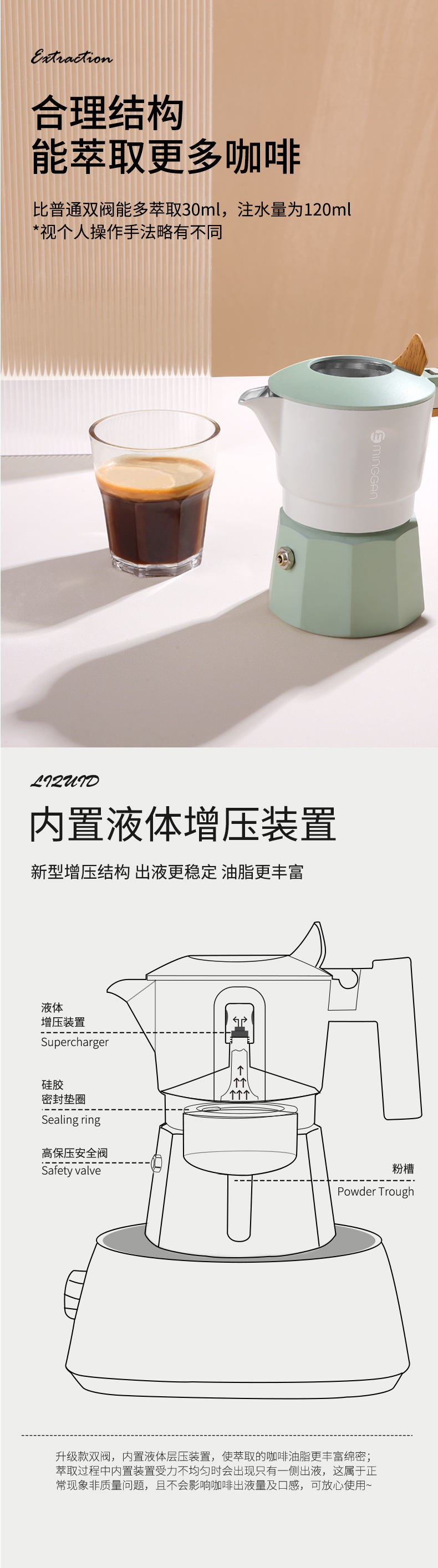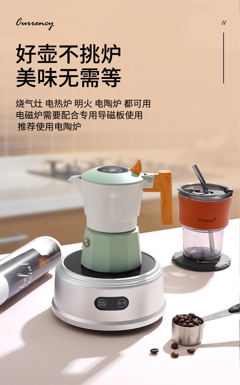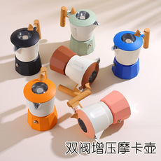 彩色户外露营摩卡壶双阀咖啡壶家用增压复古欧式意式浓缩咖啡器具