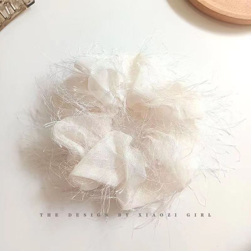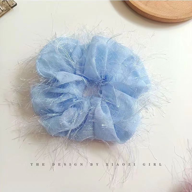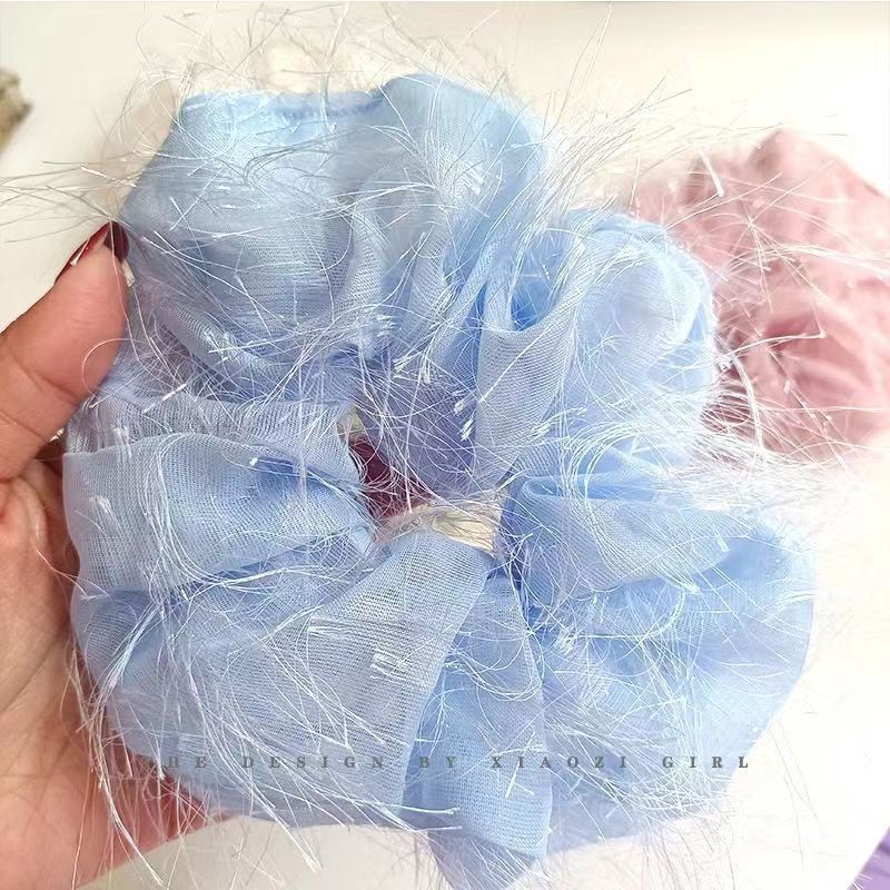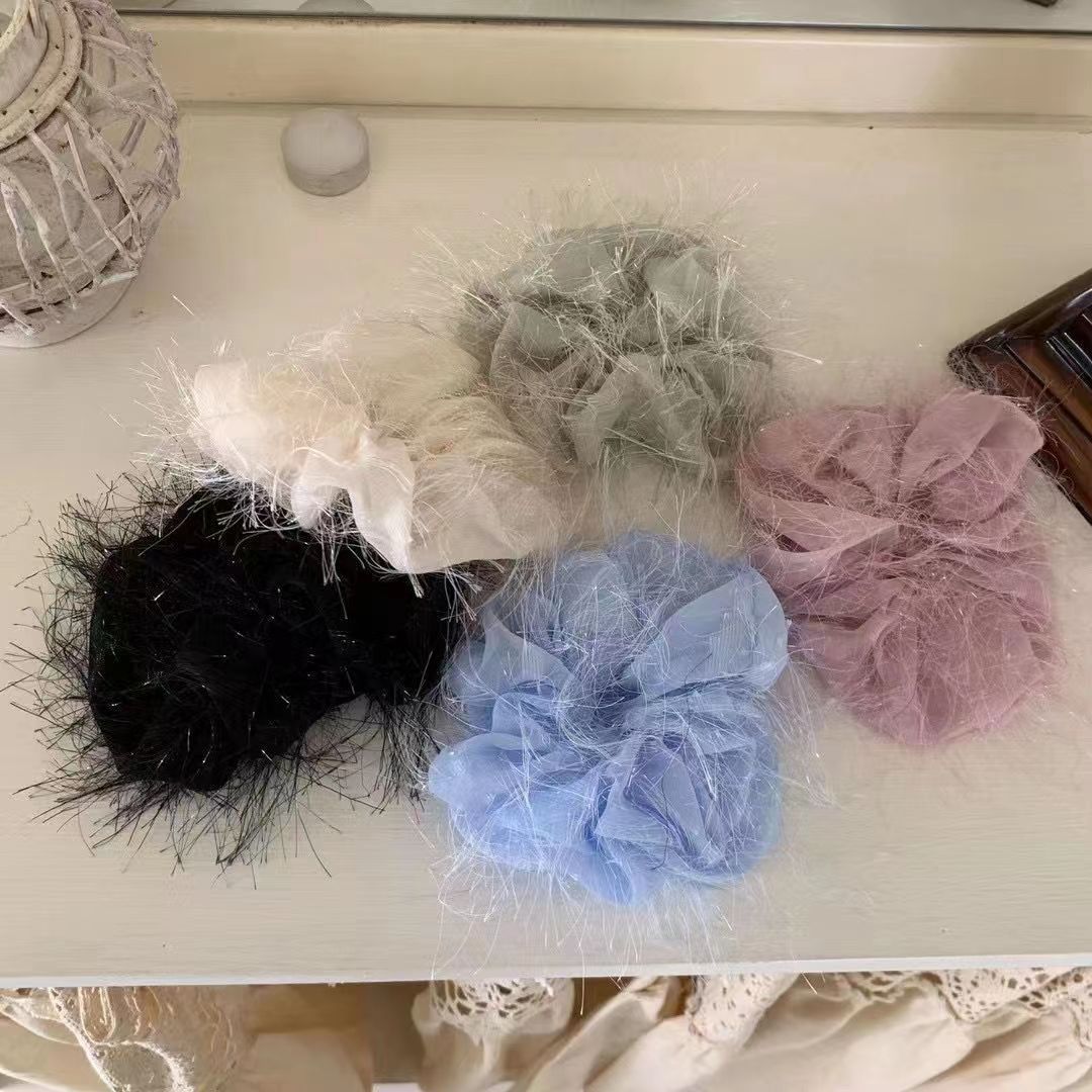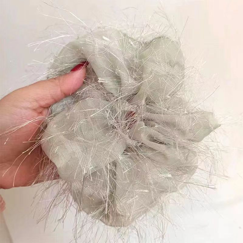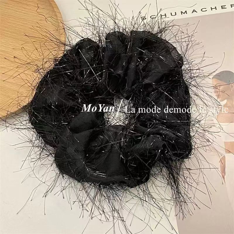 夏季新款亮丝毛毛大肠圈发绳彩色丸子头超仙气质扎头发女发圈发饰