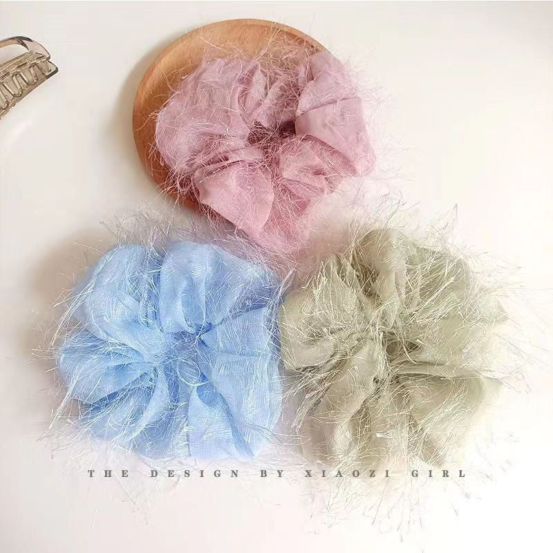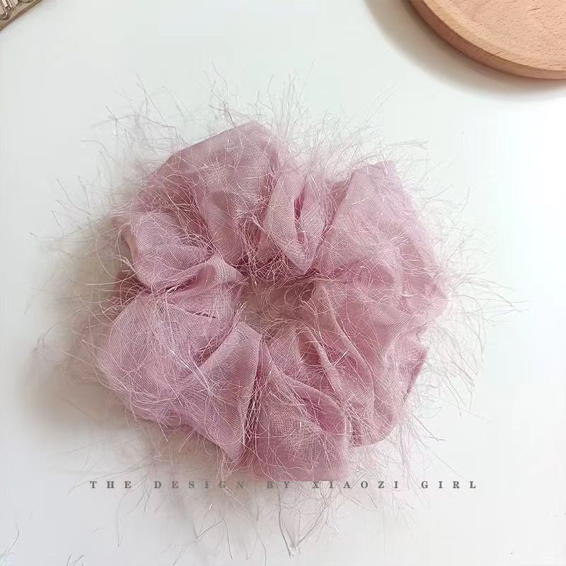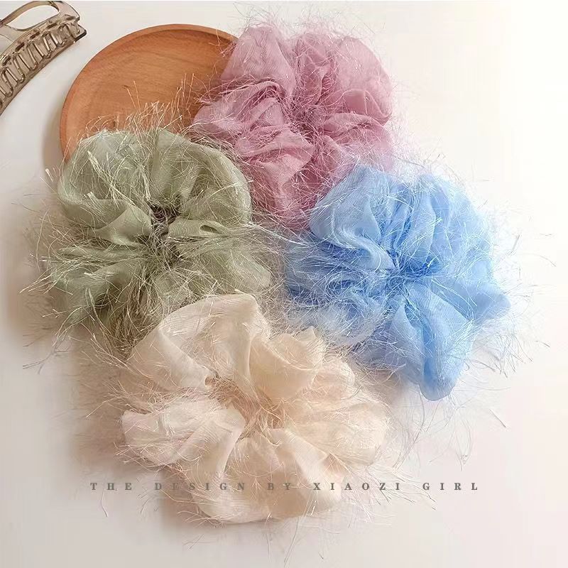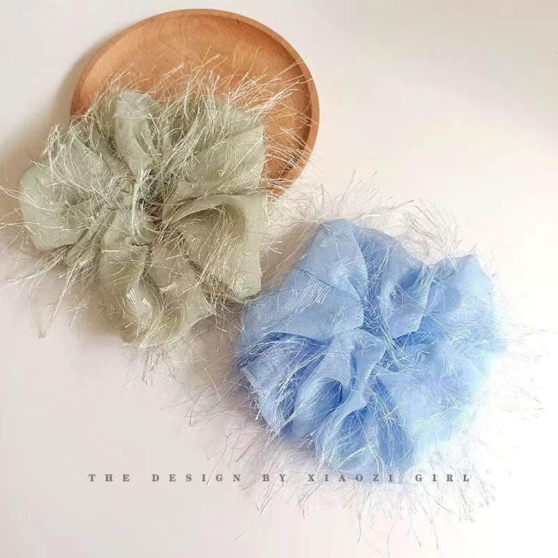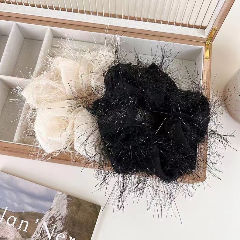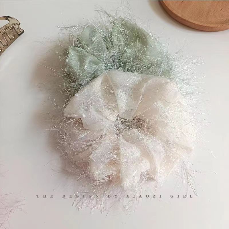 夏季新款亮丝毛毛大肠圈发绳彩色丸子头超仙气质扎头发女发圈发饰