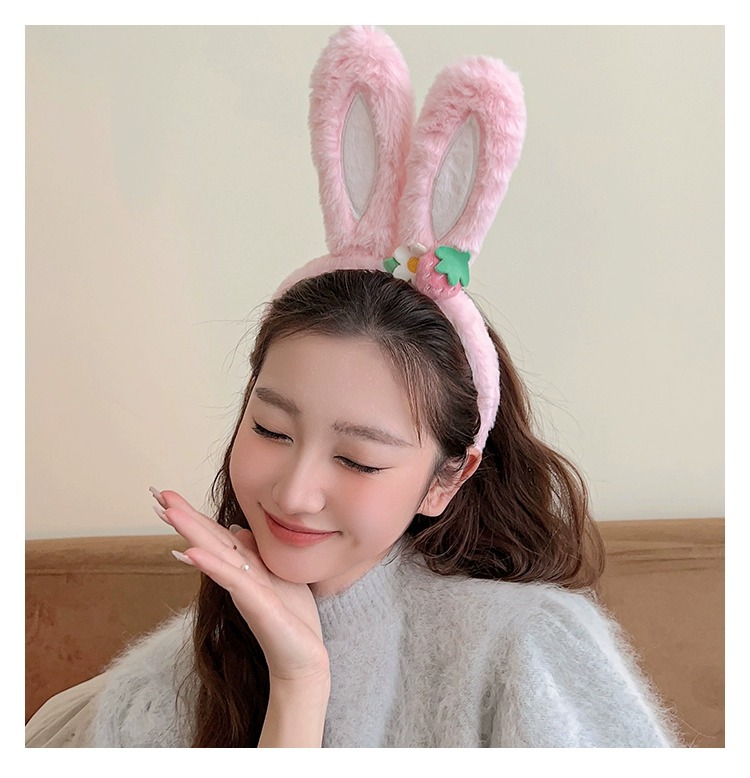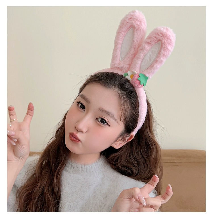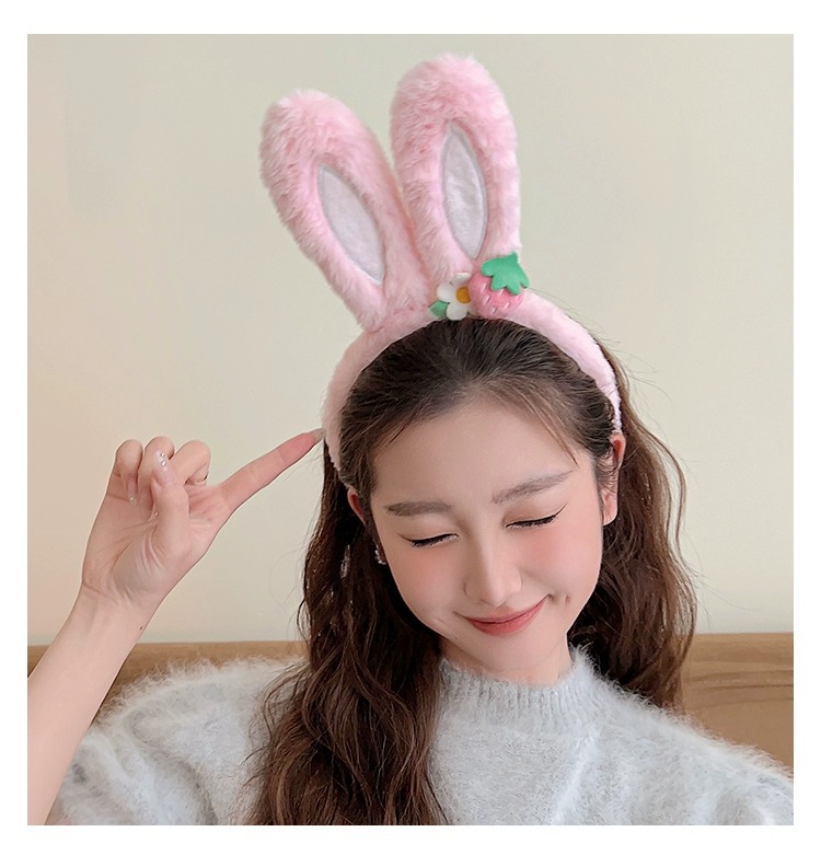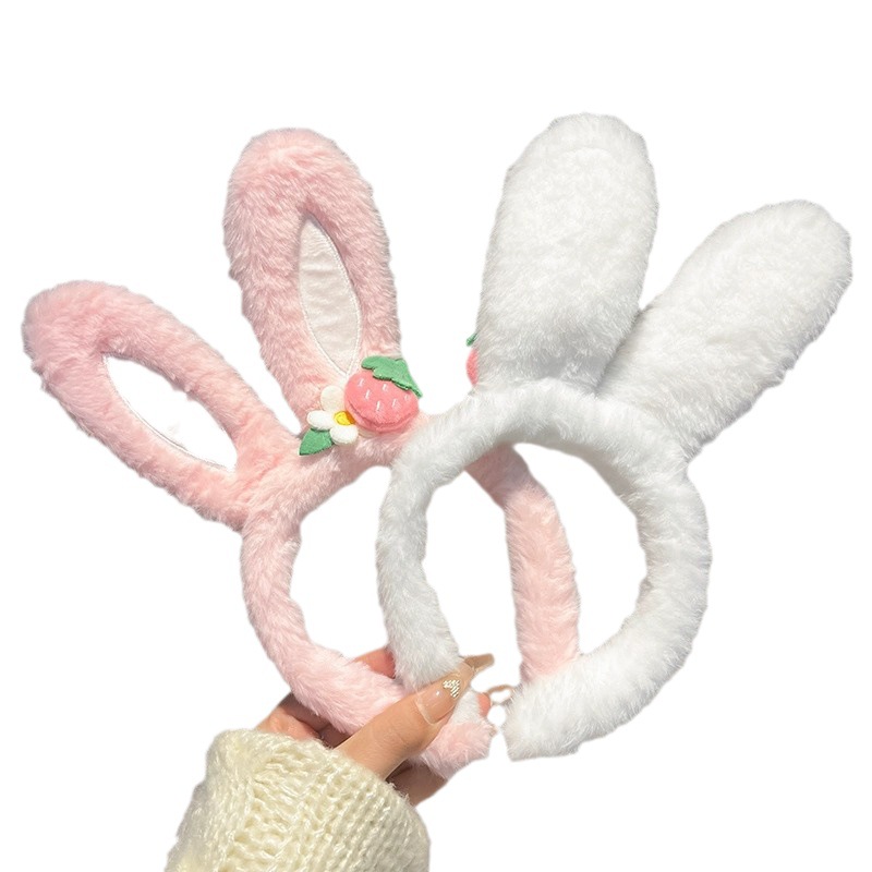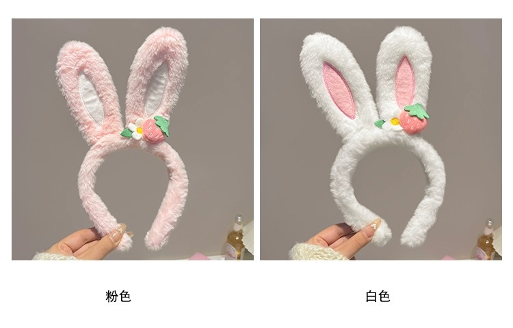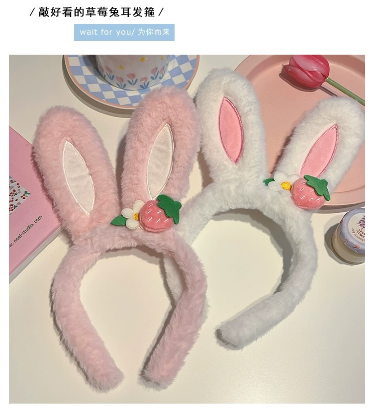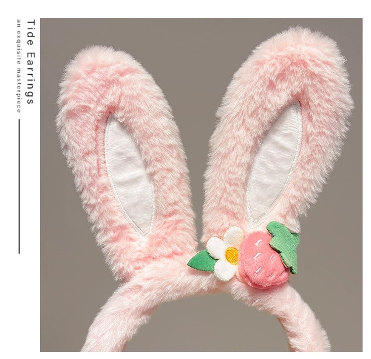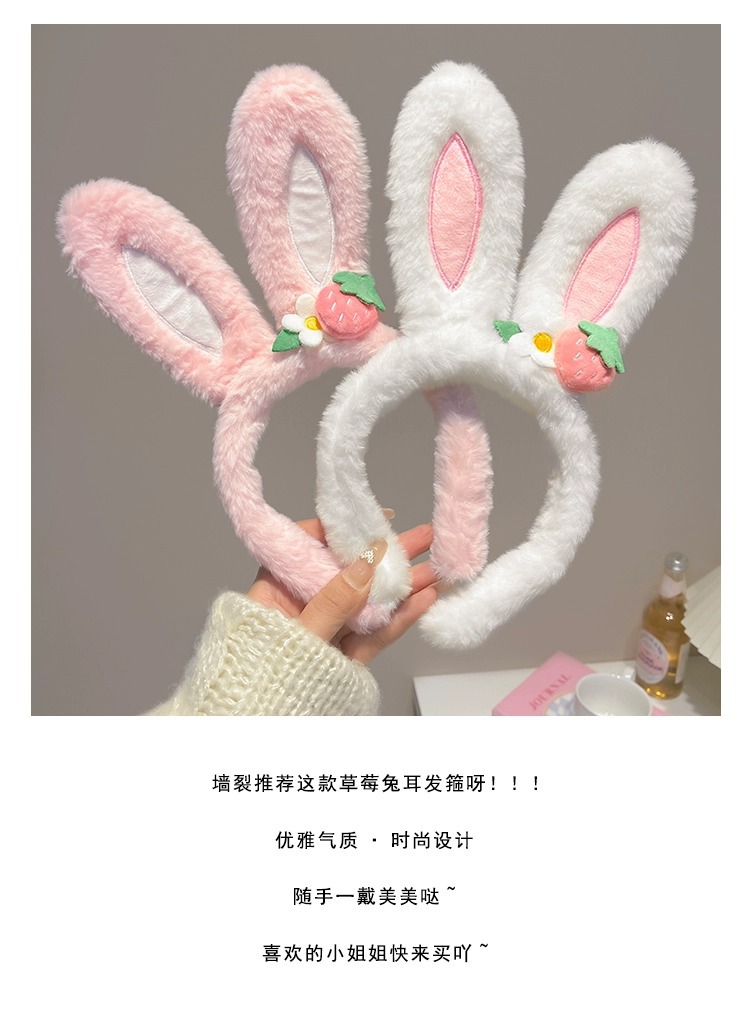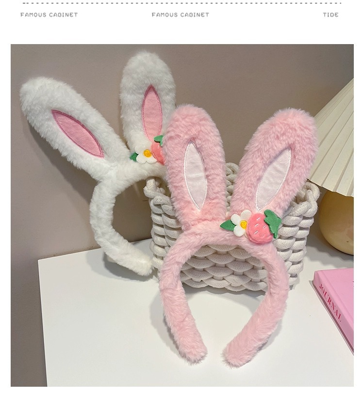 可爱草莓花朵兔子耳朵发箍女款夏季毛绒压发头箍儿童发捆发卡头饰