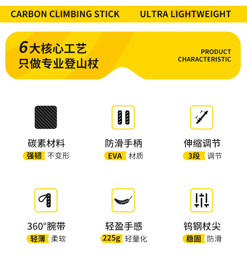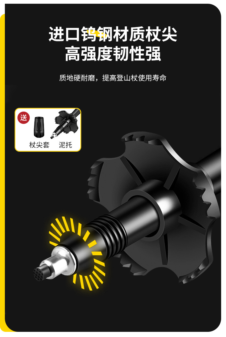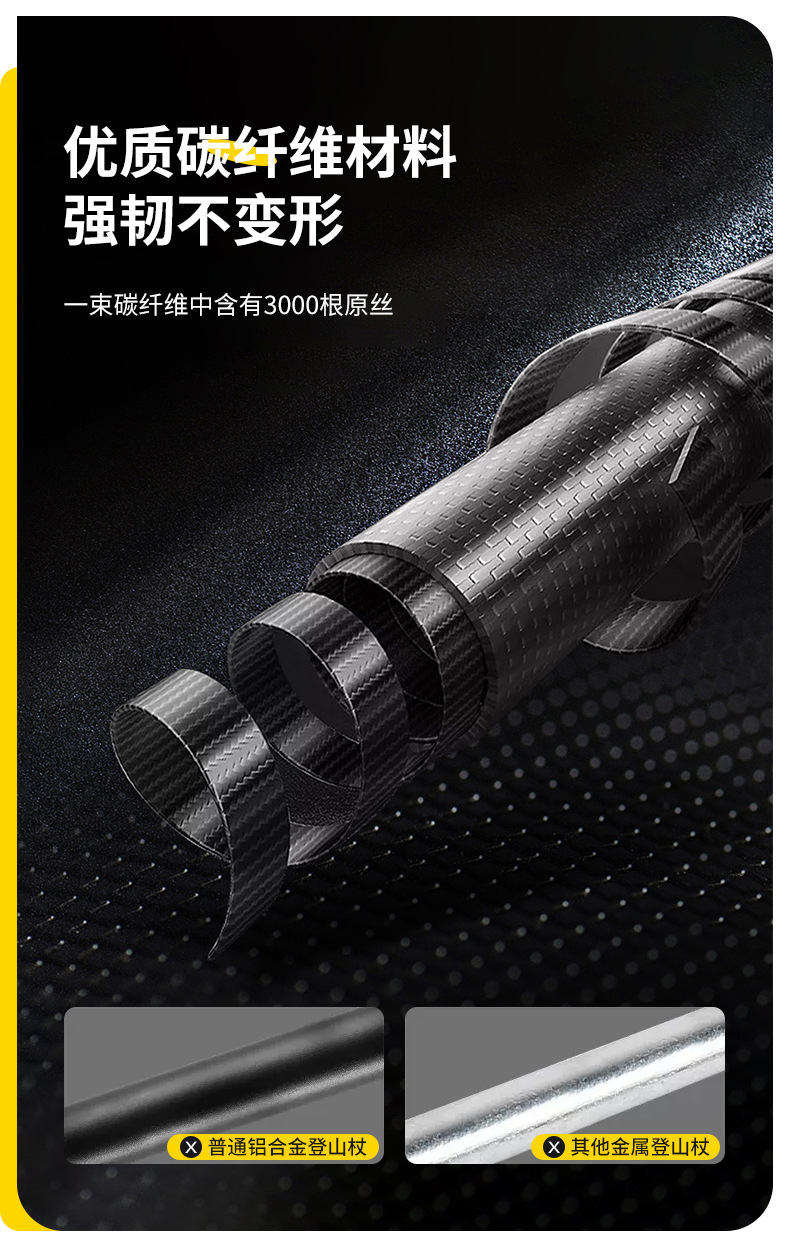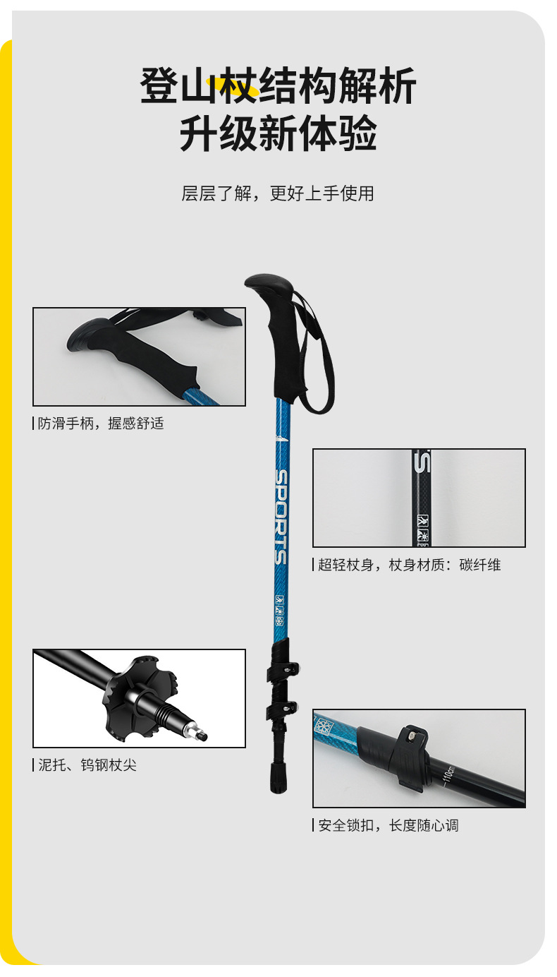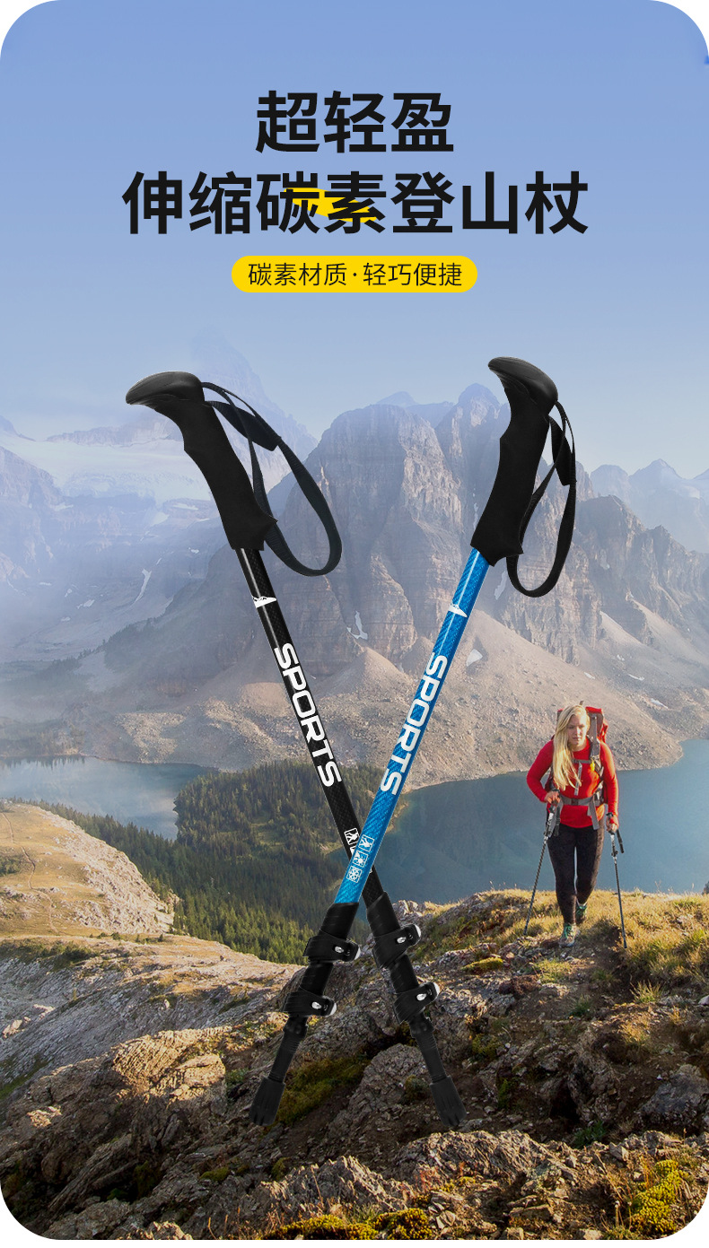 户外碳素登山杖超轻便携拐杖徒步伸缩碳纤维手杖跨境专供