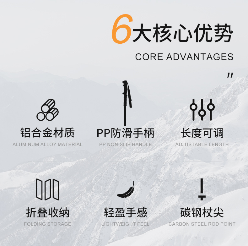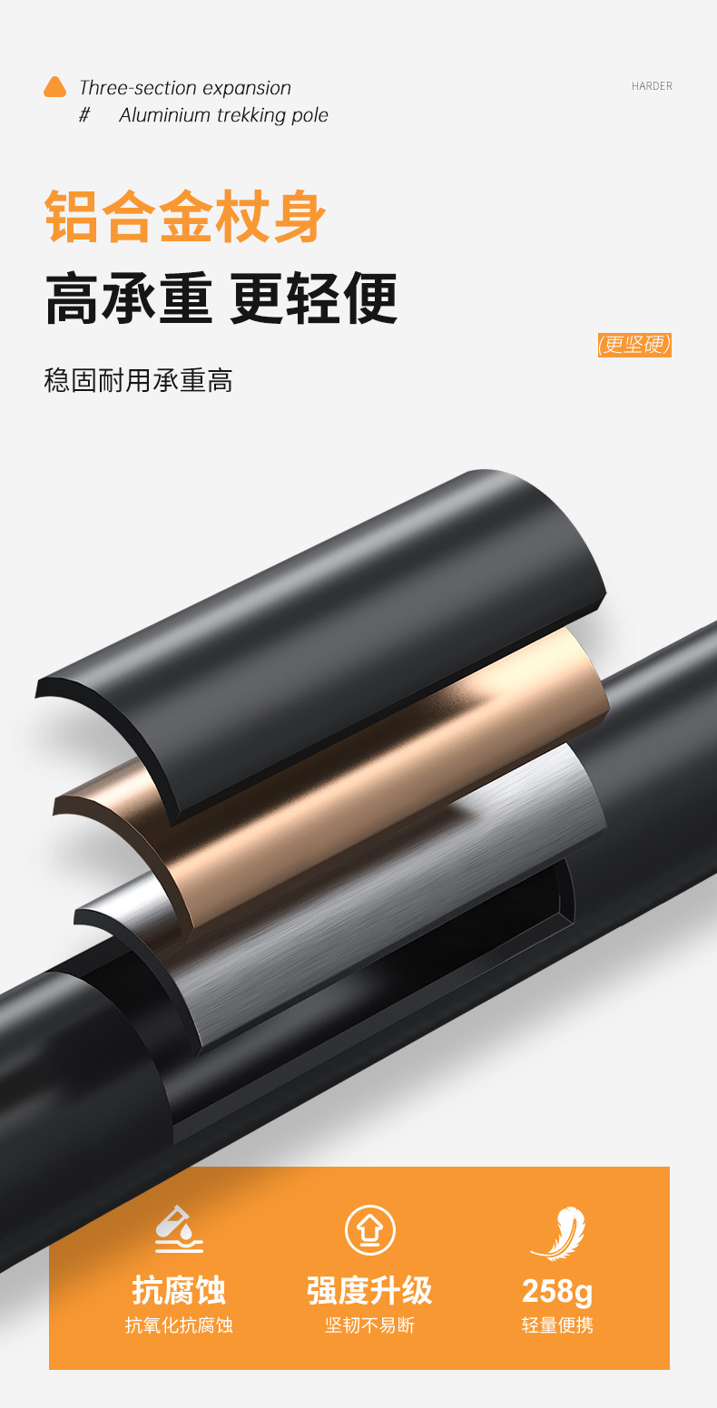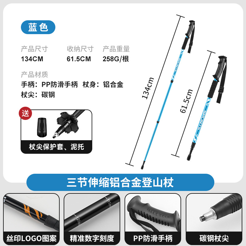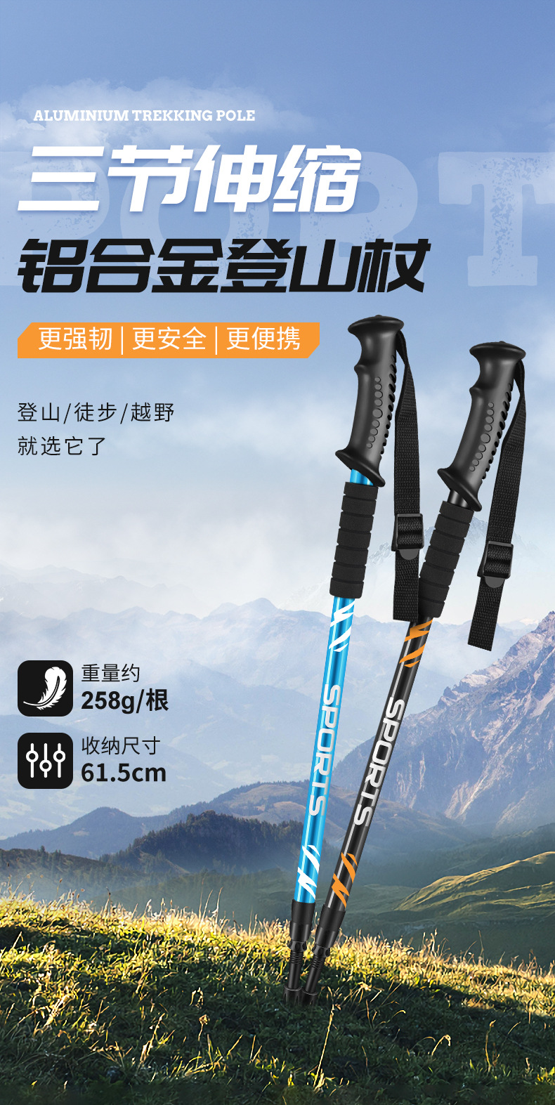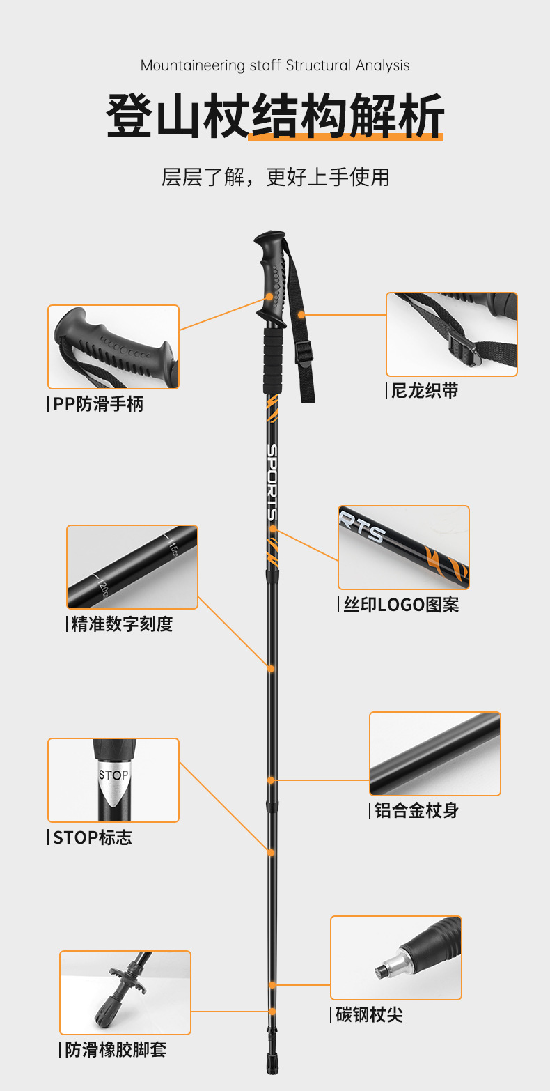 超艺登山杖户外徒步杖6061铝合金伸缩轻便拐杖爬山越野户外行走杖