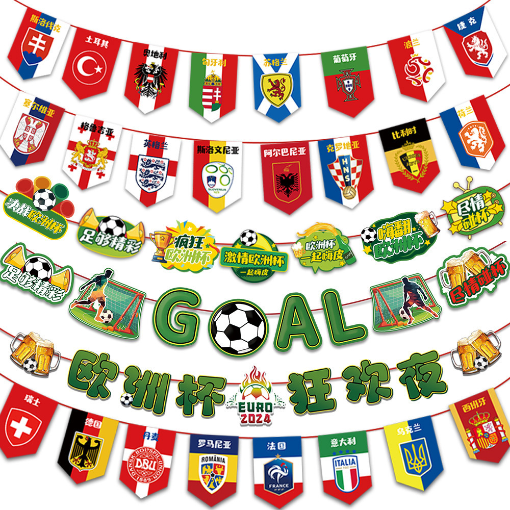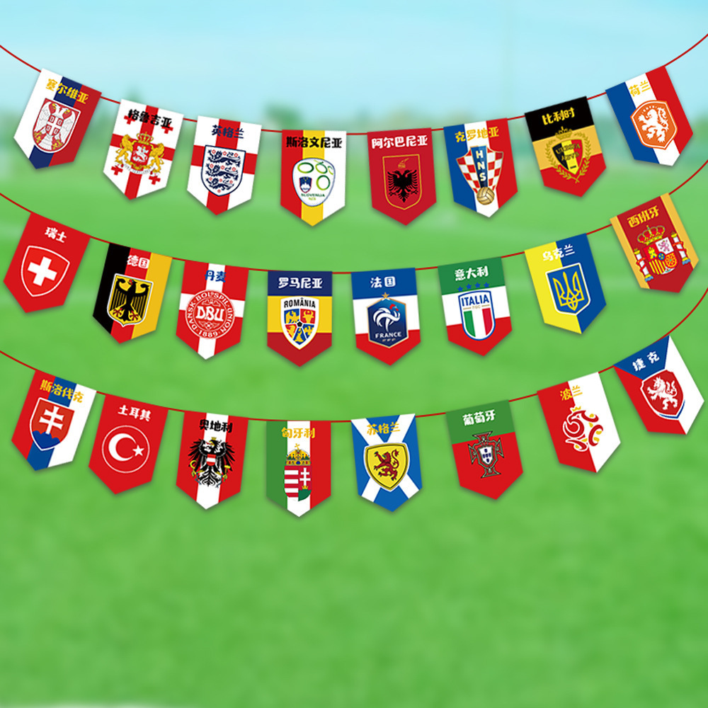 2025欧洲杯主题拉旗24强国旗队徽串旗体彩店酒吧烧烤气氛布置彩旗