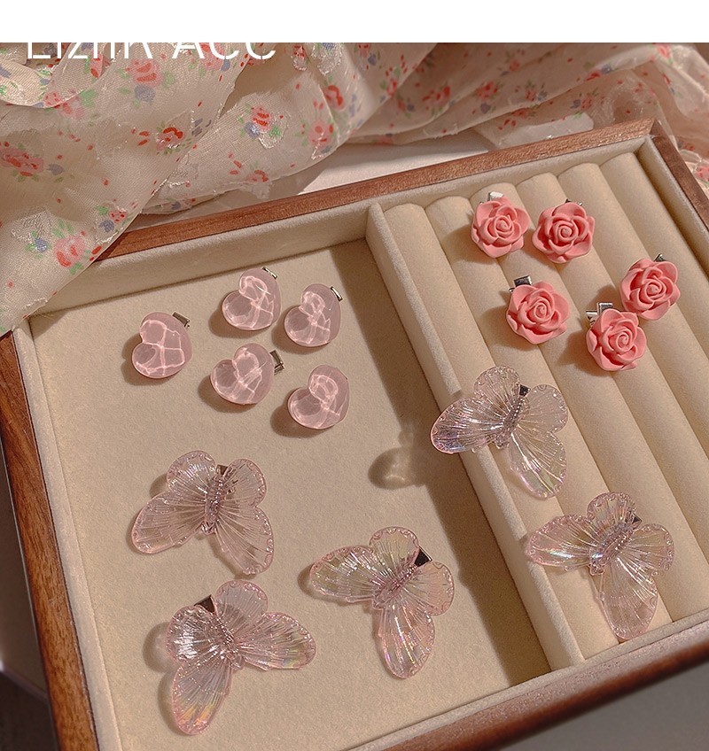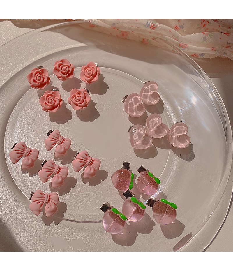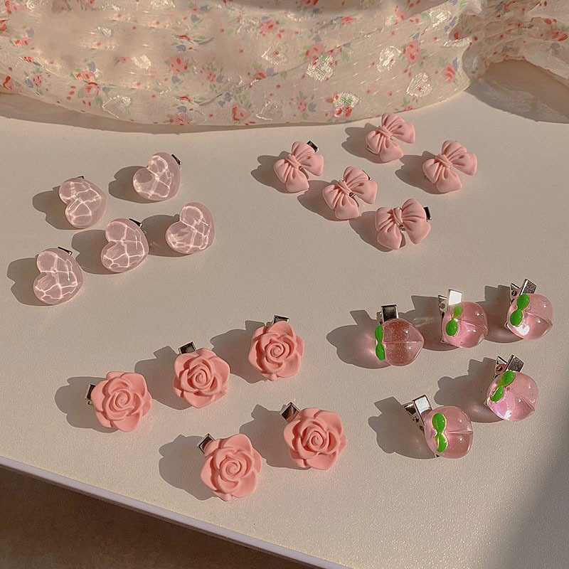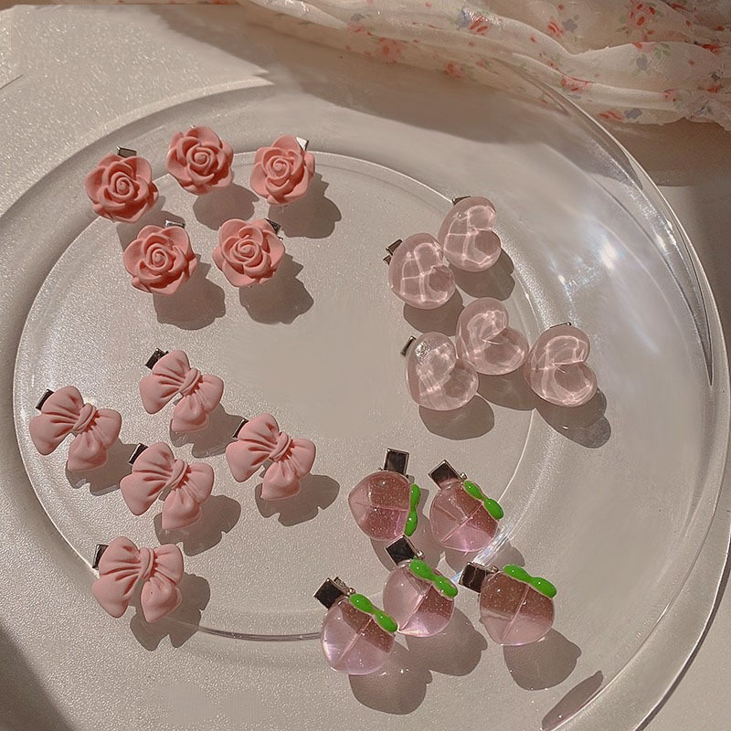 夏季粉色爱心蝴蝶结花朵小发夹女2023年网红新款小巧碎发刘海边夹
