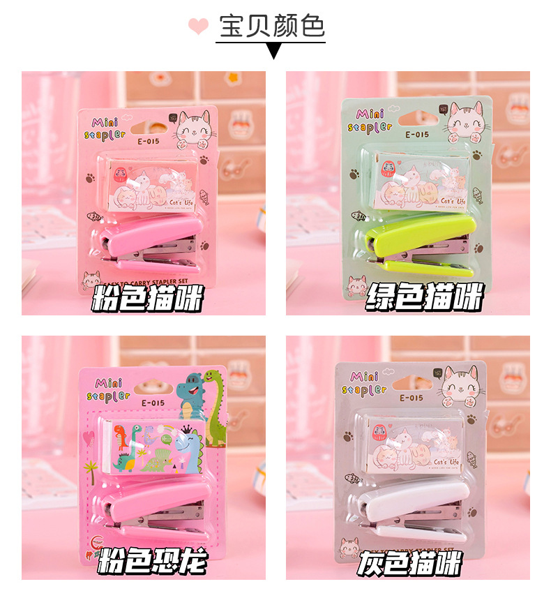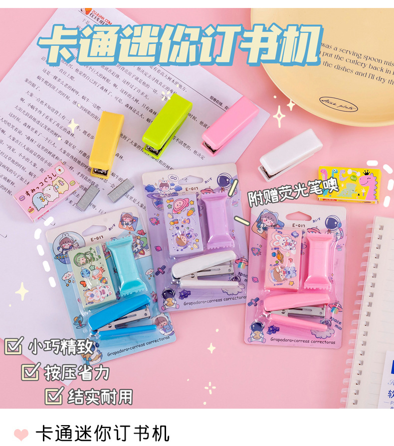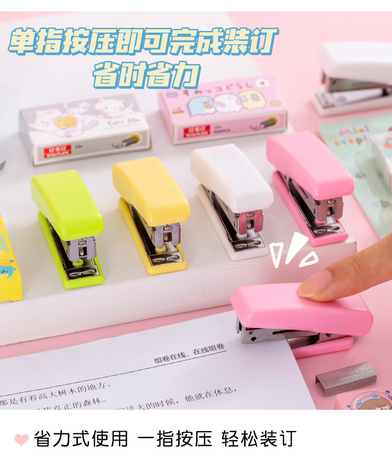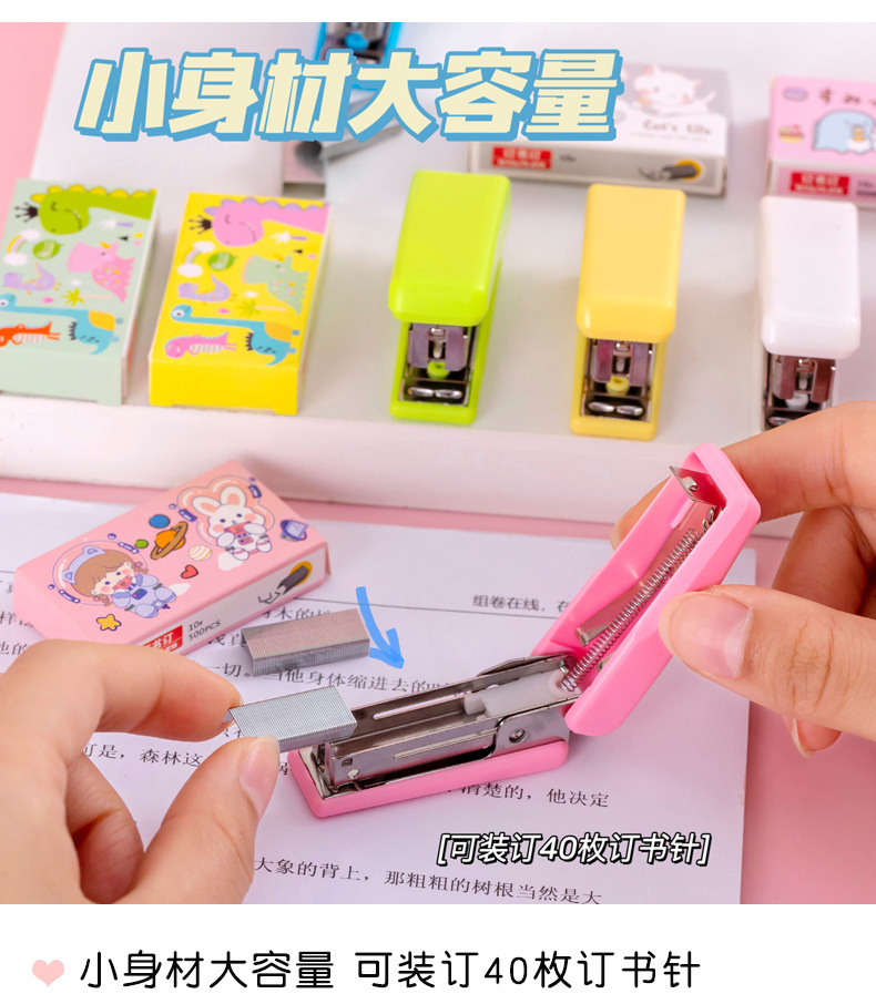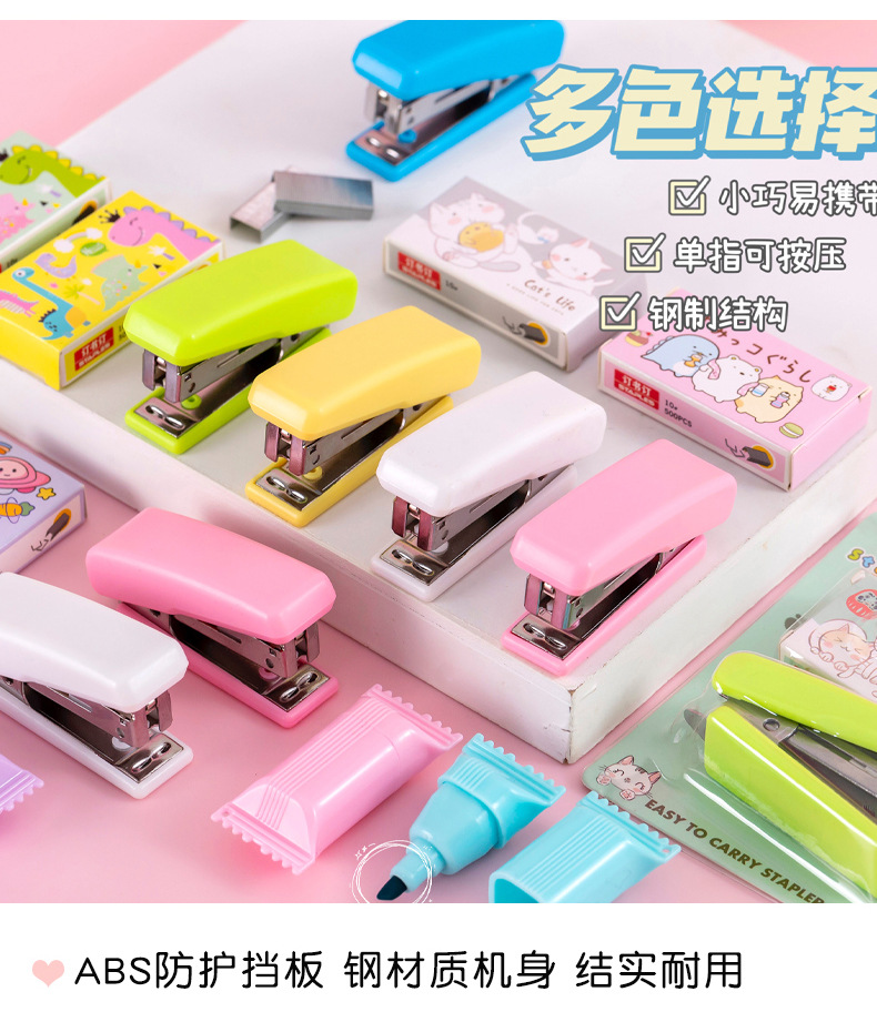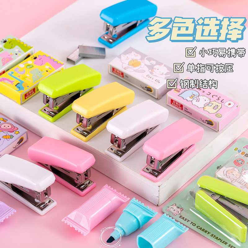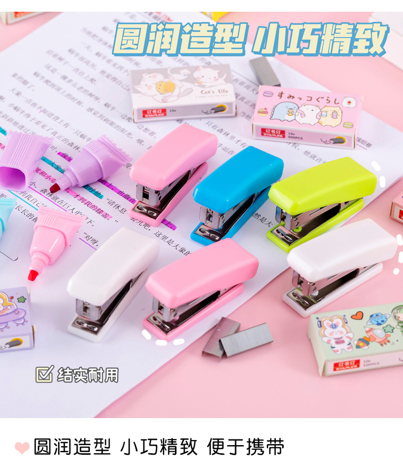 卡通迷你订书机套装 便携可爱学生用试卷文件装订机10#订书机批发