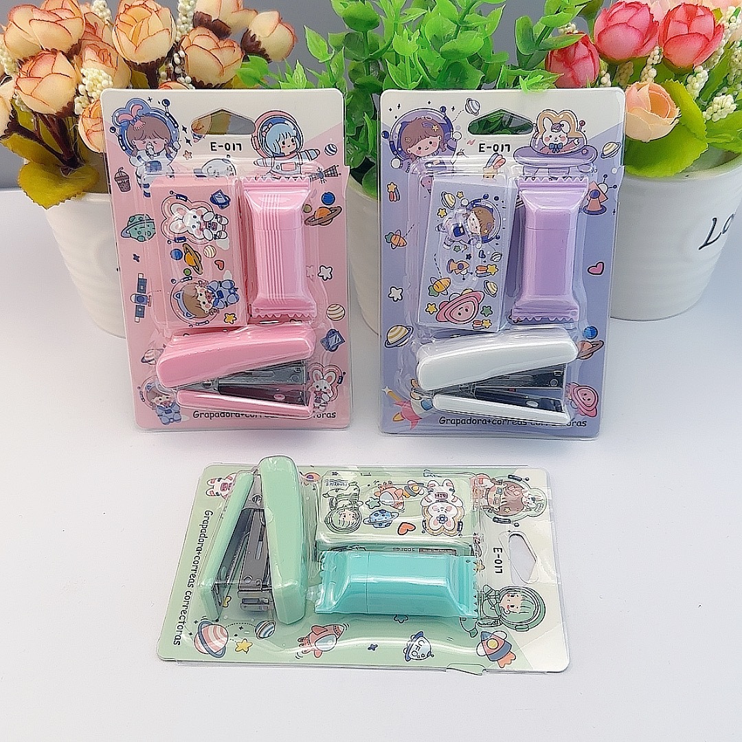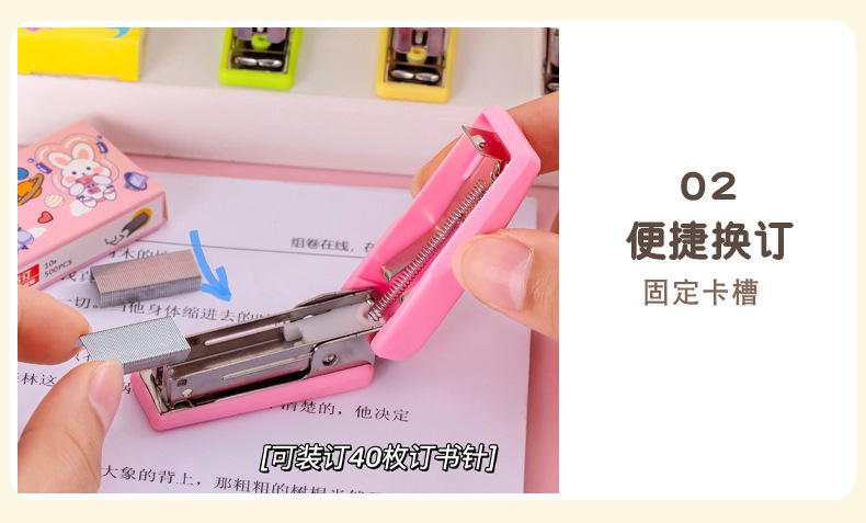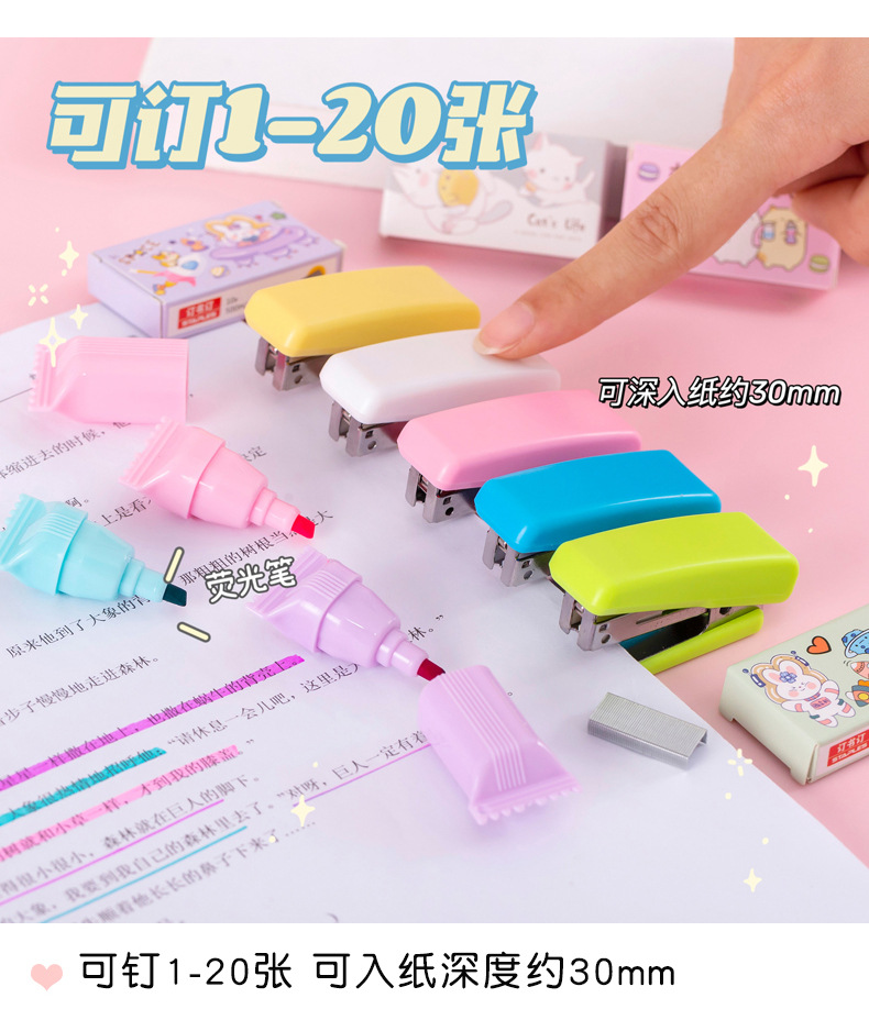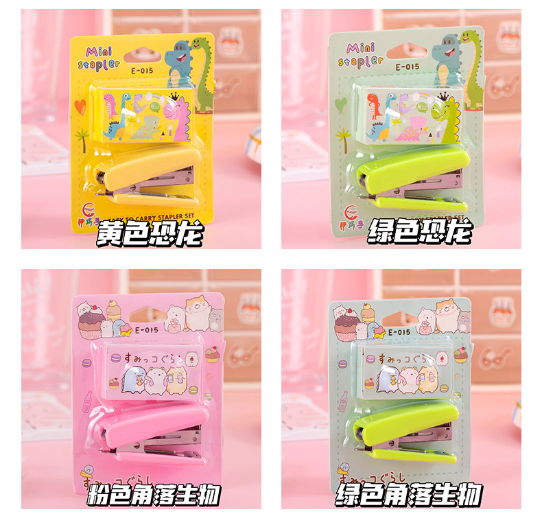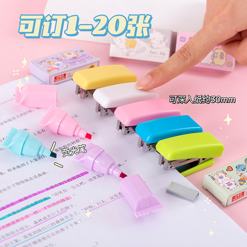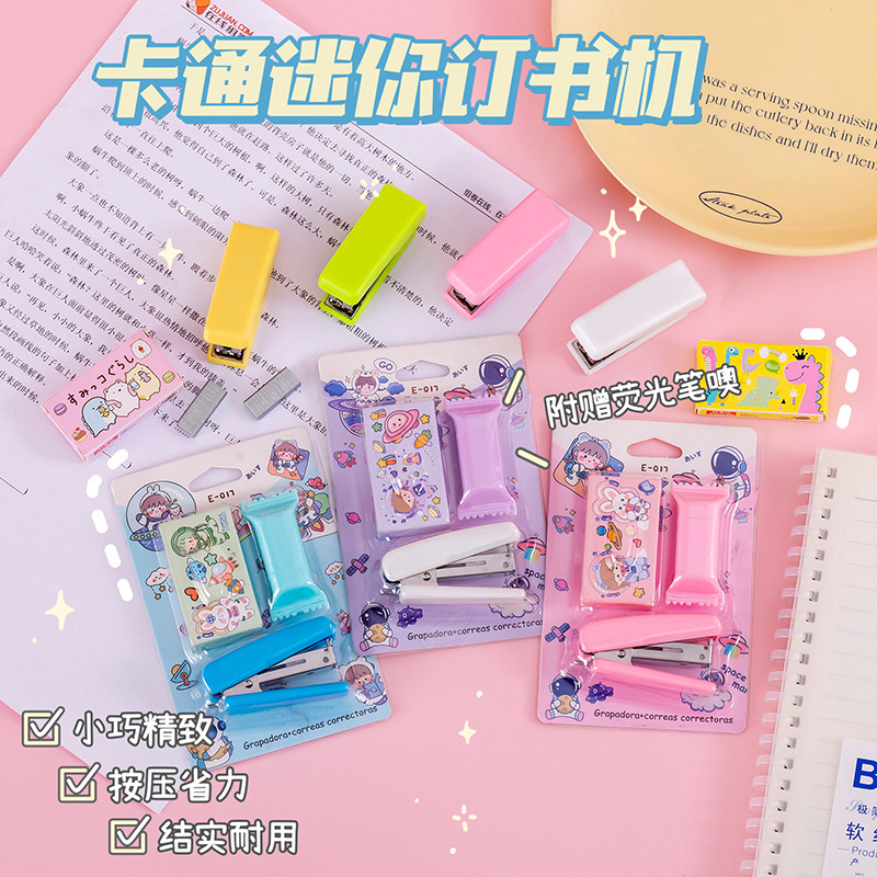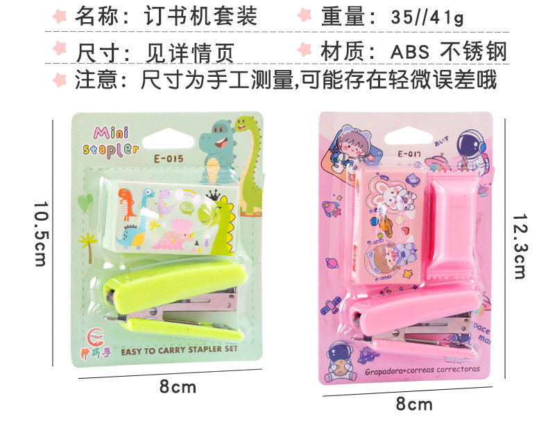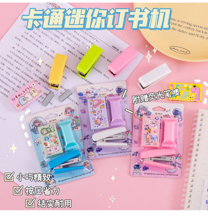 卡通迷你订书机套装 便携可爱学生用试卷文件装订机10#订书机批发