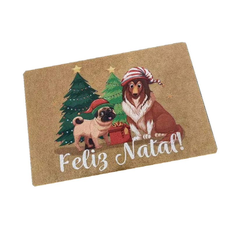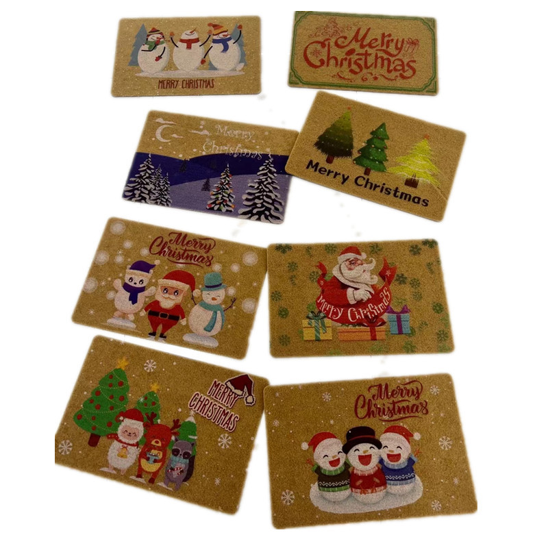 亚马逊热卖款新型仿椰棕钢丝垫印花款圣诞图案刮泥除尘家用地垫
