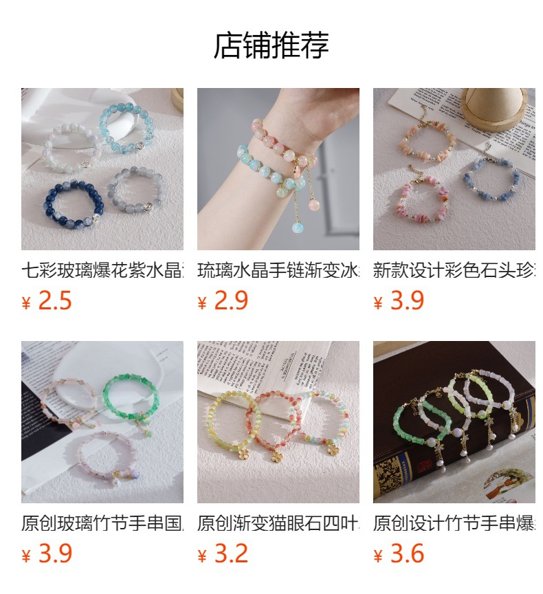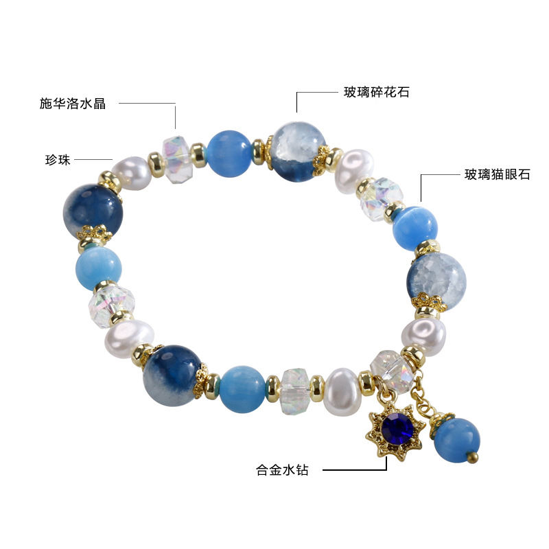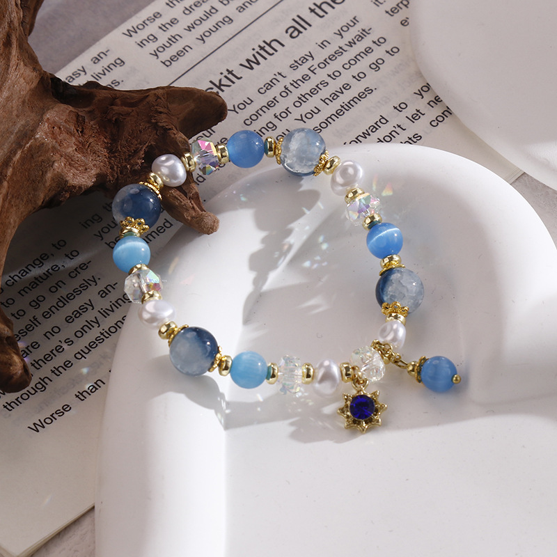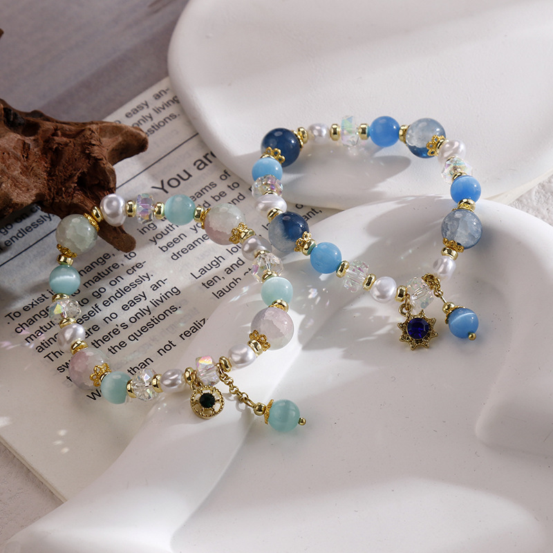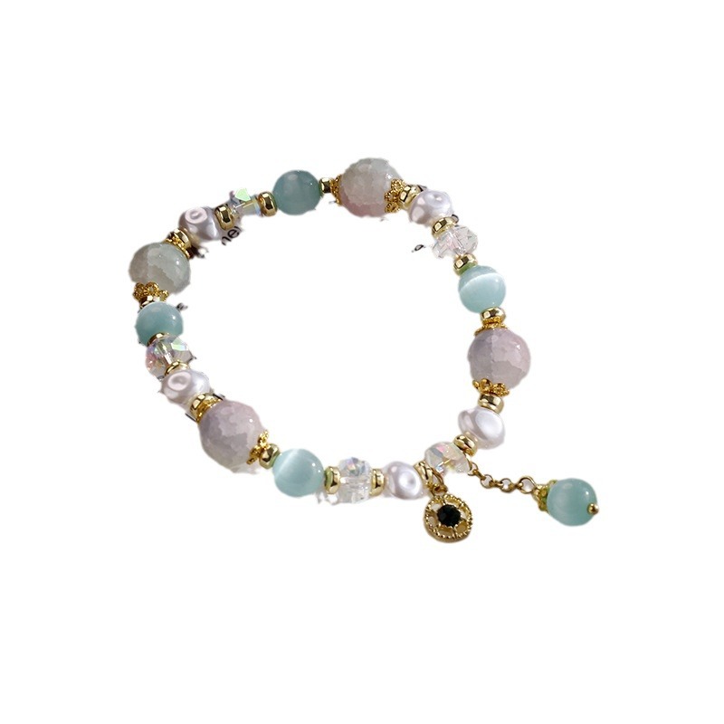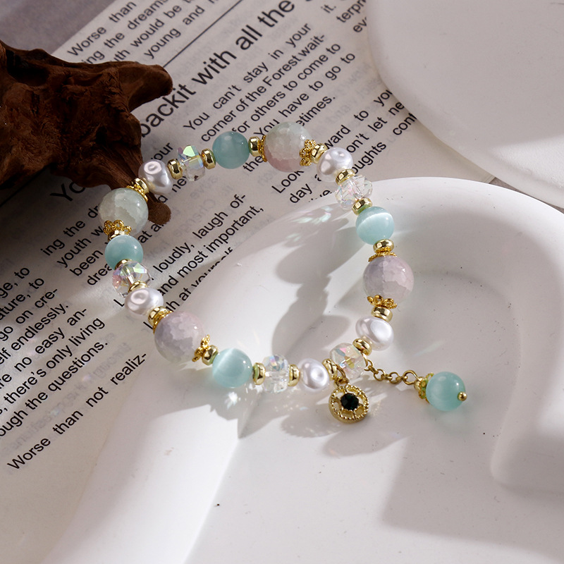 原创国风汉服搭配猫眼碎花石水晶珍珠手链弹力绳冰凉手串供货批发