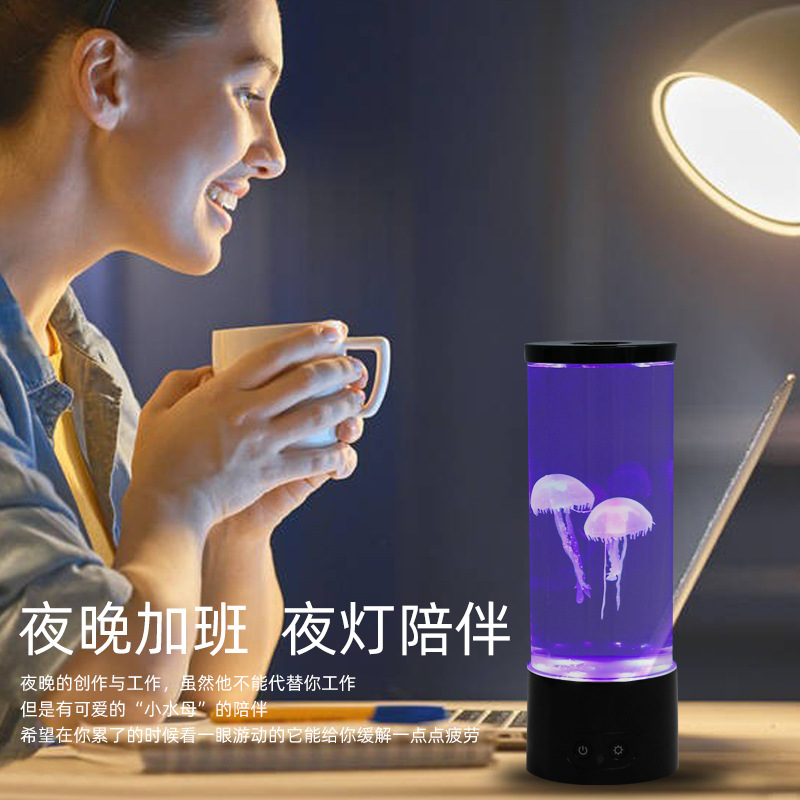 批发现货水母灯LED变色遥控氛围灯圣诞装饰客厅摆件小夜灯