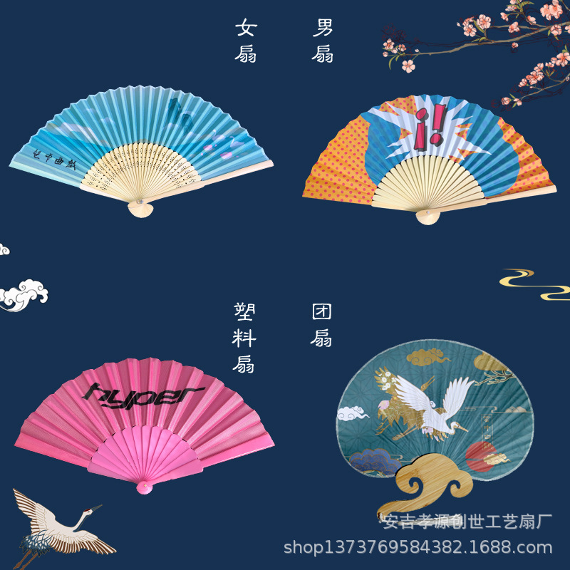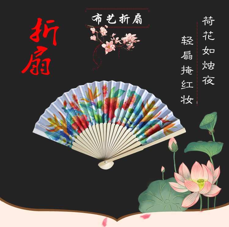 布艺折扇竹扇子广告扇厂家女扇折叠单面布纸扇来图来样可定各式扇