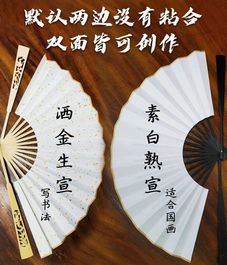 空白宣纸折扇中国风复古扇面书法广告扇扇子批发中式竹质激光雕刻