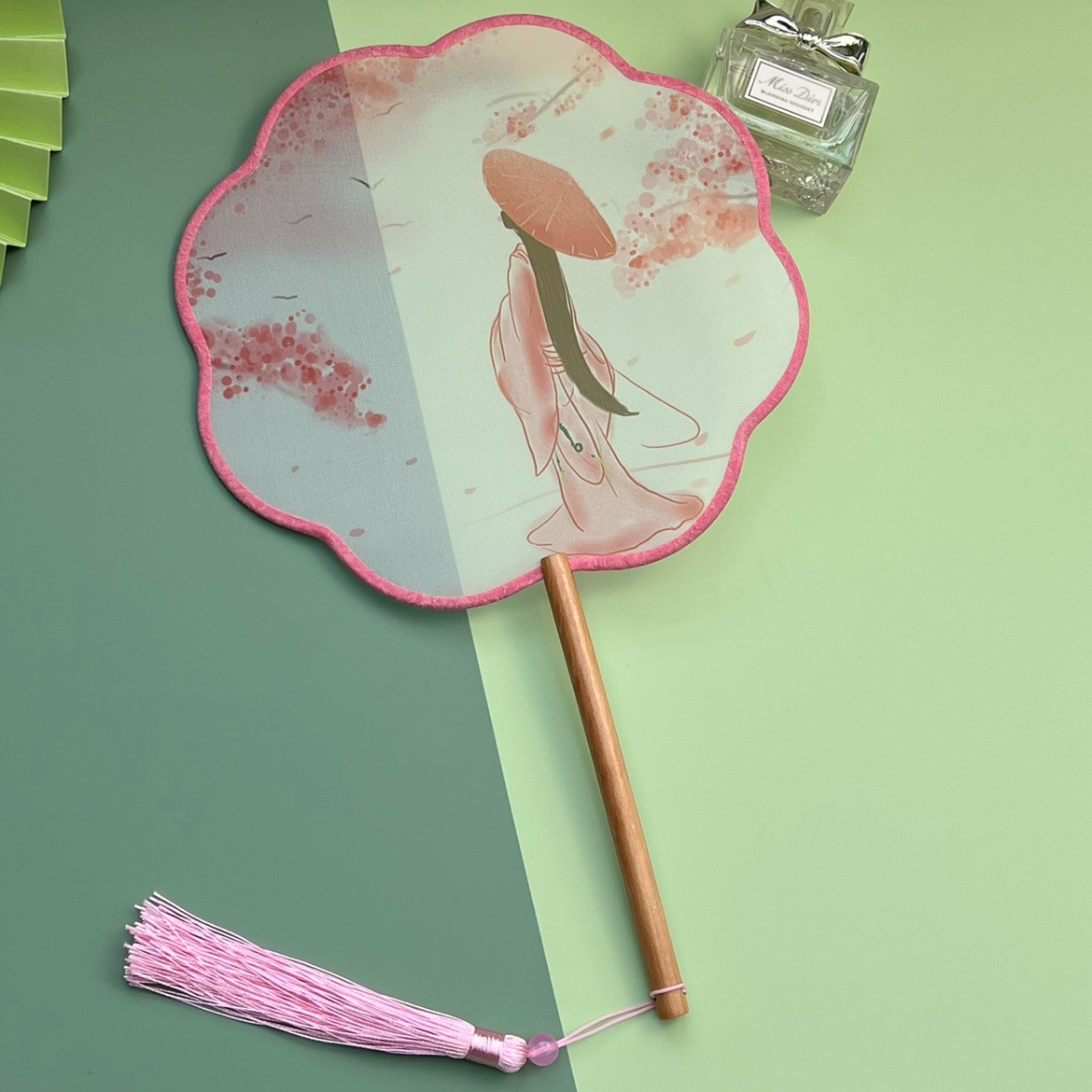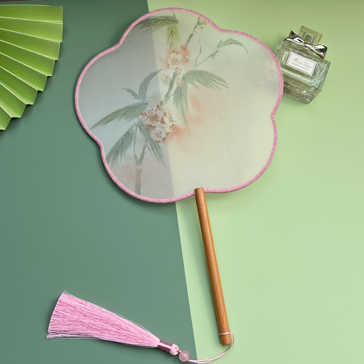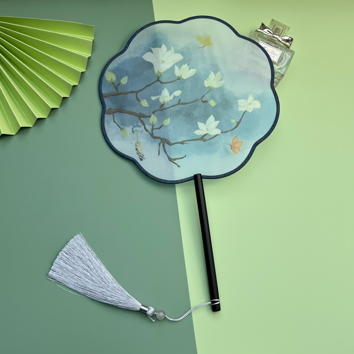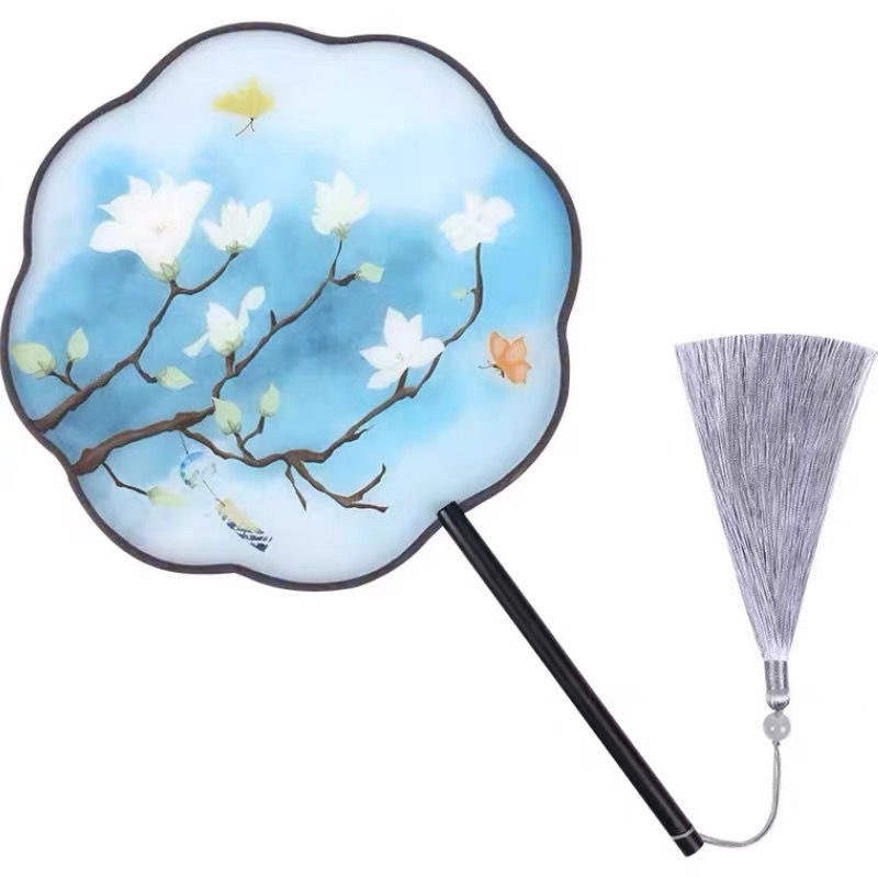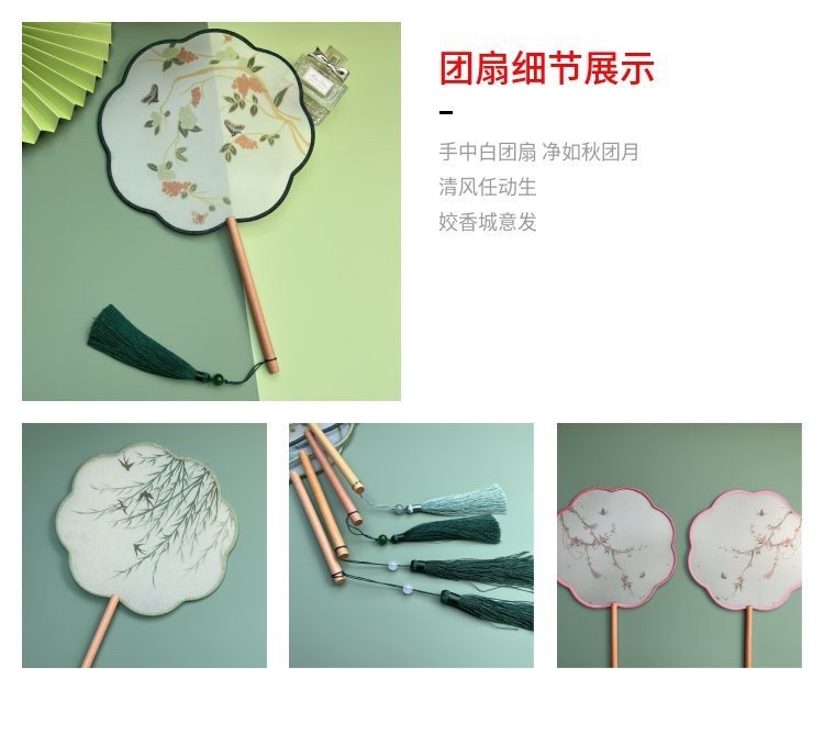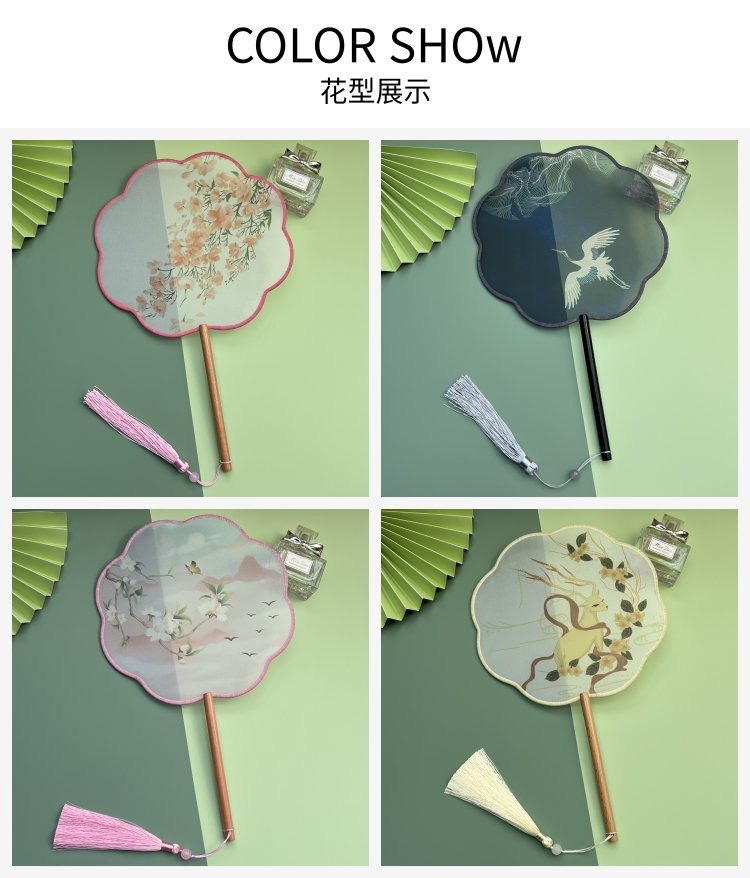 八瓣半透明长柄古风团扇汉服摄影道具宫扇子古典舞蹈演出旗袍圆扇