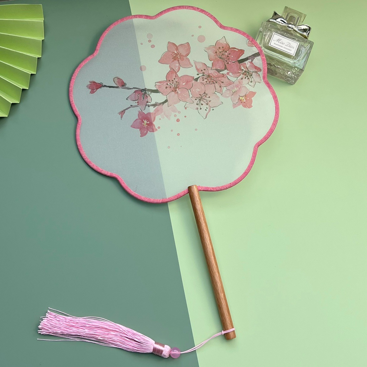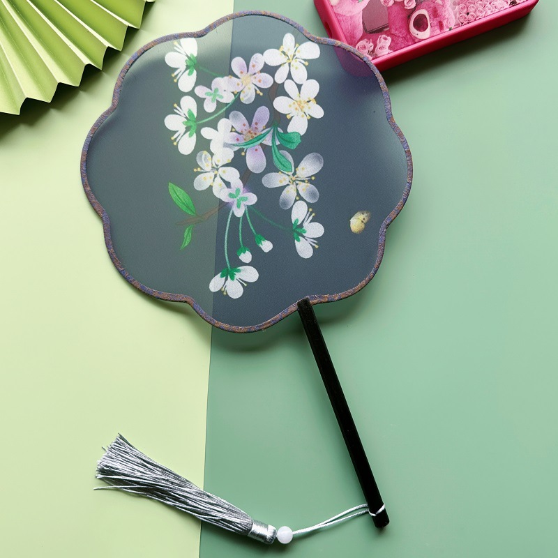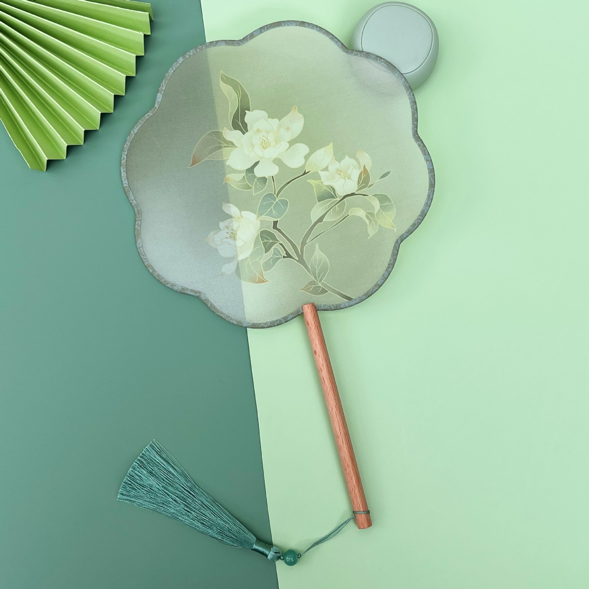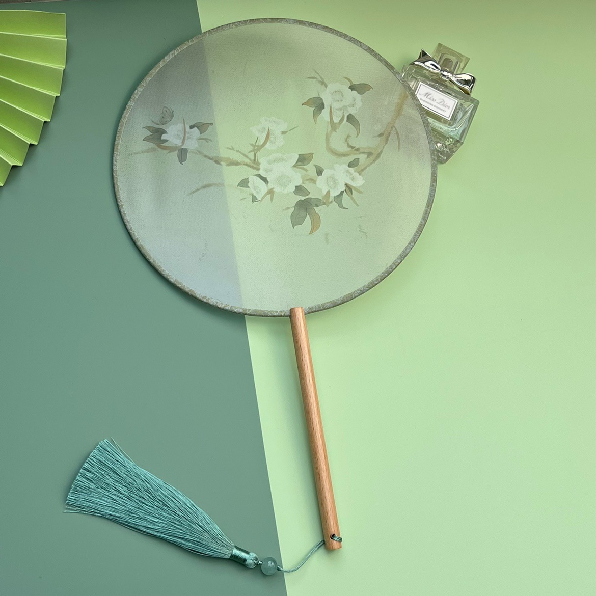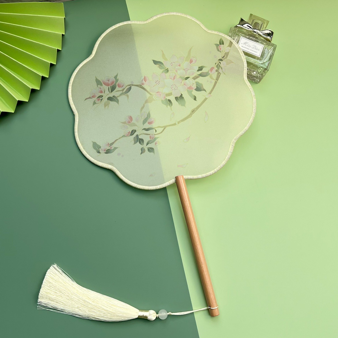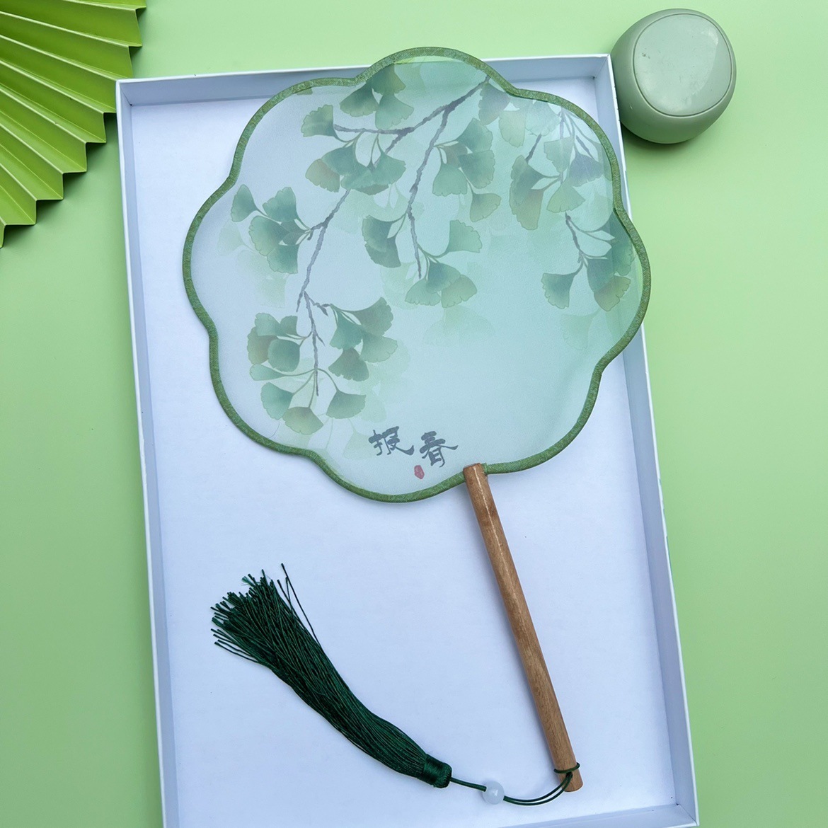 八瓣半透明长柄古风团扇汉服摄影道具宫扇子古典舞蹈演出旗袍圆扇