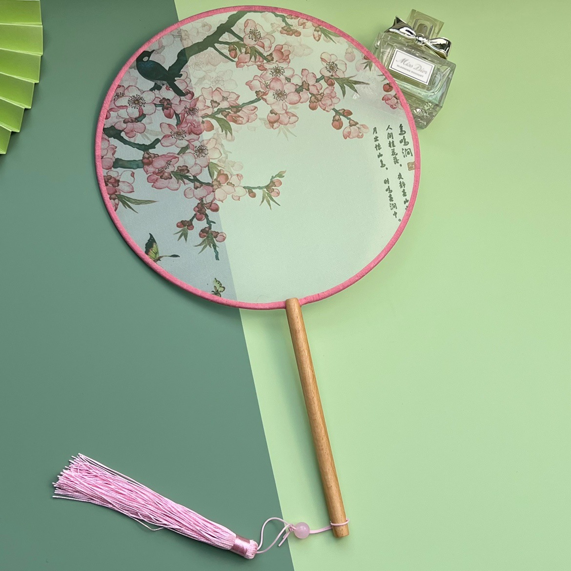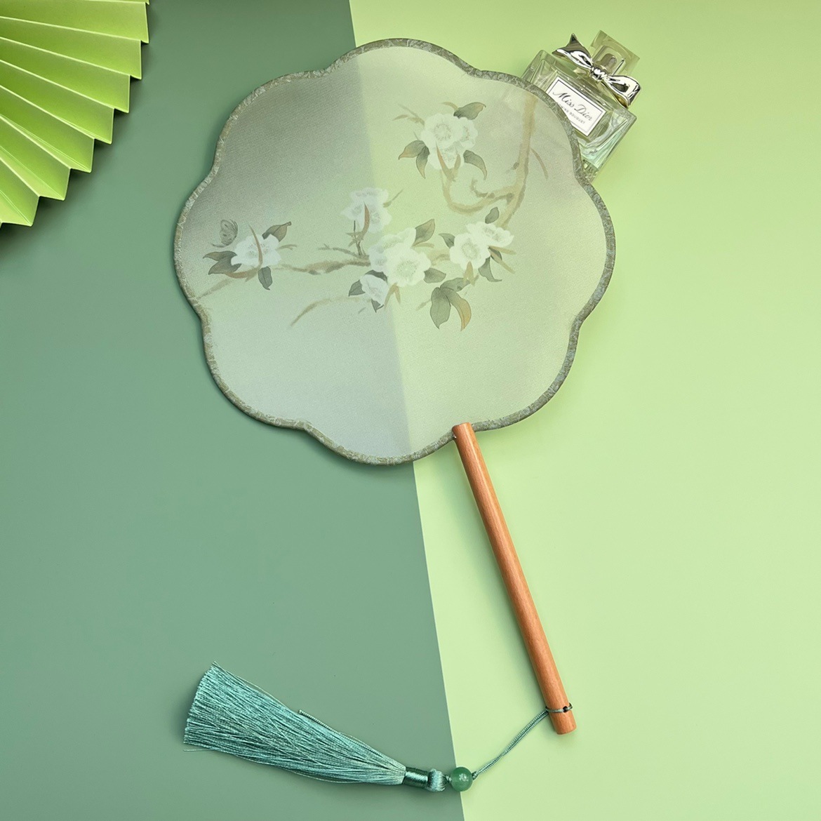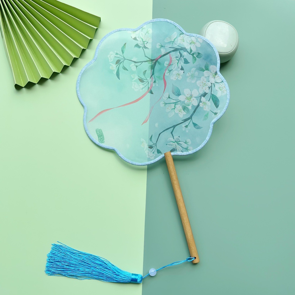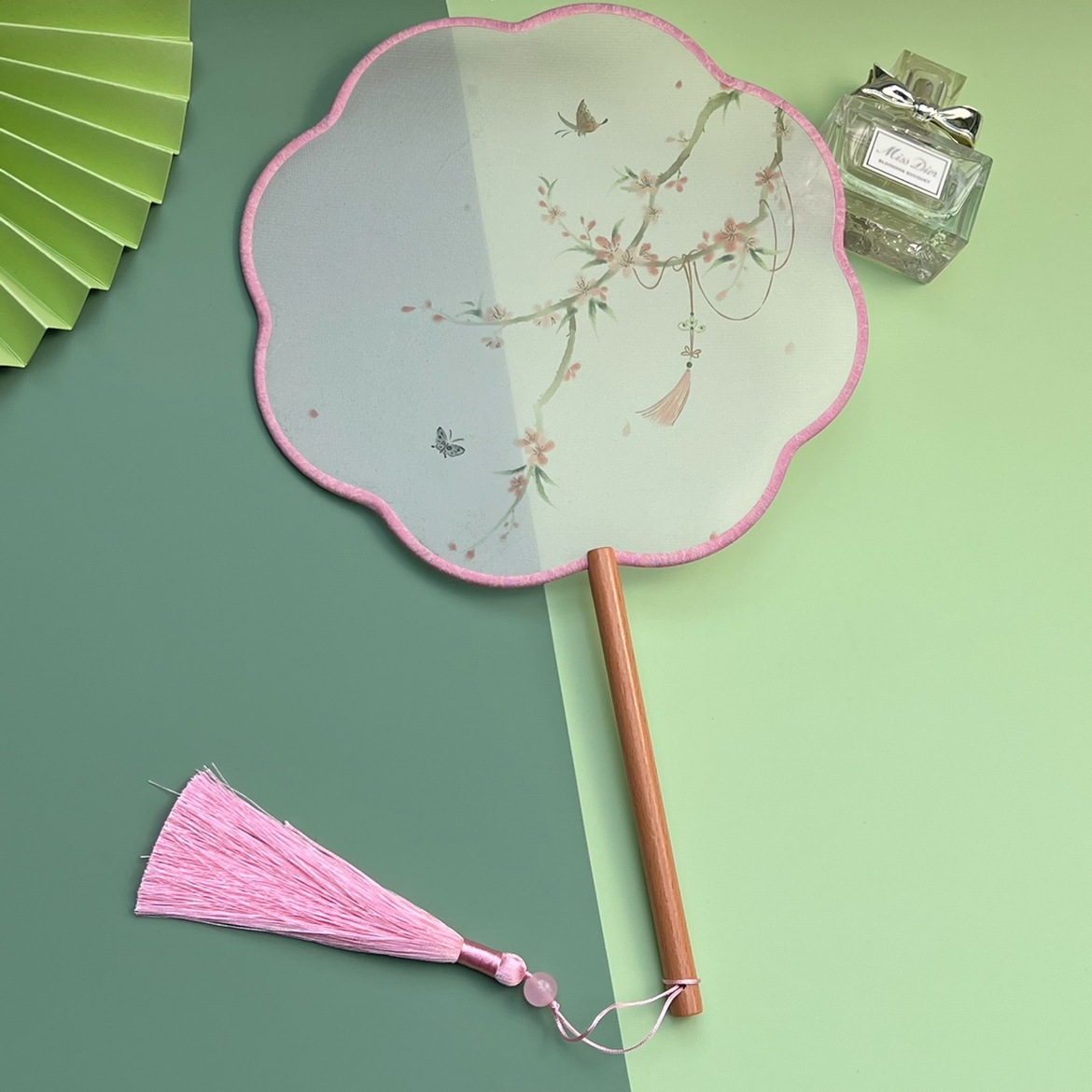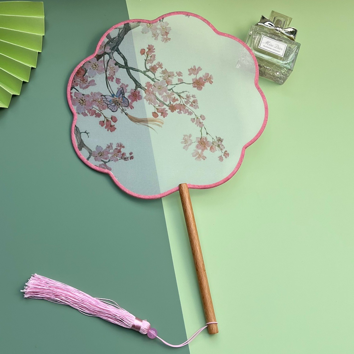 八瓣半透明长柄古风团扇汉服摄影道具宫扇子古典舞蹈演出旗袍圆扇