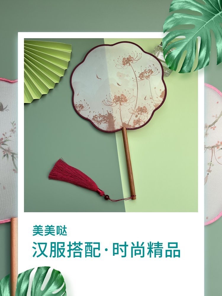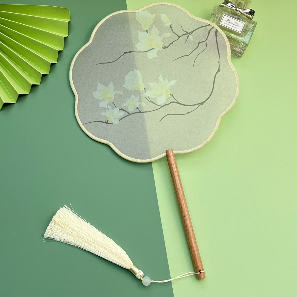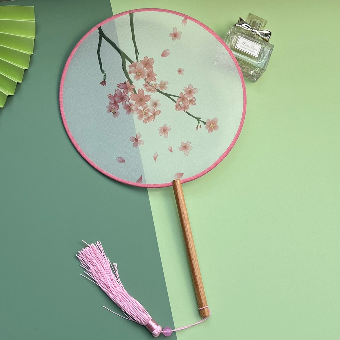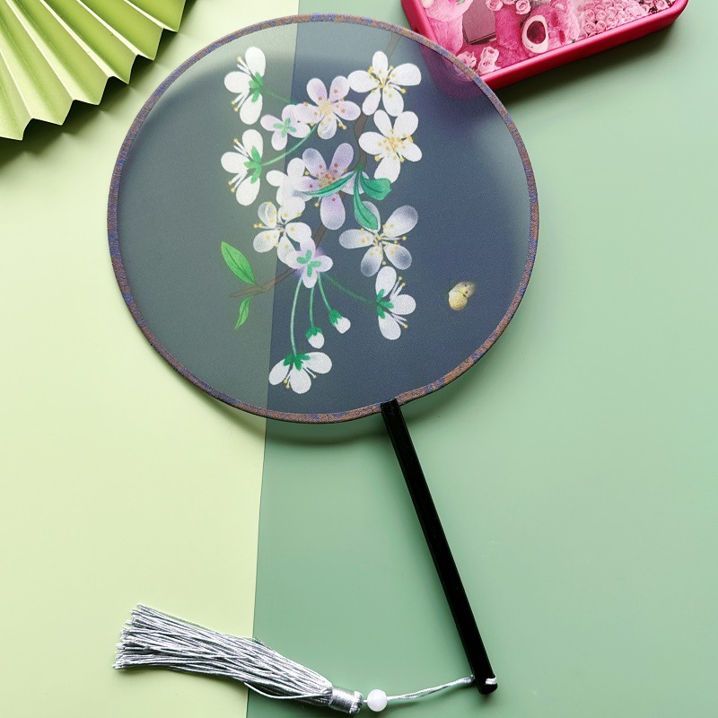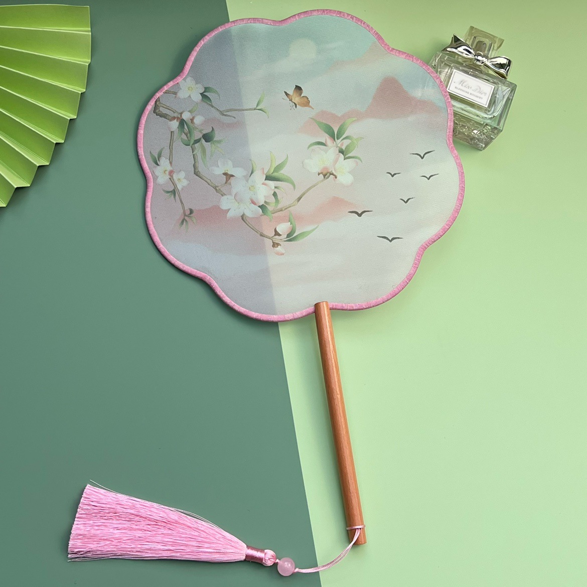 八瓣半透明长柄古风团扇汉服摄影道具宫扇子古典舞蹈演出旗袍圆扇