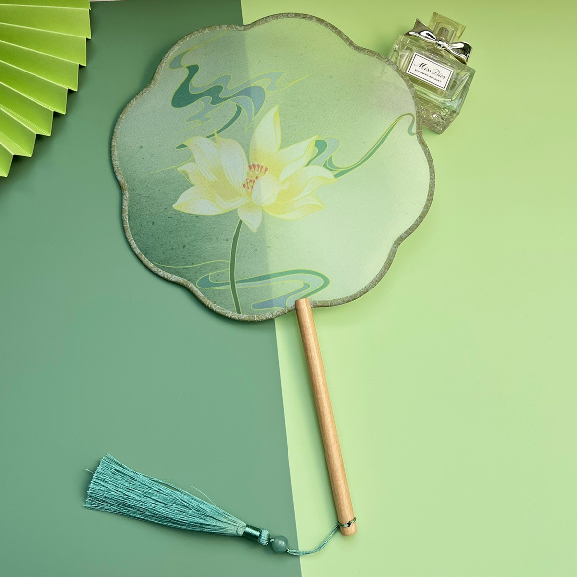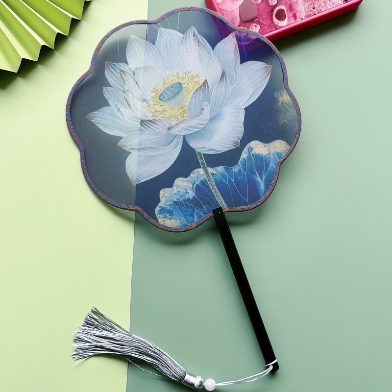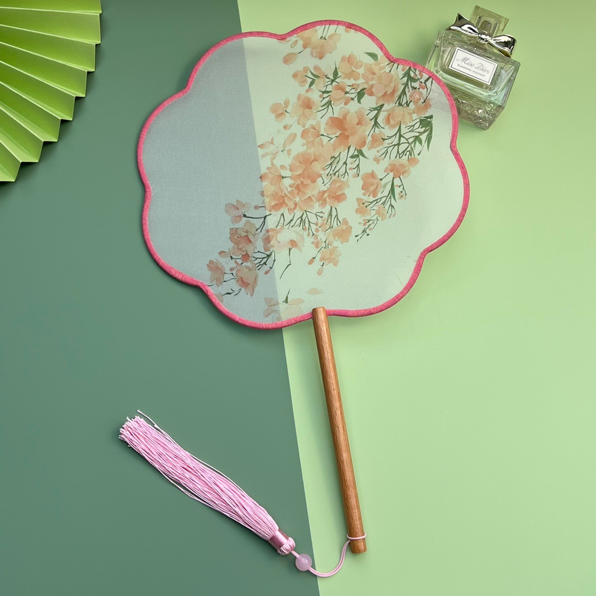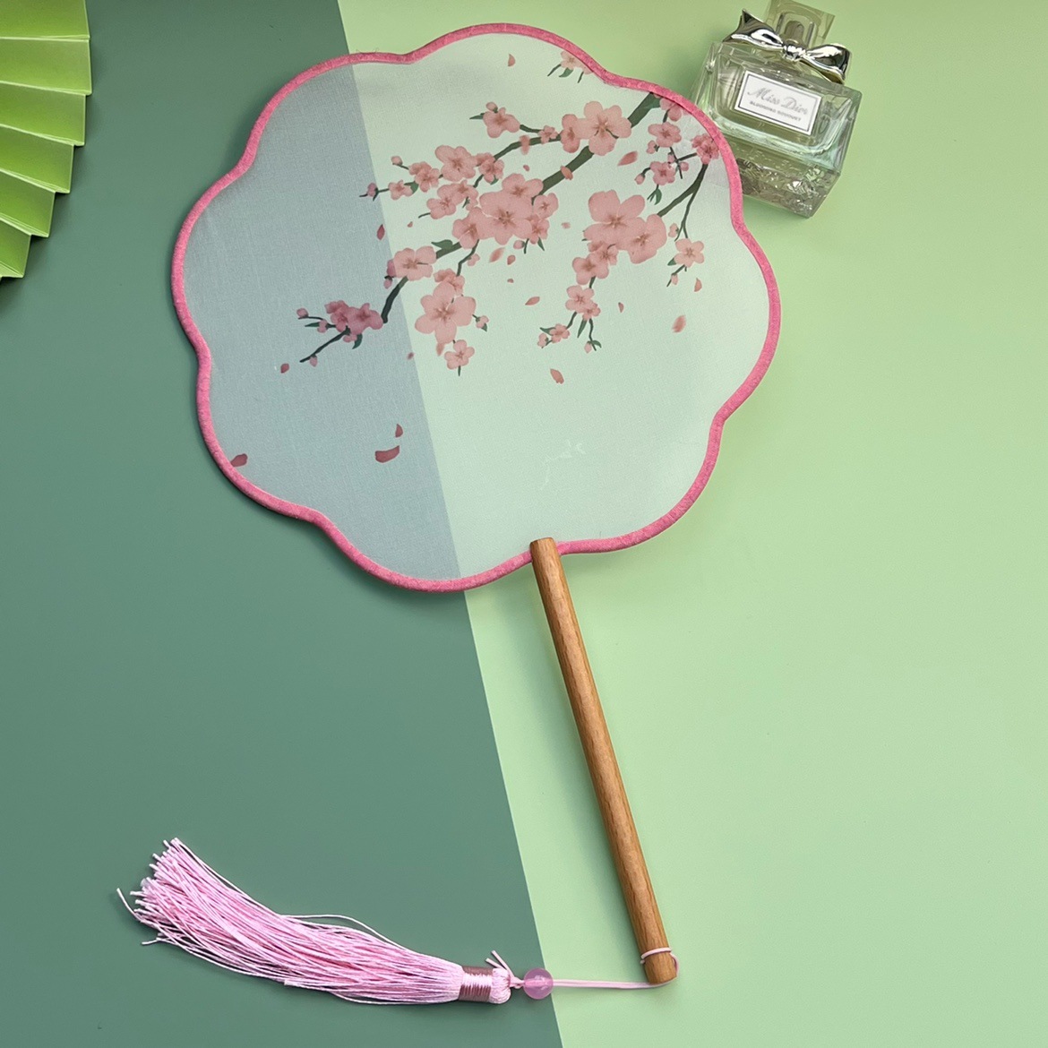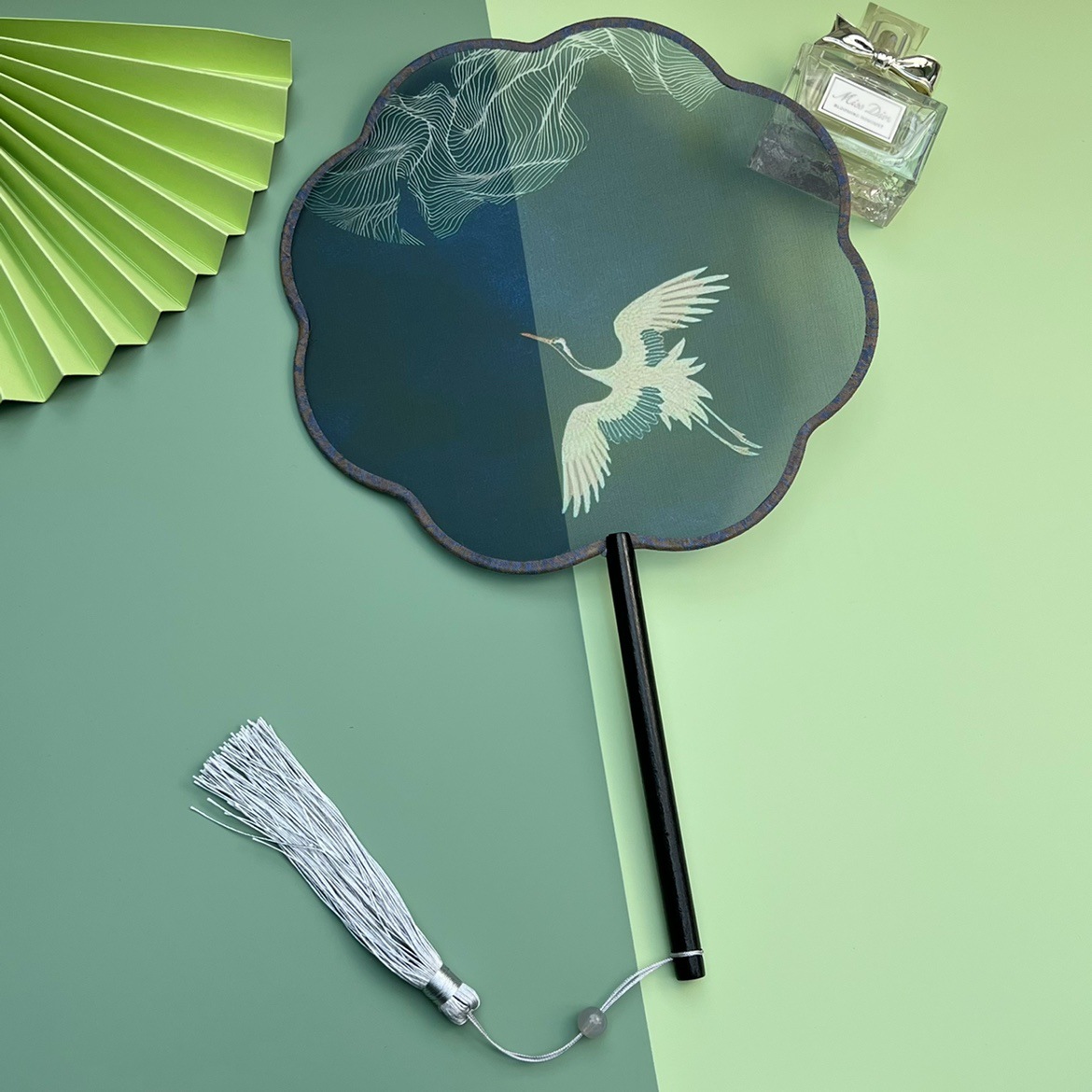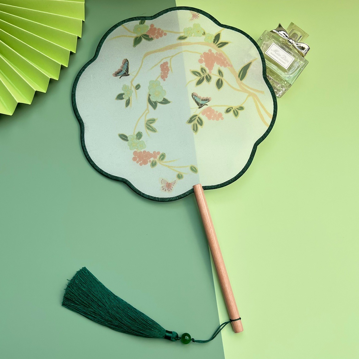 八瓣半透明长柄古风团扇汉服摄影道具宫扇子古典舞蹈演出旗袍圆扇