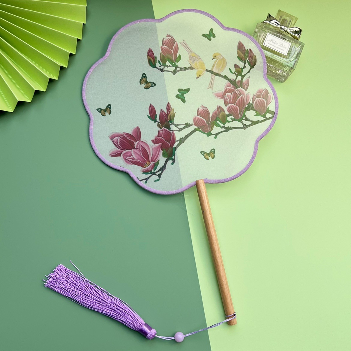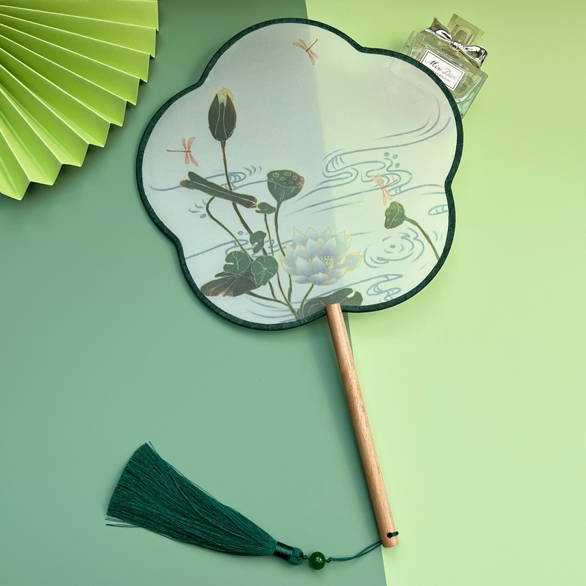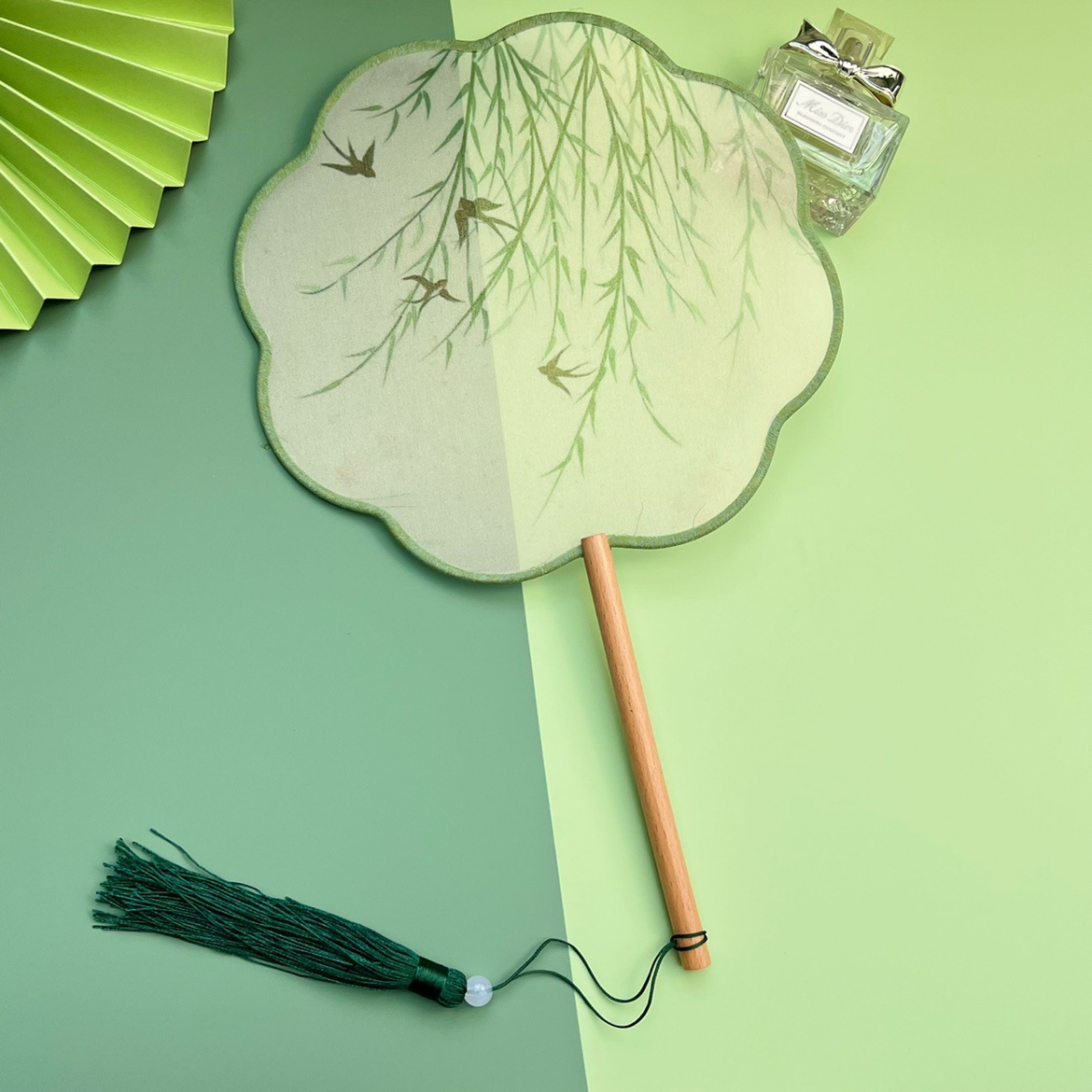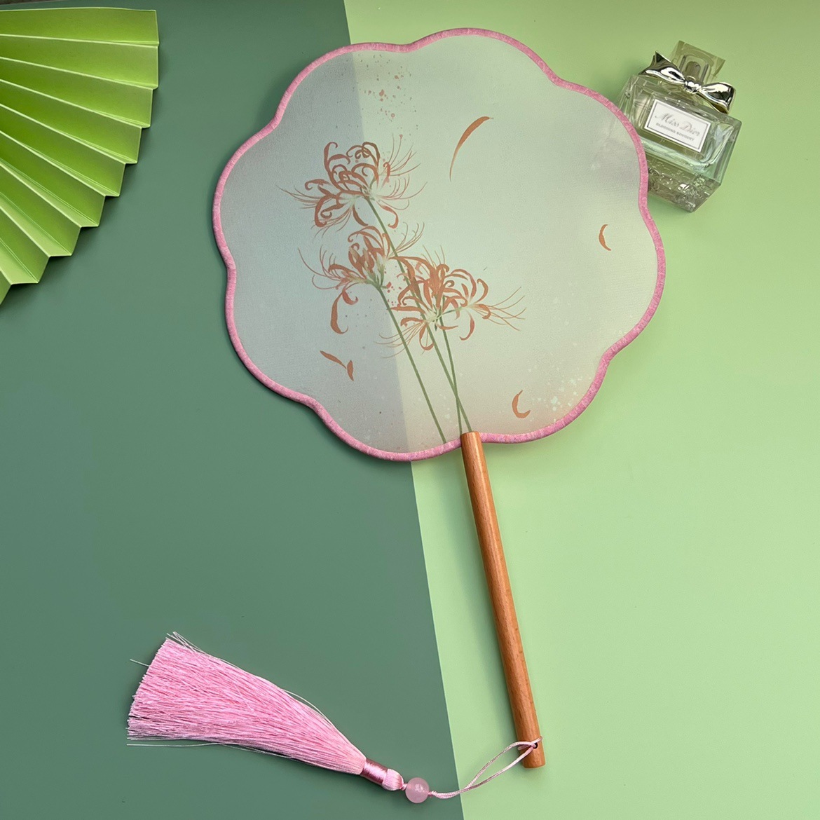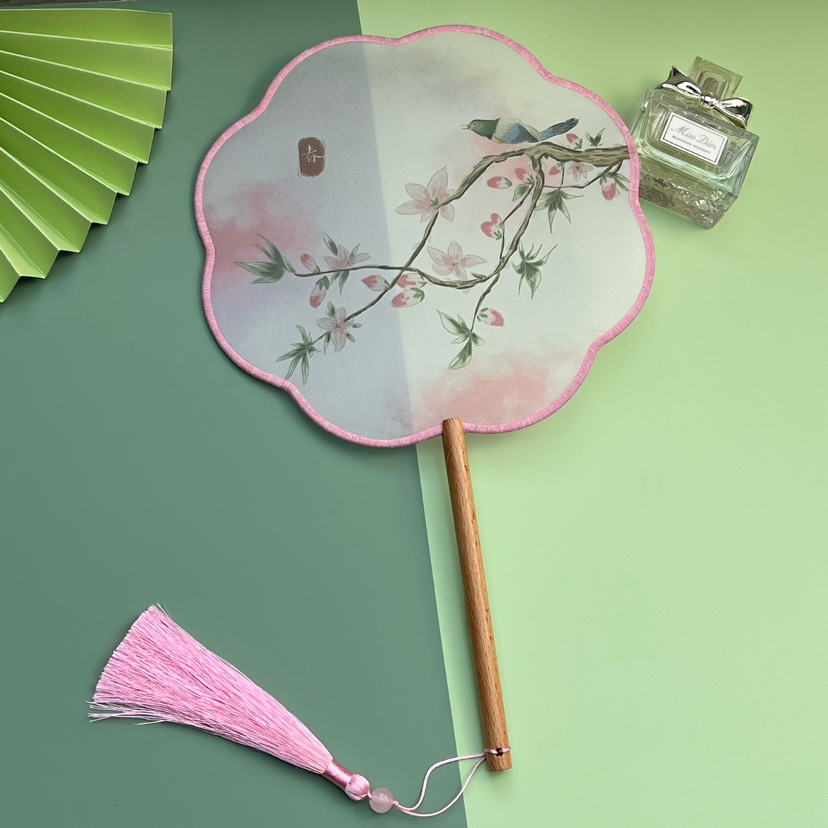 八瓣半透明长柄古风团扇汉服摄影道具宫扇子古典舞蹈演出旗袍圆扇