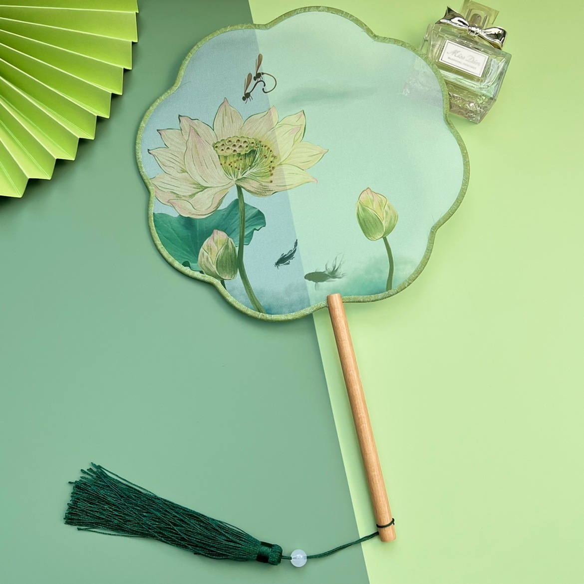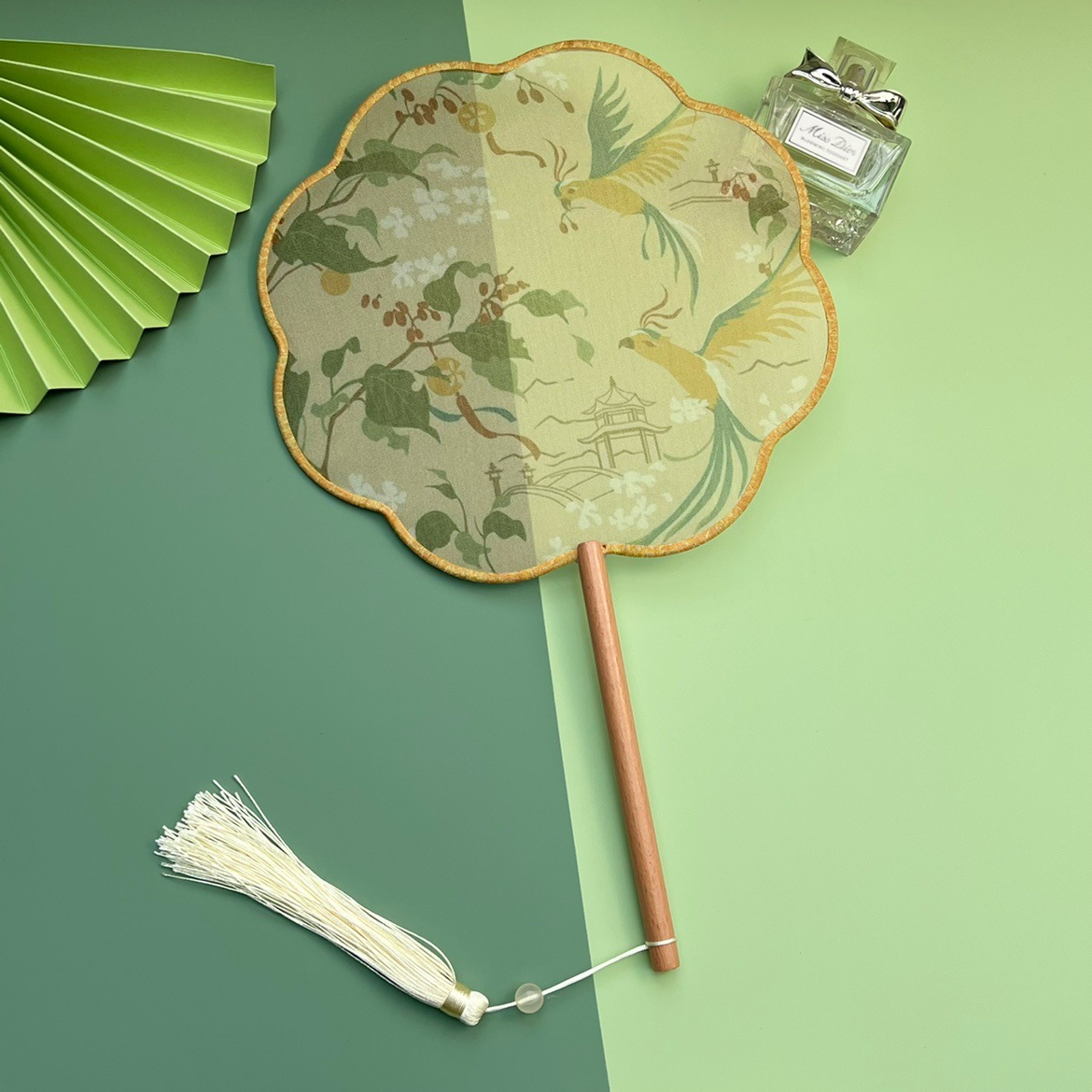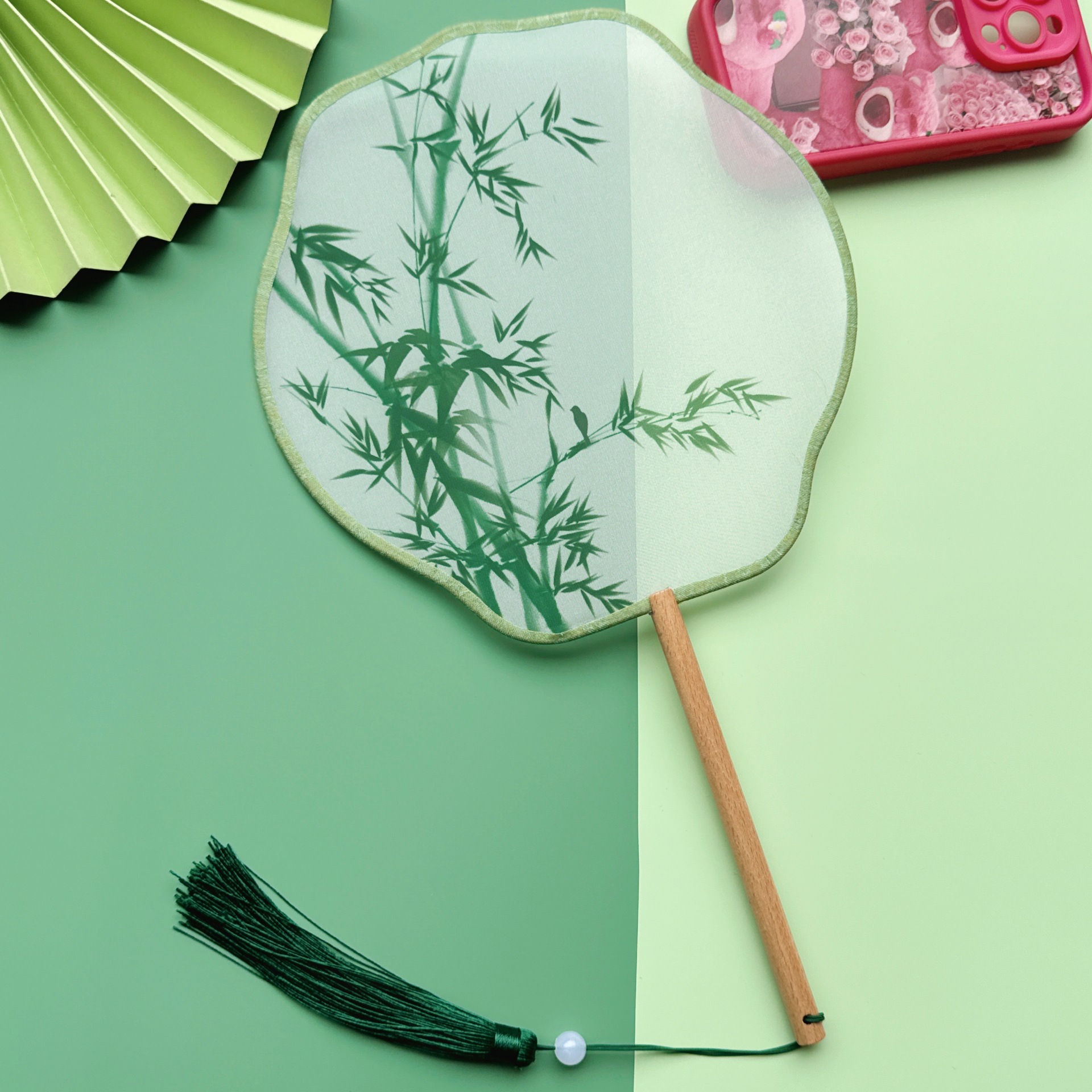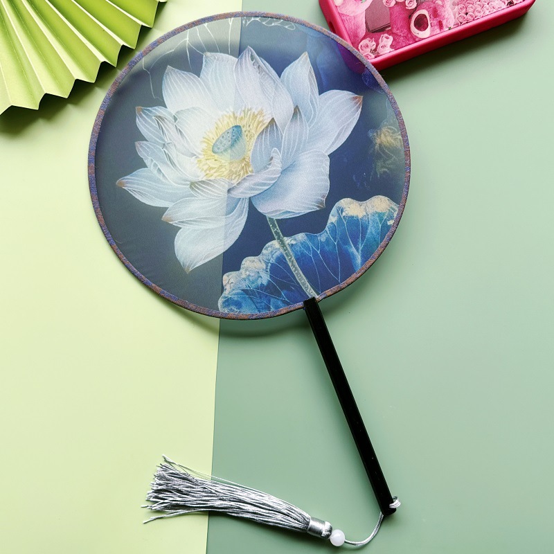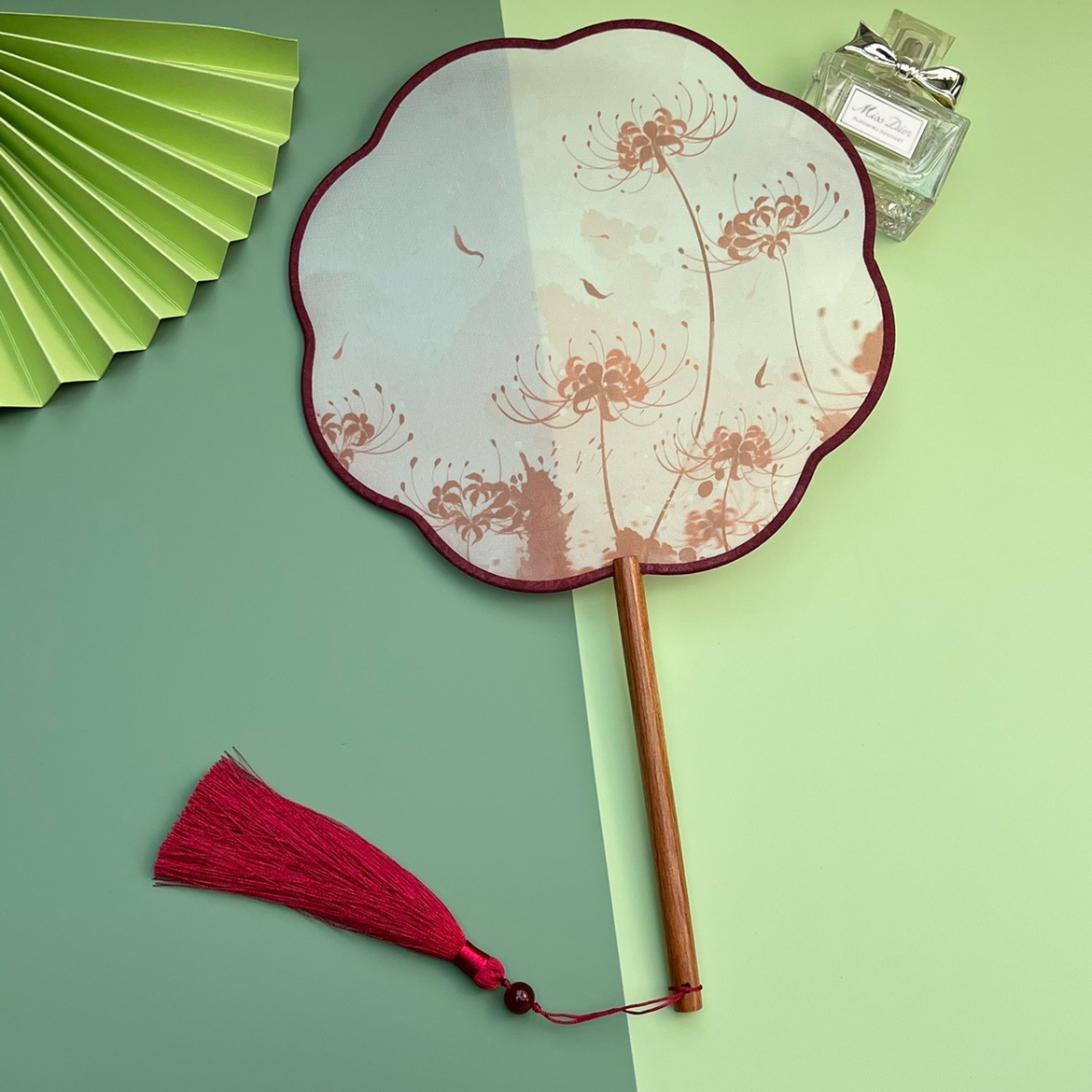 八瓣半透明长柄古风团扇汉服摄影道具宫扇子古典舞蹈演出旗袍圆扇