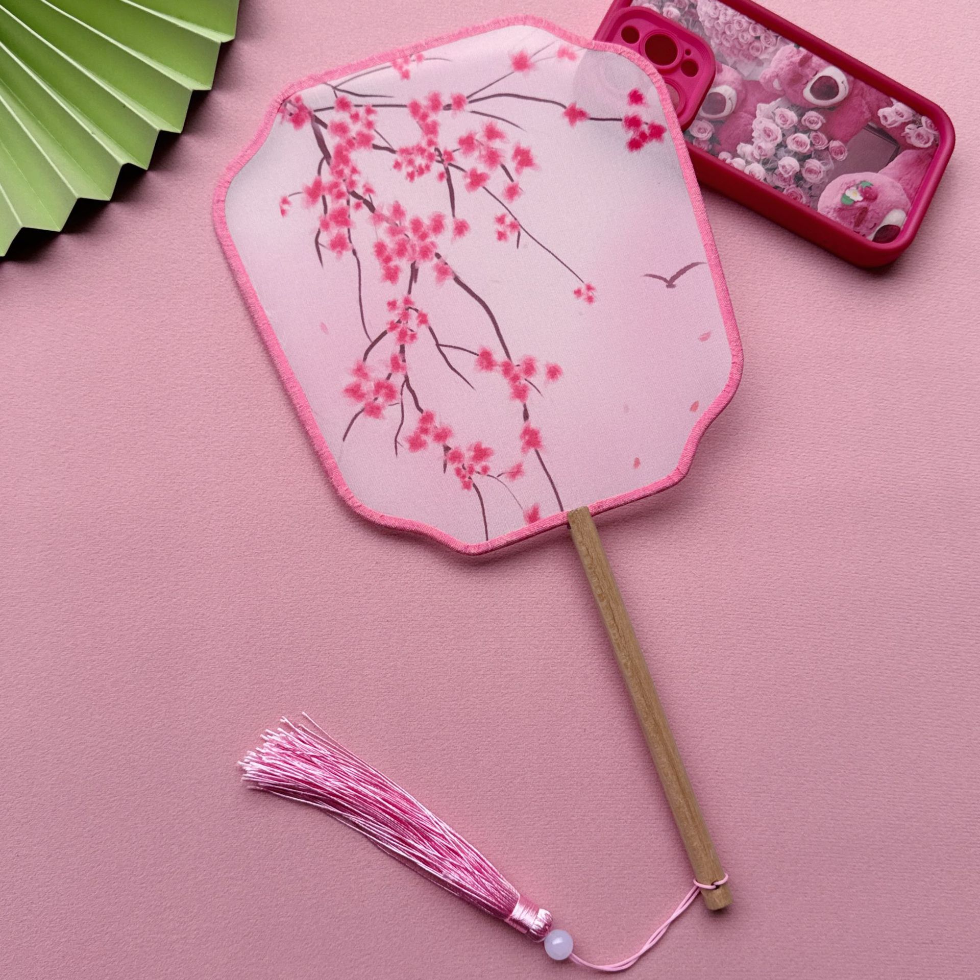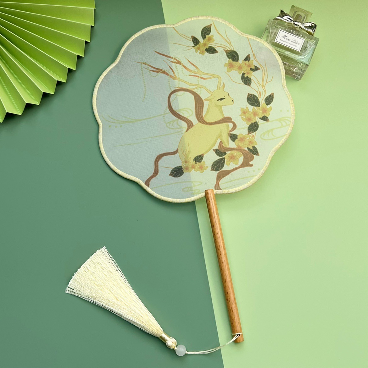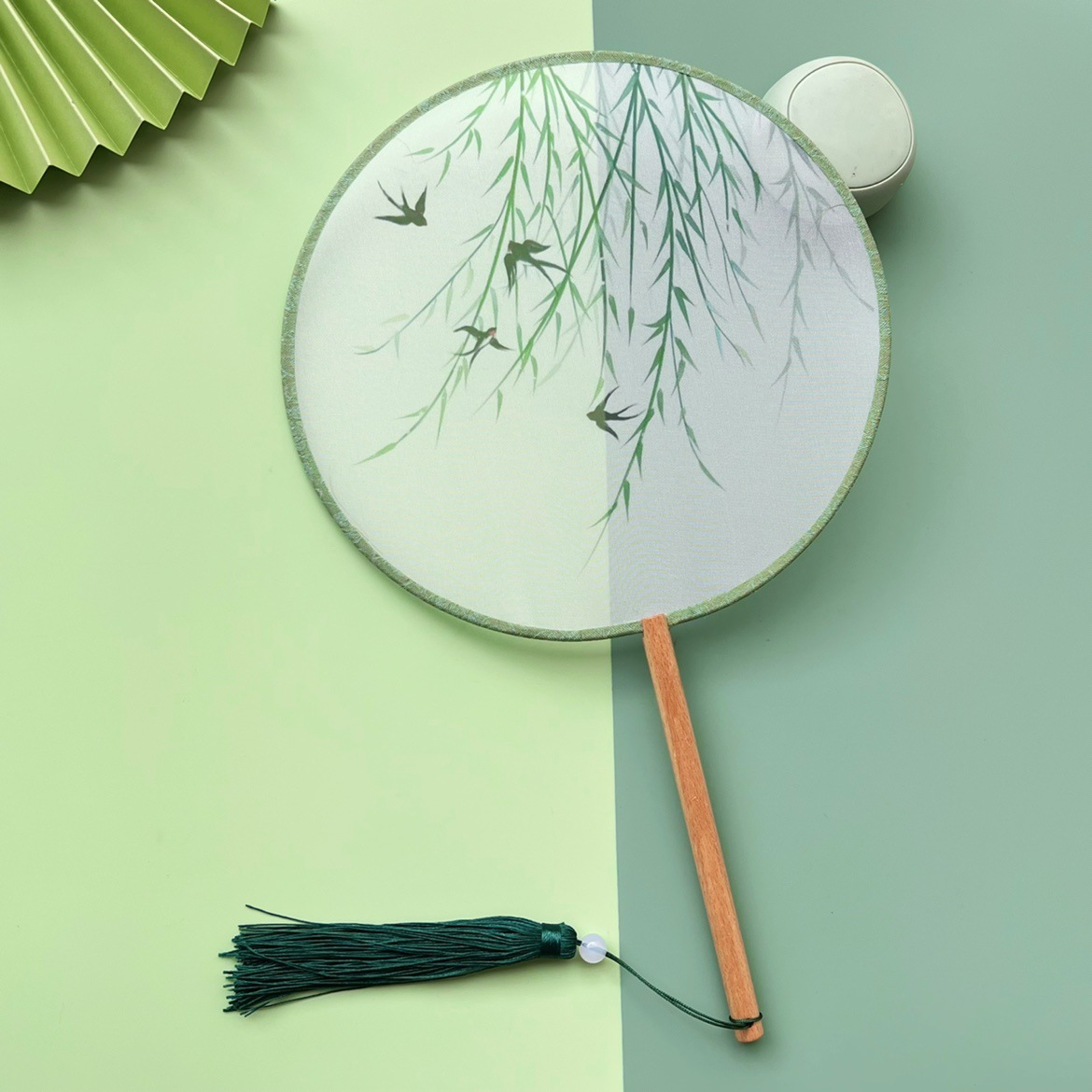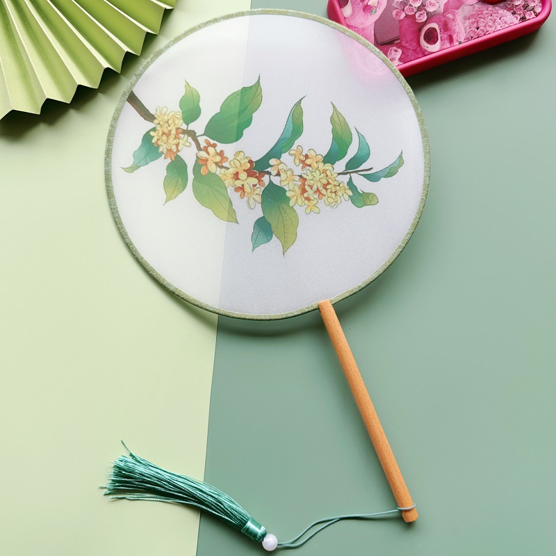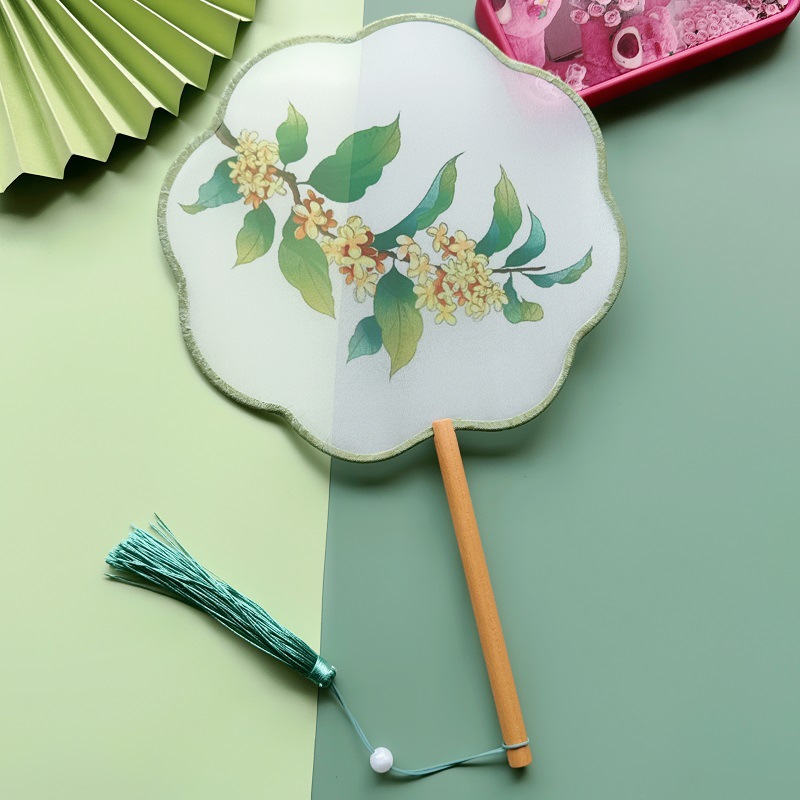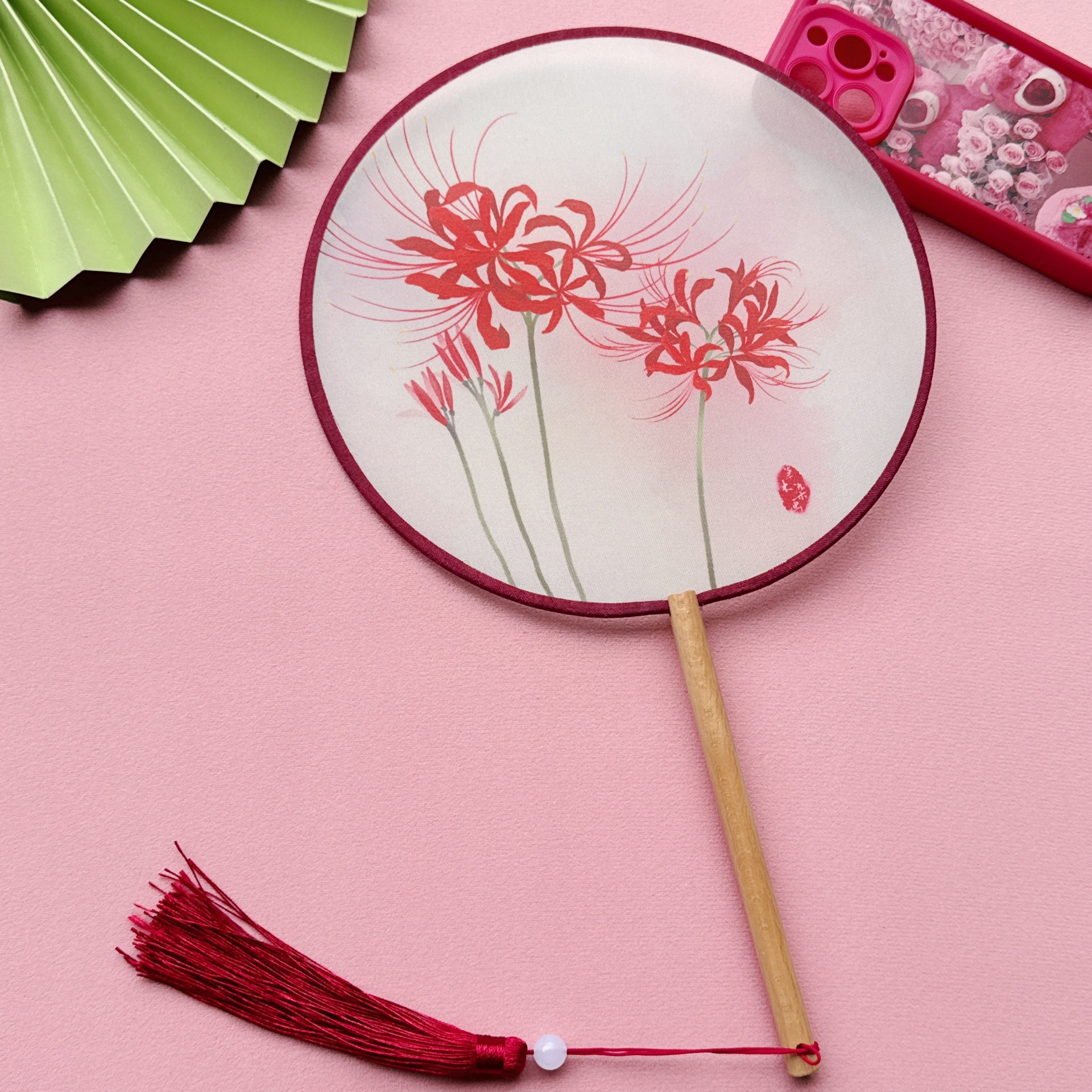 八瓣半透明长柄古风团扇汉服摄影道具宫扇子古典舞蹈演出旗袍圆扇