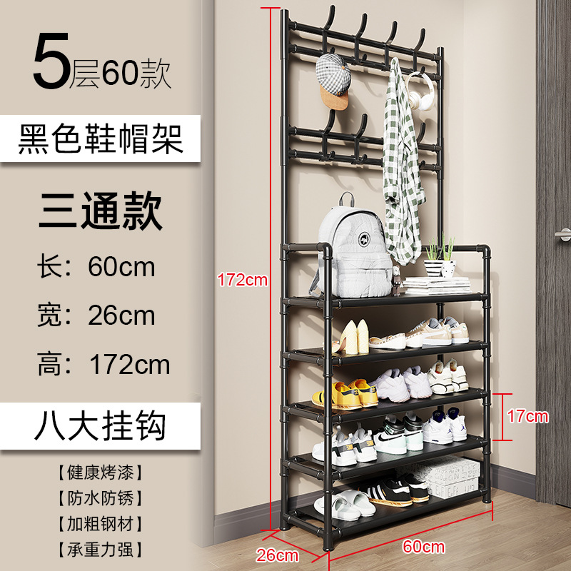 外贸出口简易鞋架多层收纳架门口鞋架多功能落地挂衣架鞋帽架