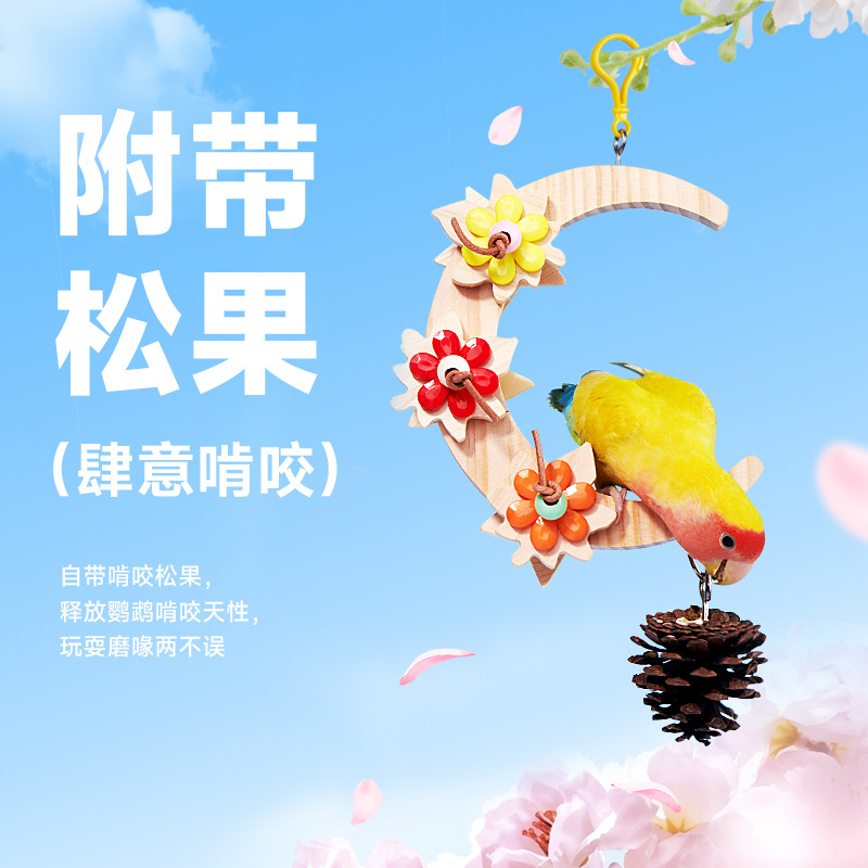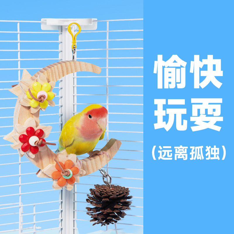 yee鹦鹉玩具月亮吊环秋千鸟专用站杆玩耍啃咬站架站台鸟笼装饰品