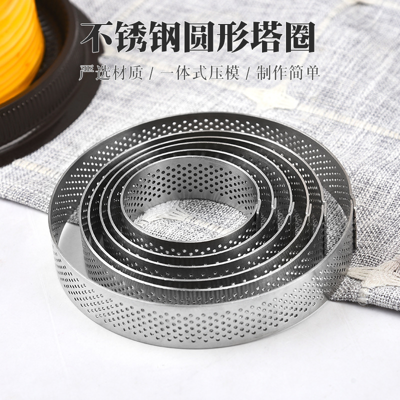 不锈钢慕斯圈 圆形冲孔塔圈带孔法式慕斯芝士挞圈烘焙蛋糕圈模具