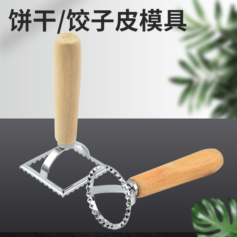 不锈钢木柄饼干模具圆形饺子皮模方形蛋糕模厨房烘焙工具跨境批发