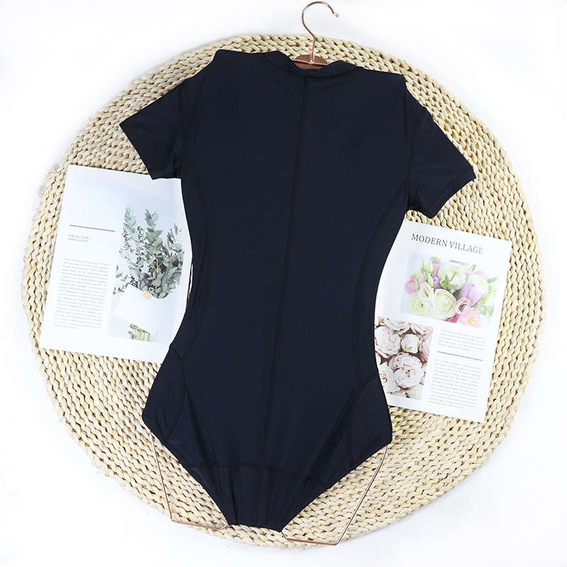 连体专业游泳衣女小胸聚拢保守修身显瘦遮肚运动短袖温泉泳装