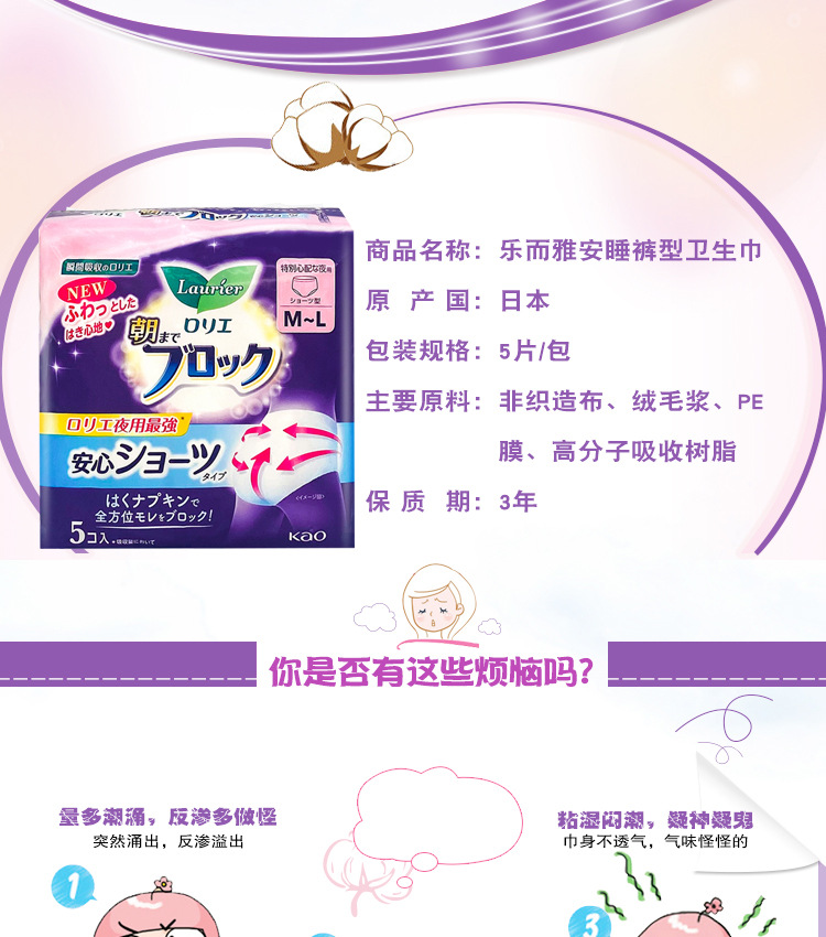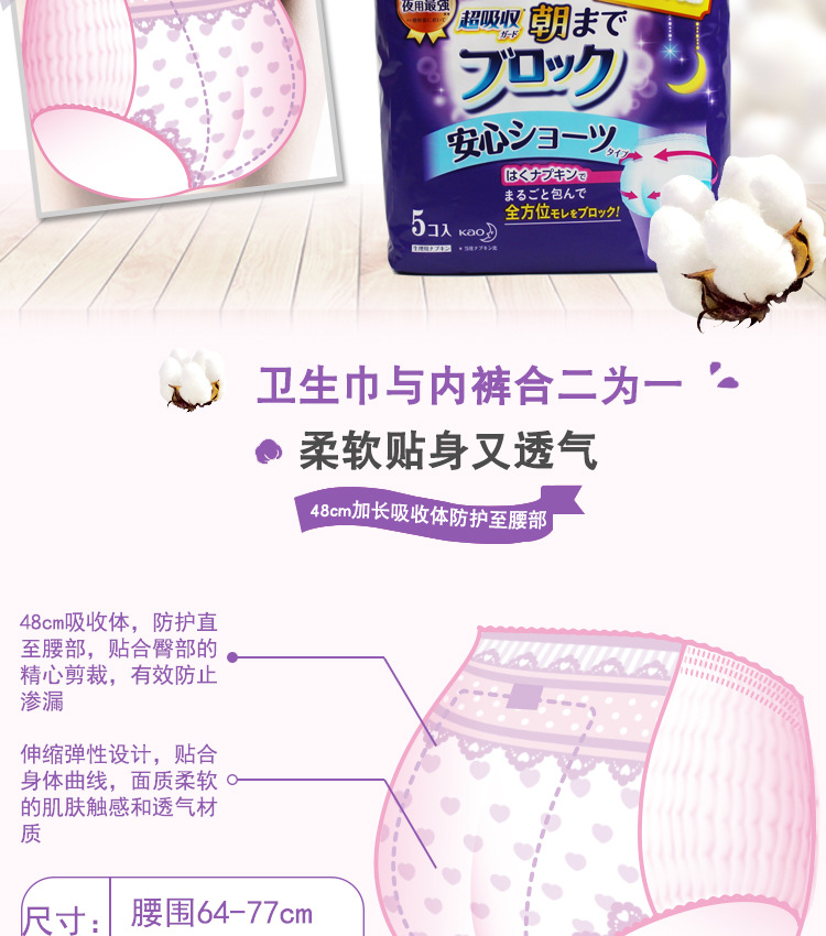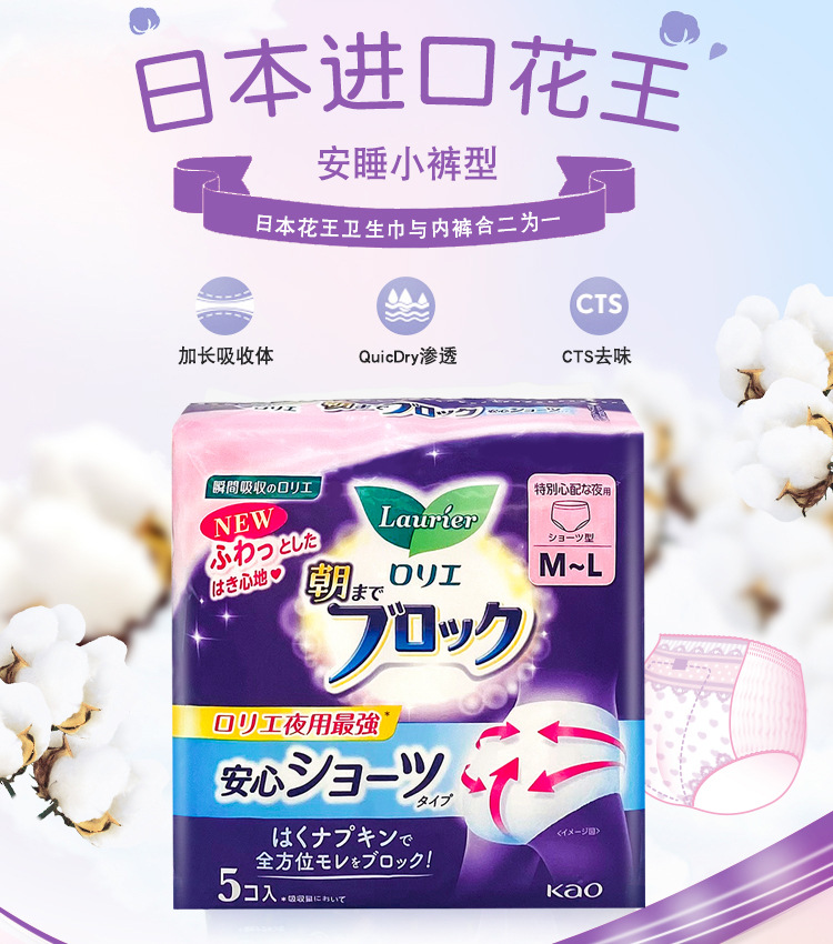 日本花王夜用安心裤姨妈生理巾产妇安全安睡裤拉拉内裤式型卫生巾