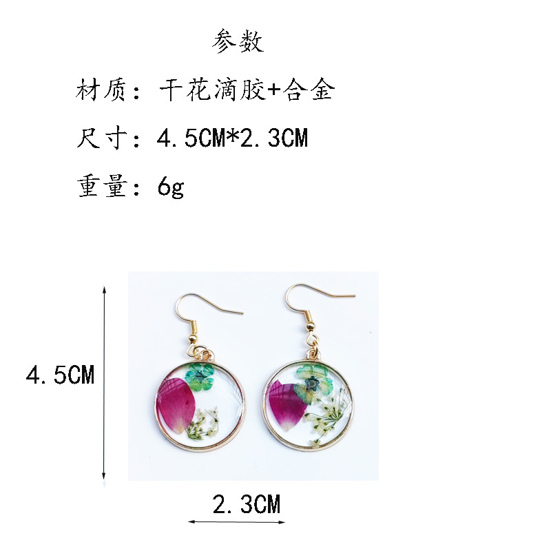 新款热卖夏季耳环耳饰干花耳坠鲜花耳饰永生花耳钉春天花朵耳饰品