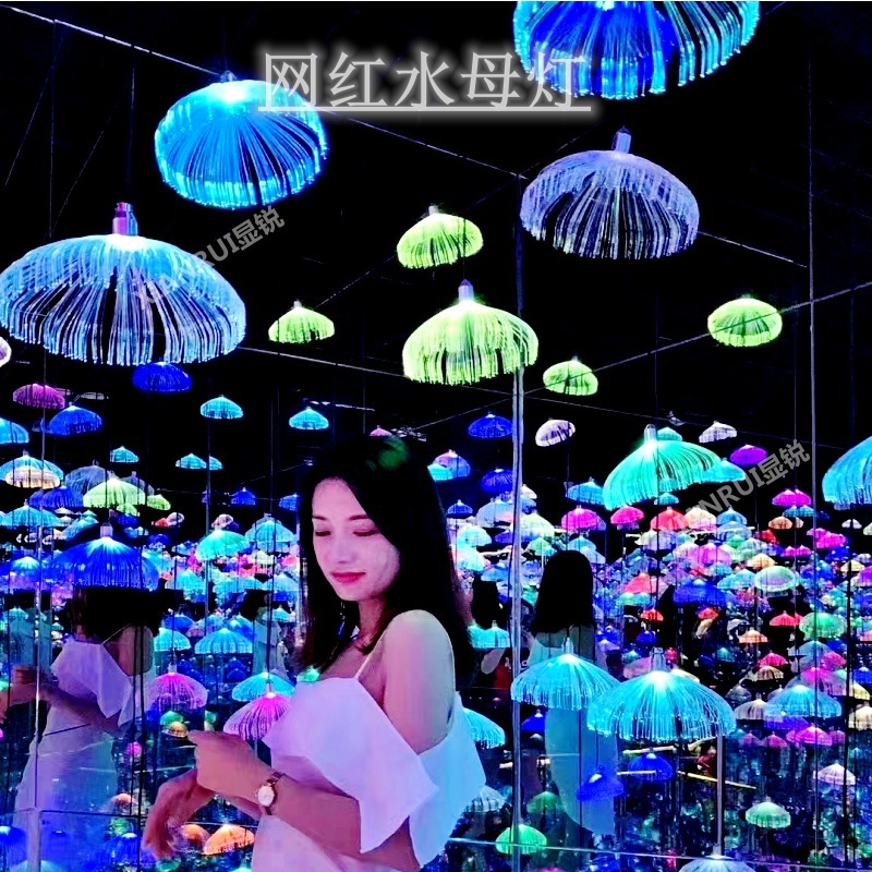 网红七彩渐变水母灯 失恋博物馆海洋馆亮化LED光纤水母天花吊顶灯
