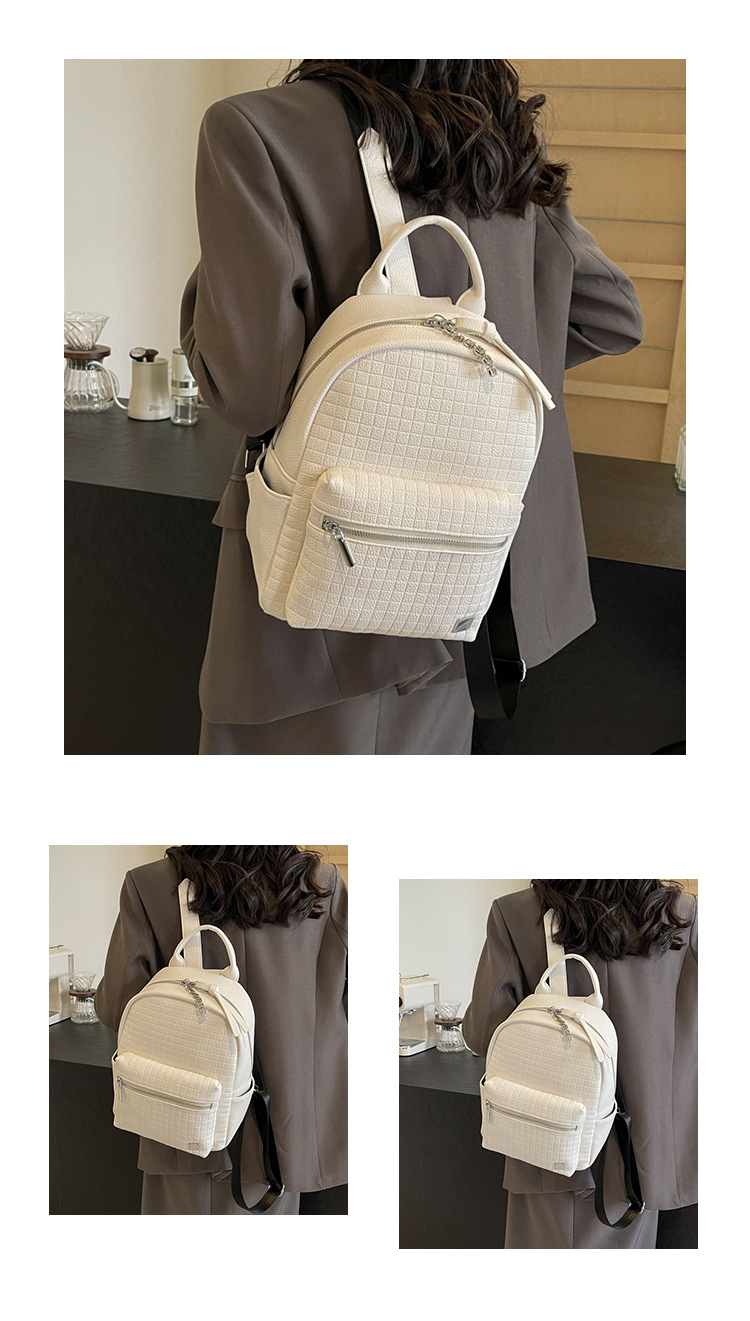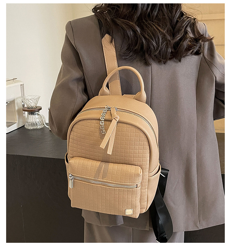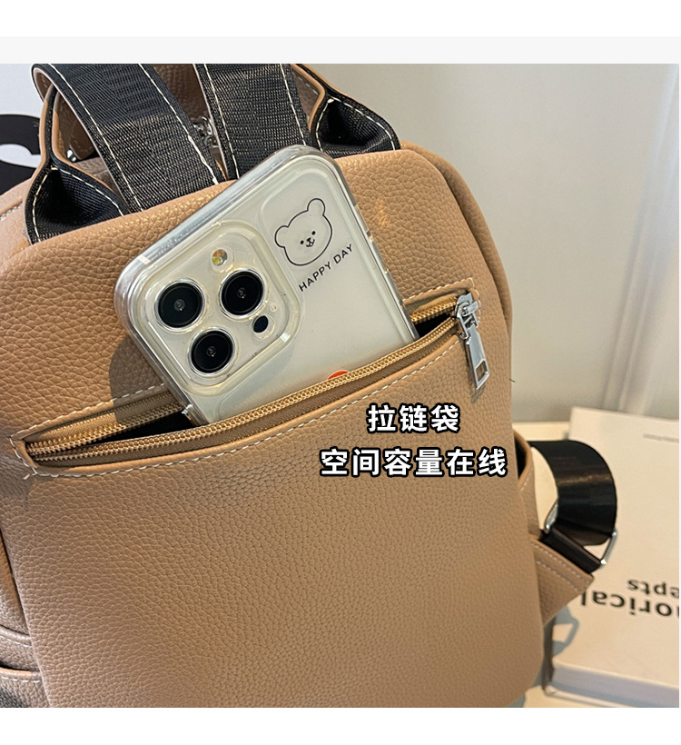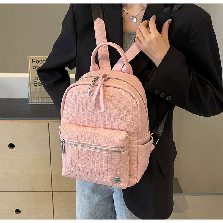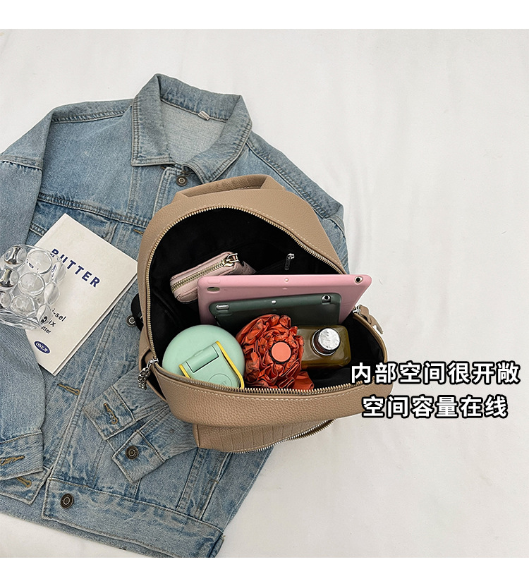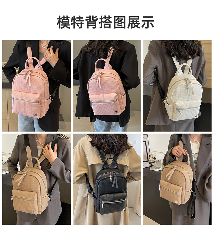 简约背包女2024新款通勤双肩包简约时尚纯色背包旅行包