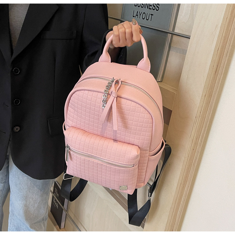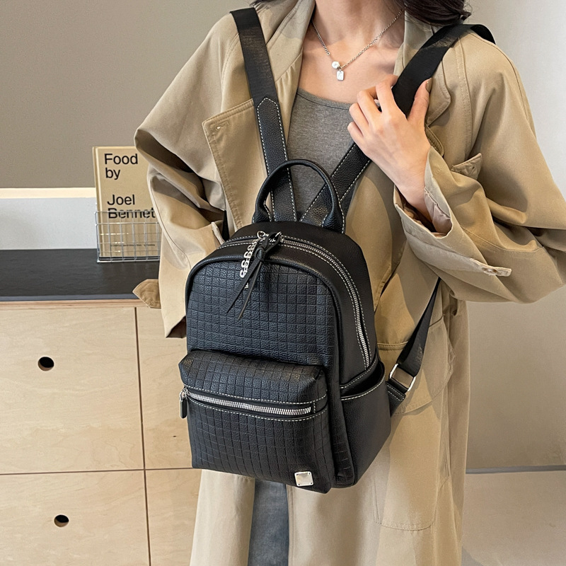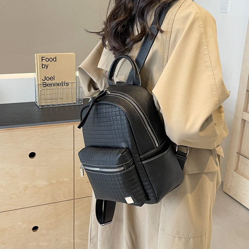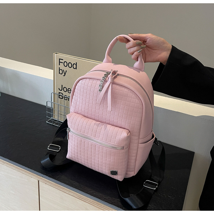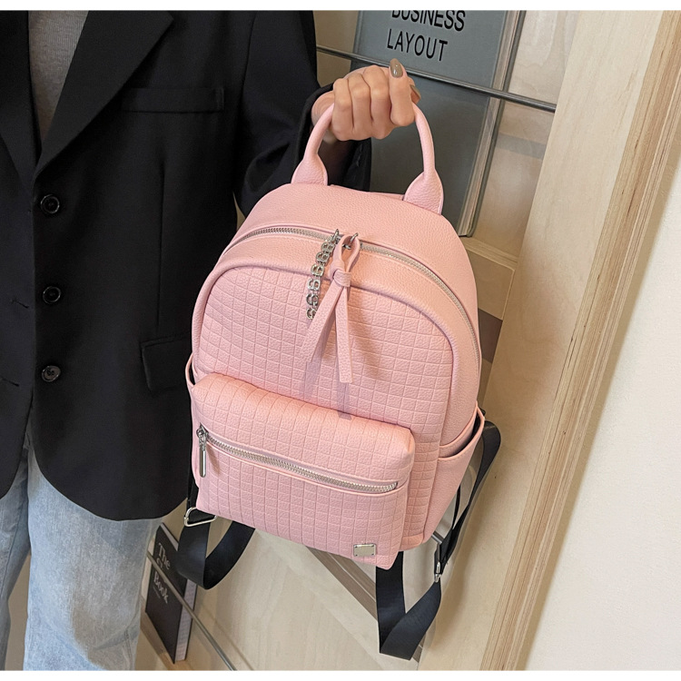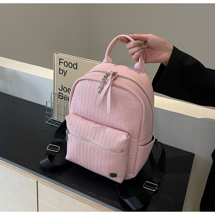 简约背包女2024新款通勤双肩包简约时尚纯色背包旅行包