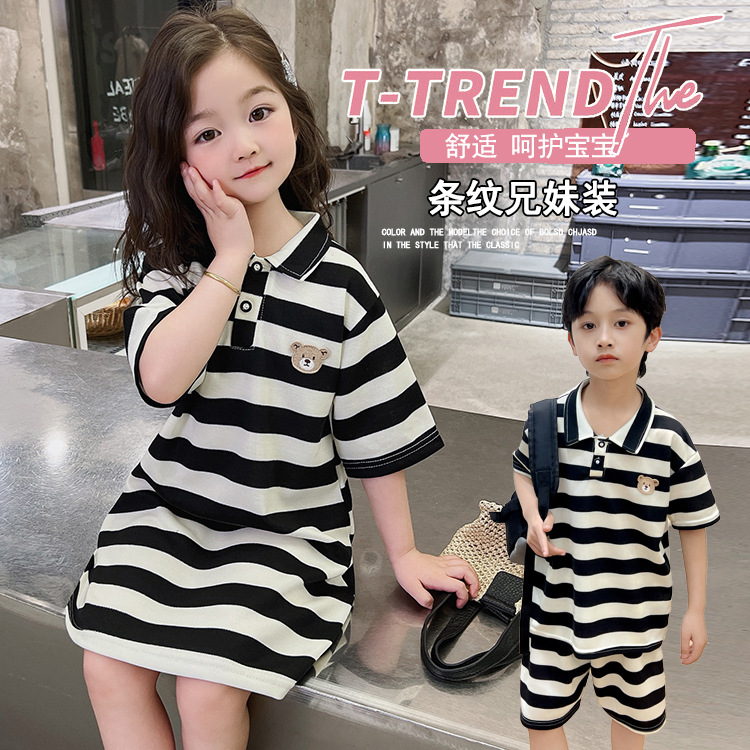 儿童短袖套装夏季新款女童连衣裙男童t恤衣服女童裙洋气童装批发