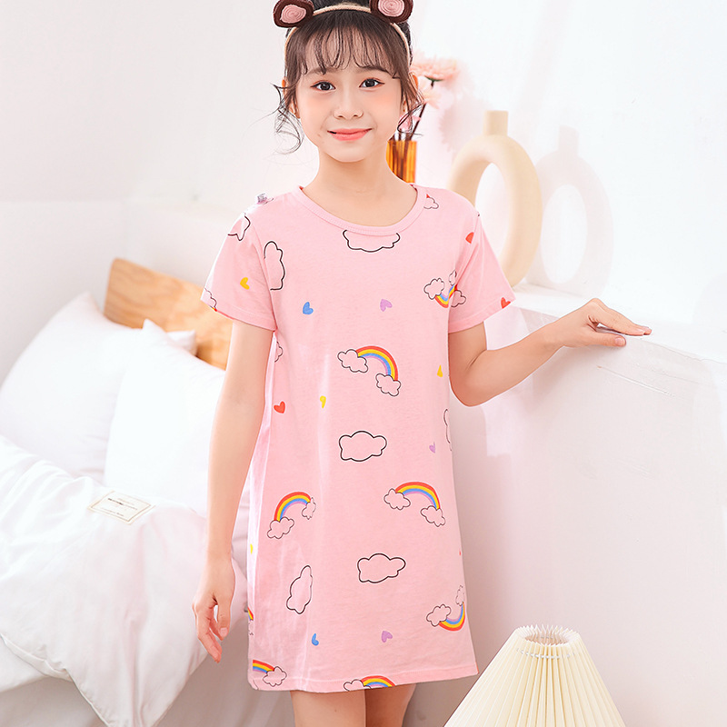 女童睡裙纯棉夏季新款女孩短袖空调服韩版薄款家居服儿童睡衣睡裙