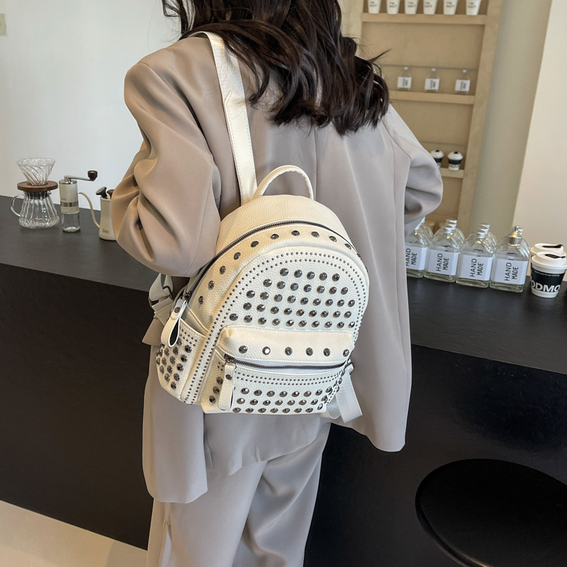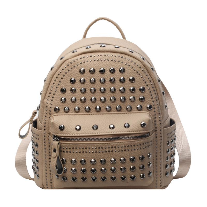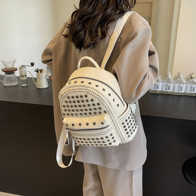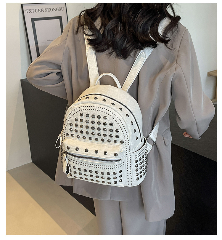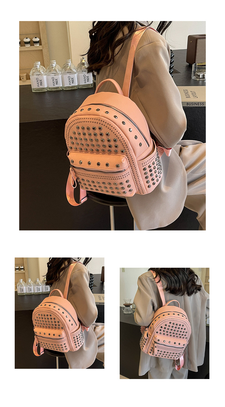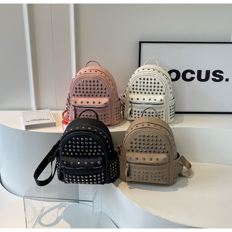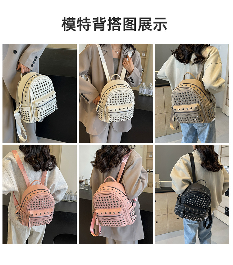 2024新款时尚柳钉软皮纯色背包休闲女士双肩包