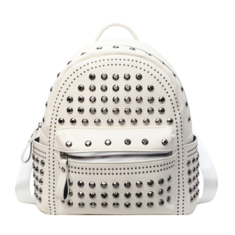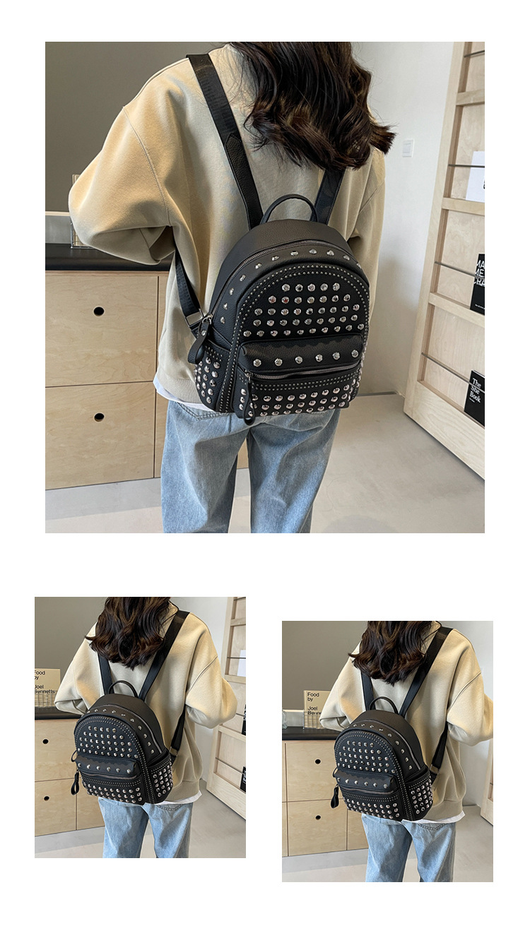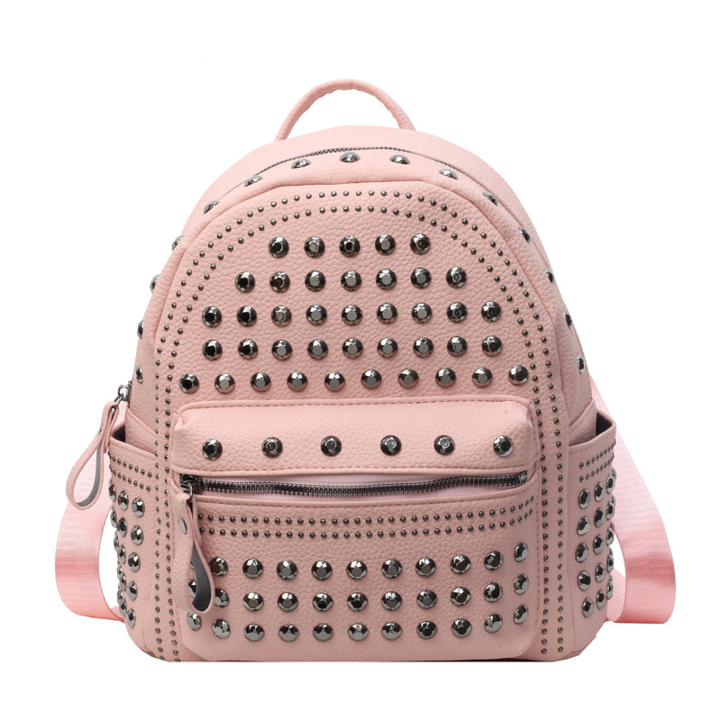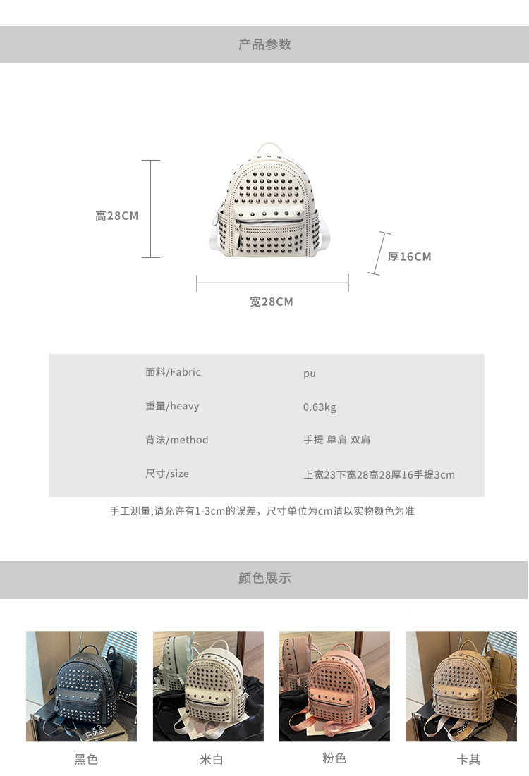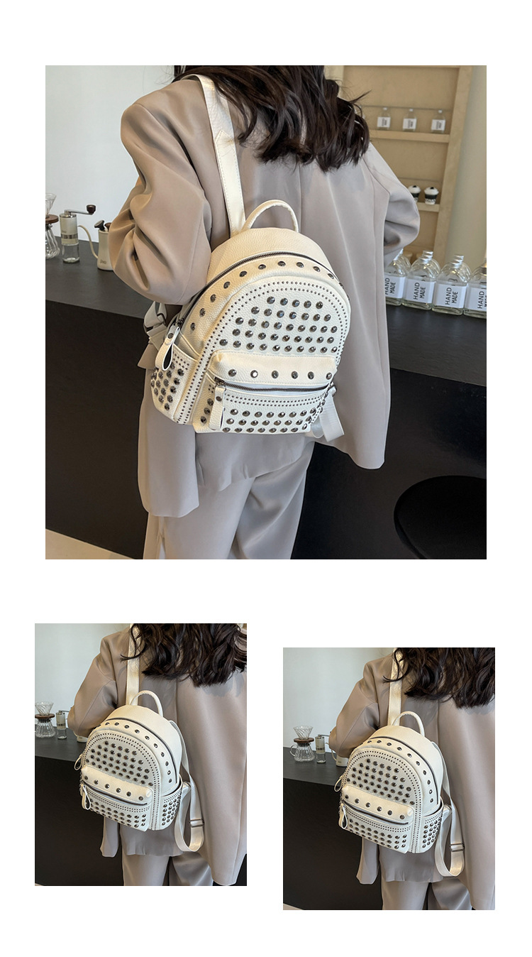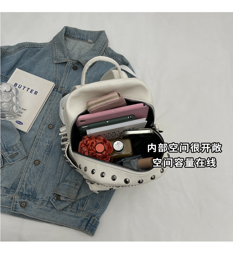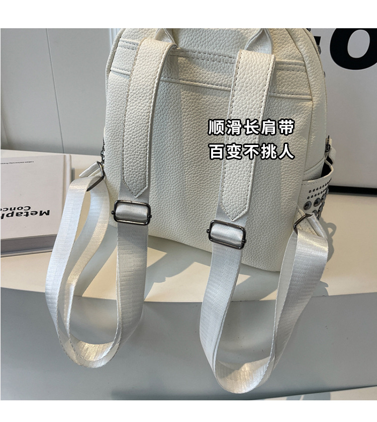 2024新款时尚柳钉软皮纯色背包休闲女士双肩包