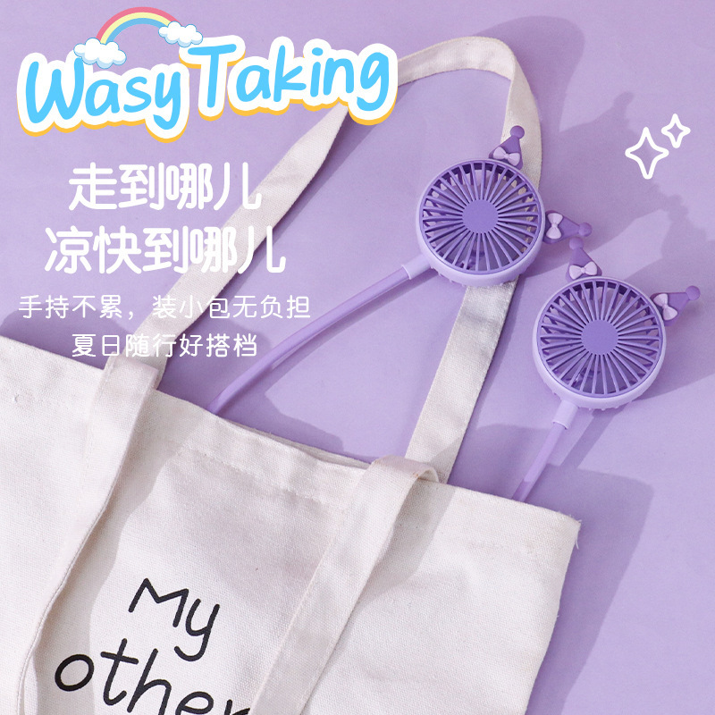 多款卡通折叠挂脖小风扇usb充电超长续航懒人可爱风扇大风力