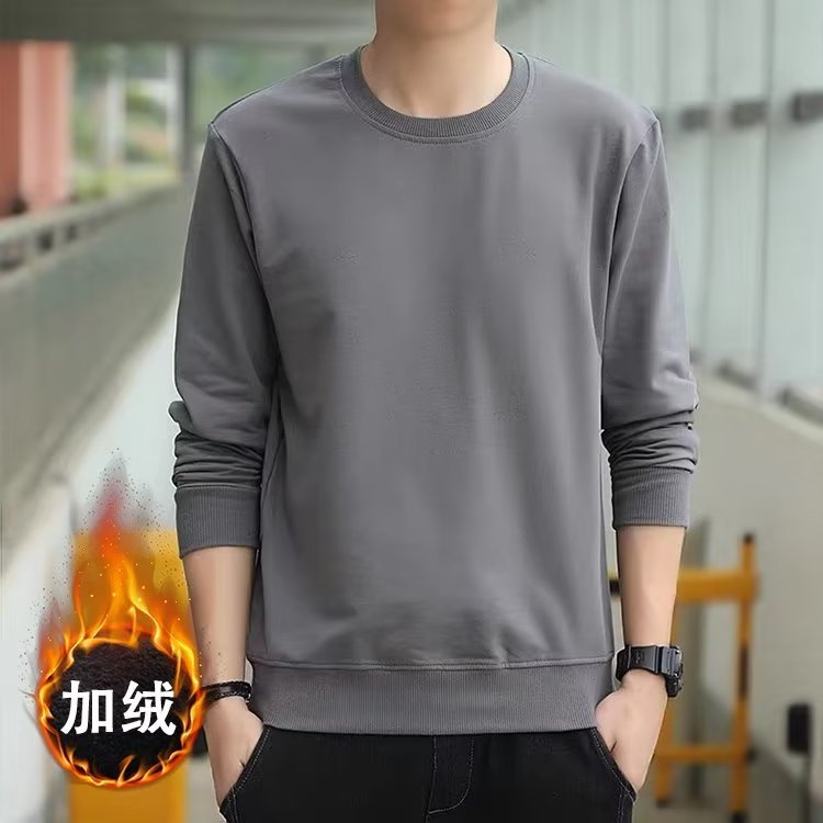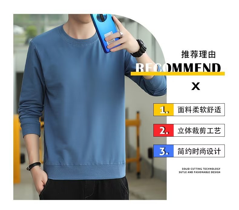 新款圆领套头卫衣男潮牌慵懒风春秋休闲外套纯色上衣潮流体恤批发